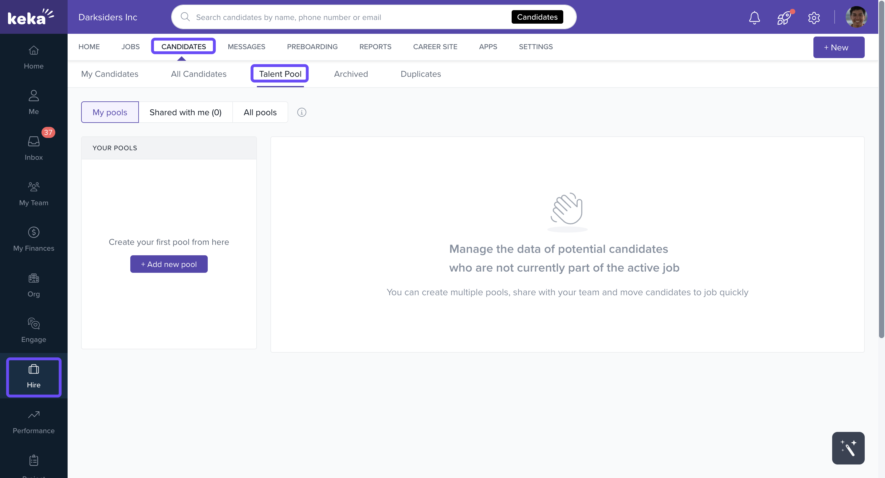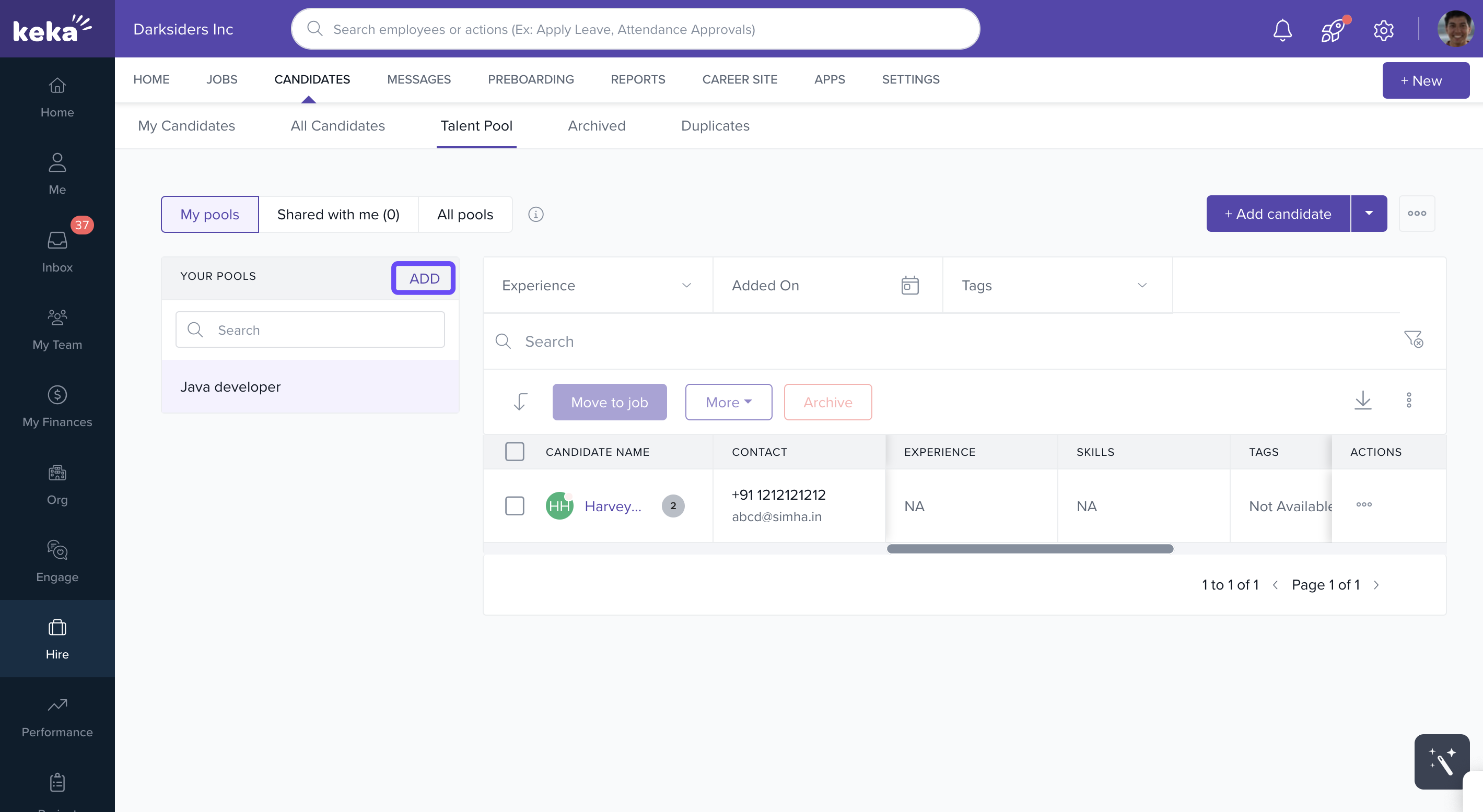 The Talent Pool in Keka Hire helps you save and organize potential candidates for future opportunities.