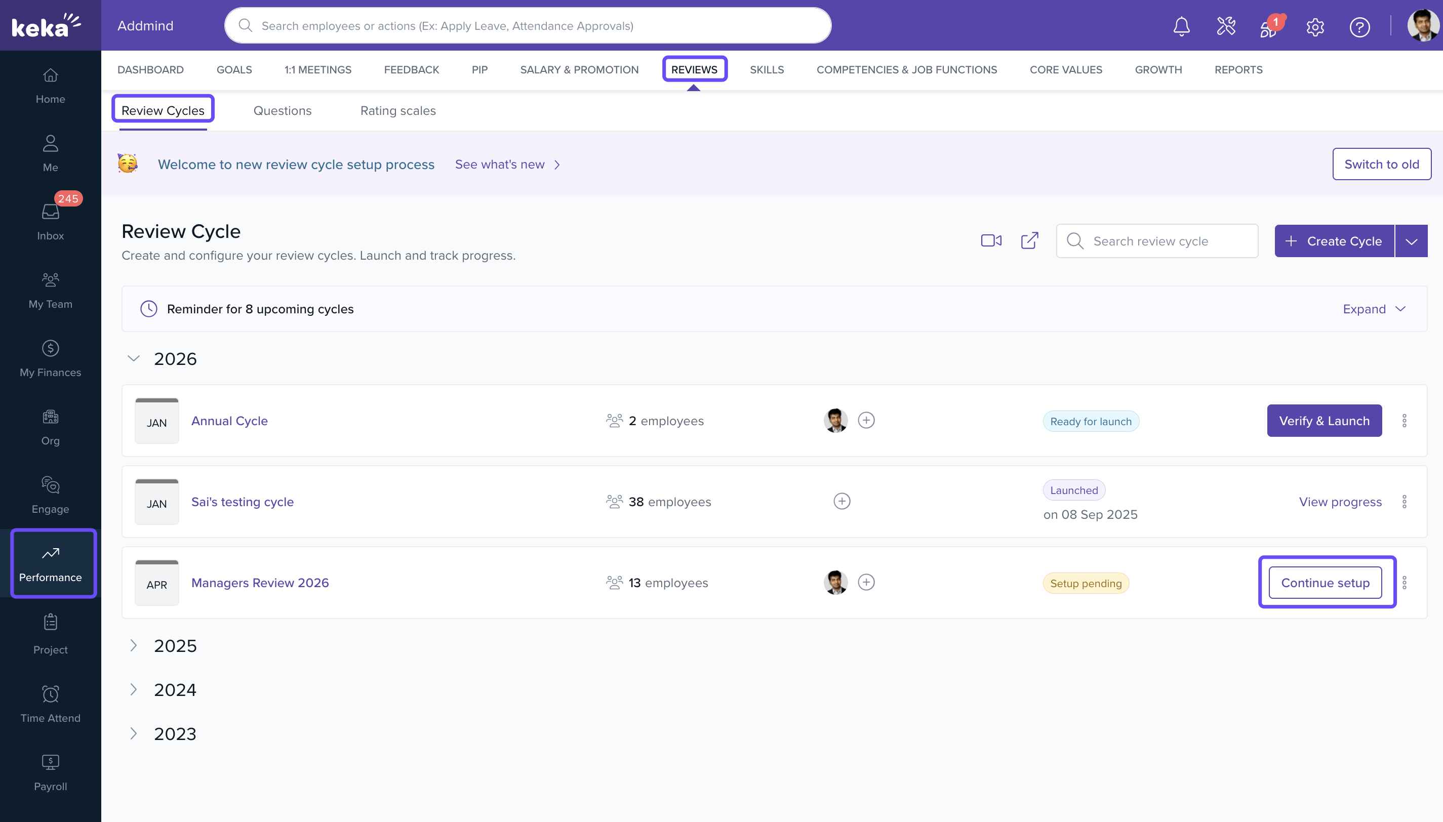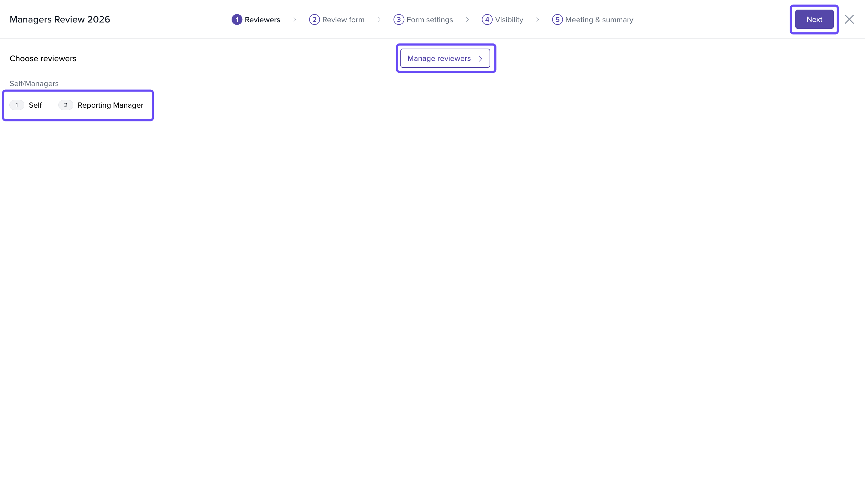 Note: This New Review Cycle Setup is currently an alpha feature and may not be available to all customers. Access will be rolled out in phases.