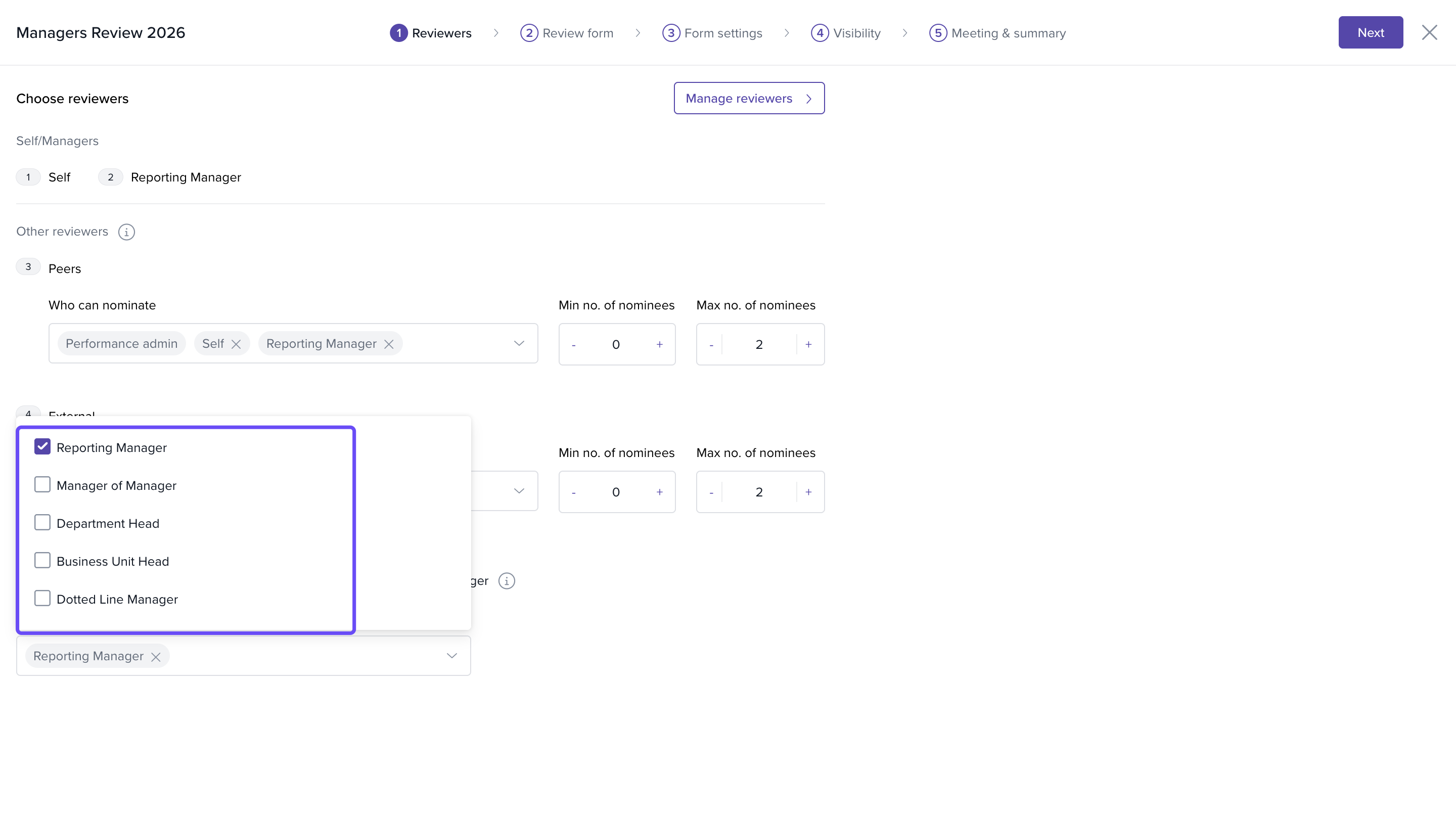 Reporting Manager nominates reviewers