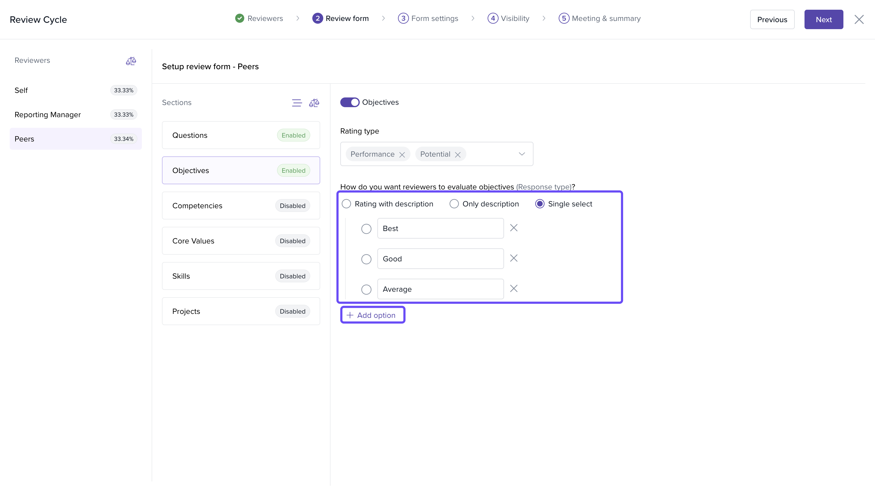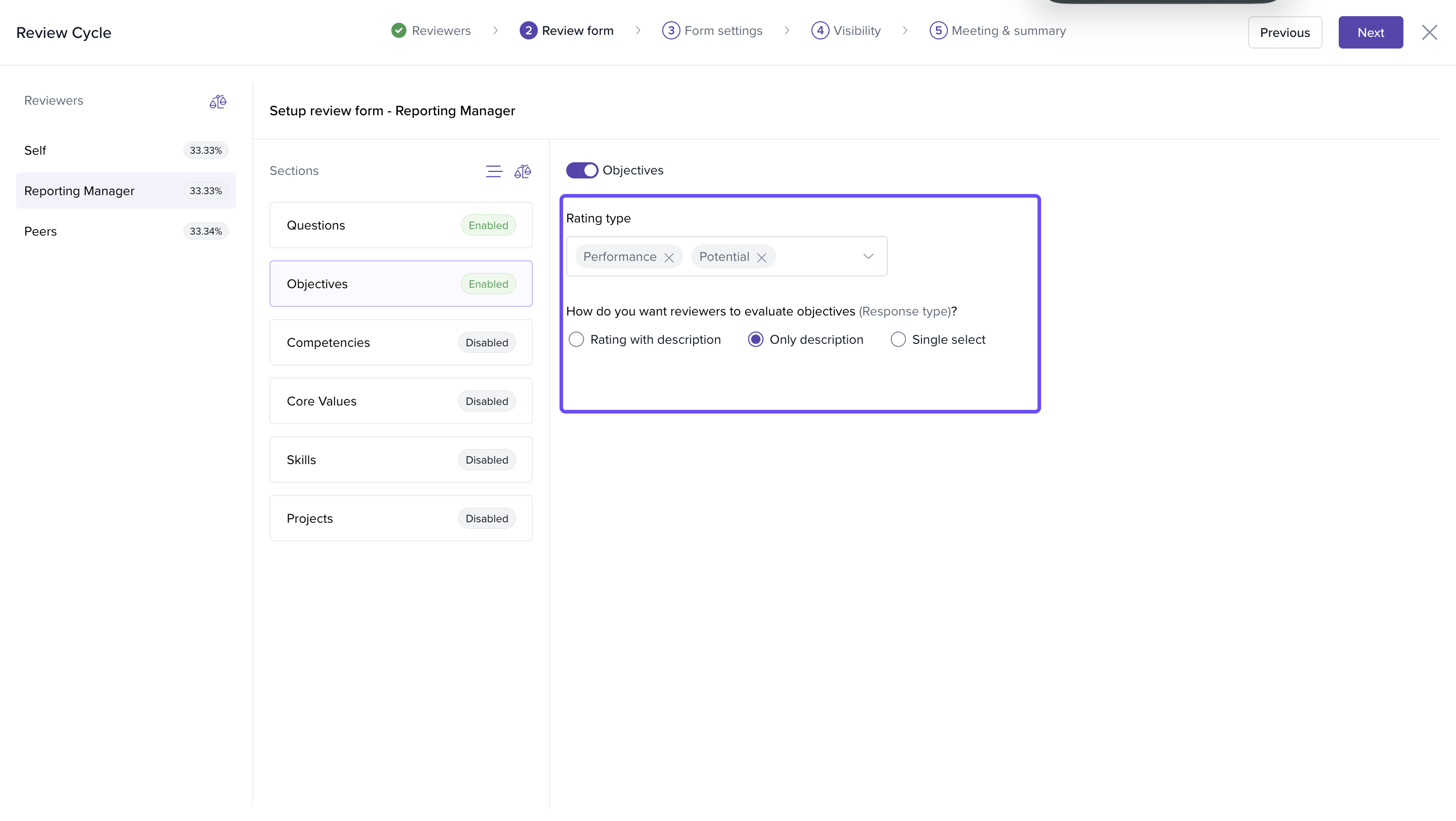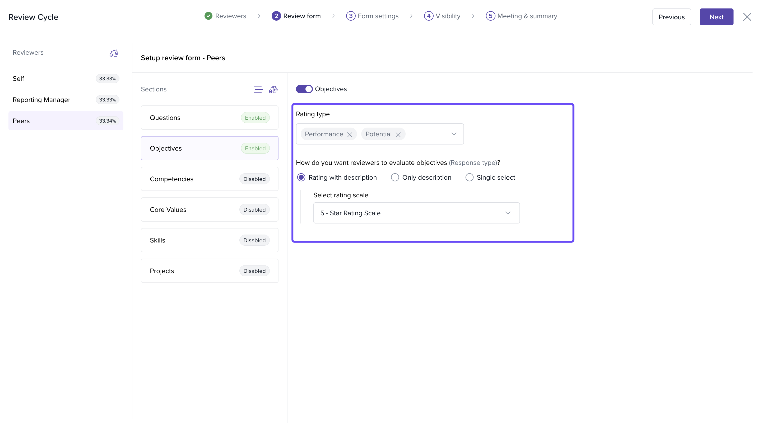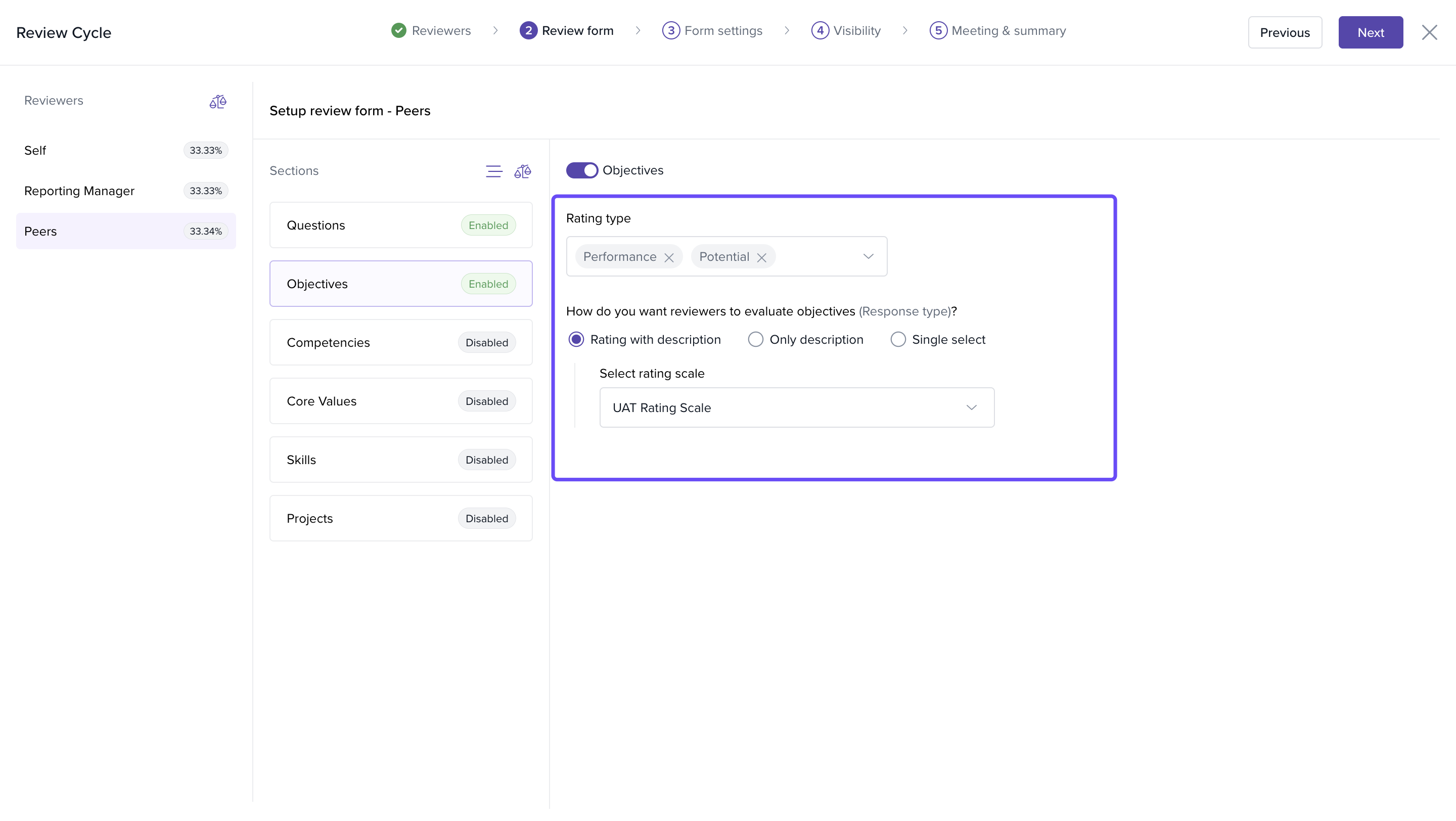 - Enable Allow Reviewers to Rate Sub-goals (optional).