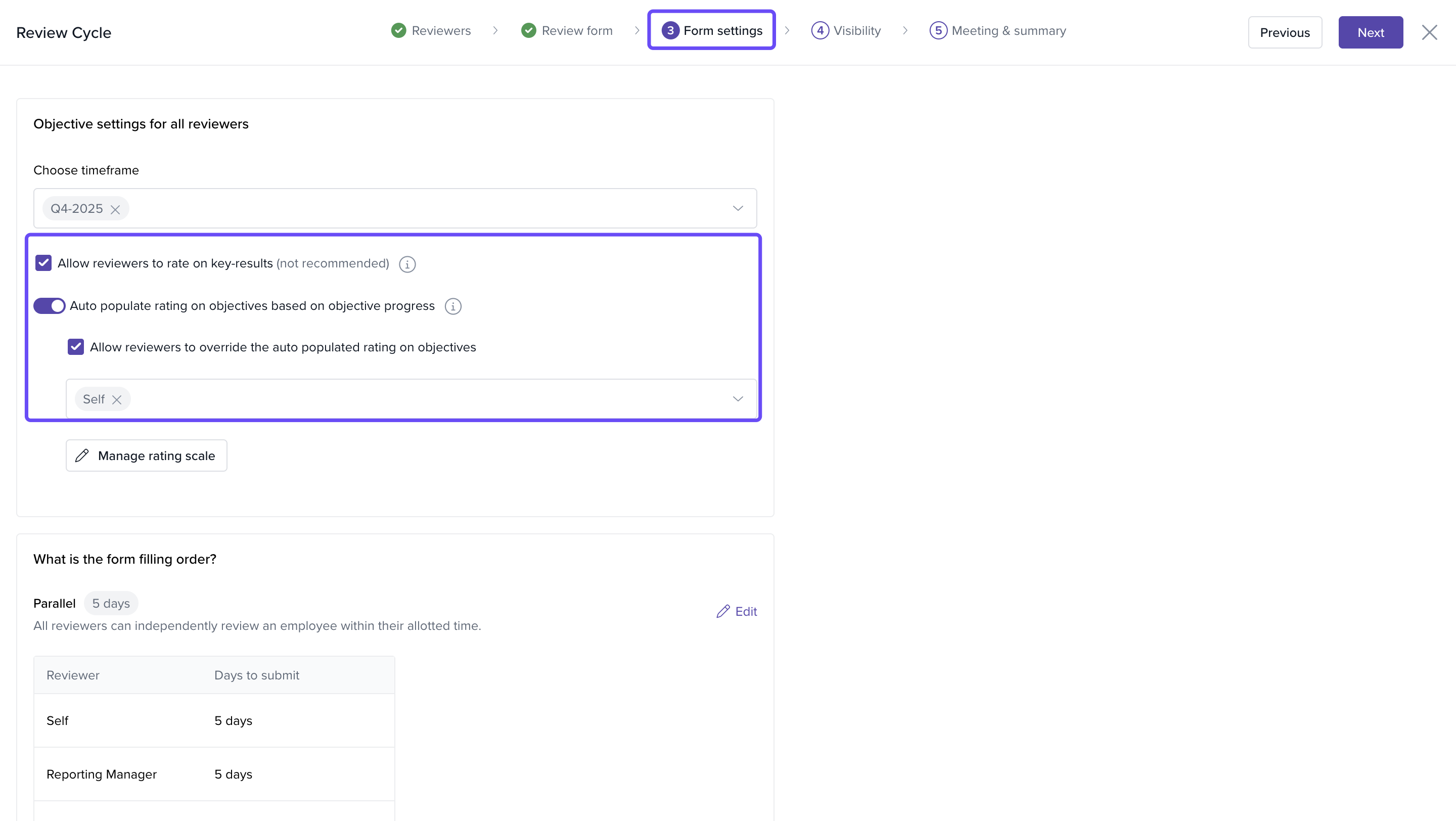 Note: This New Review Cycle Setup is currently an alpha feature and may not be available to all customers. Access will be rolled out in phases.