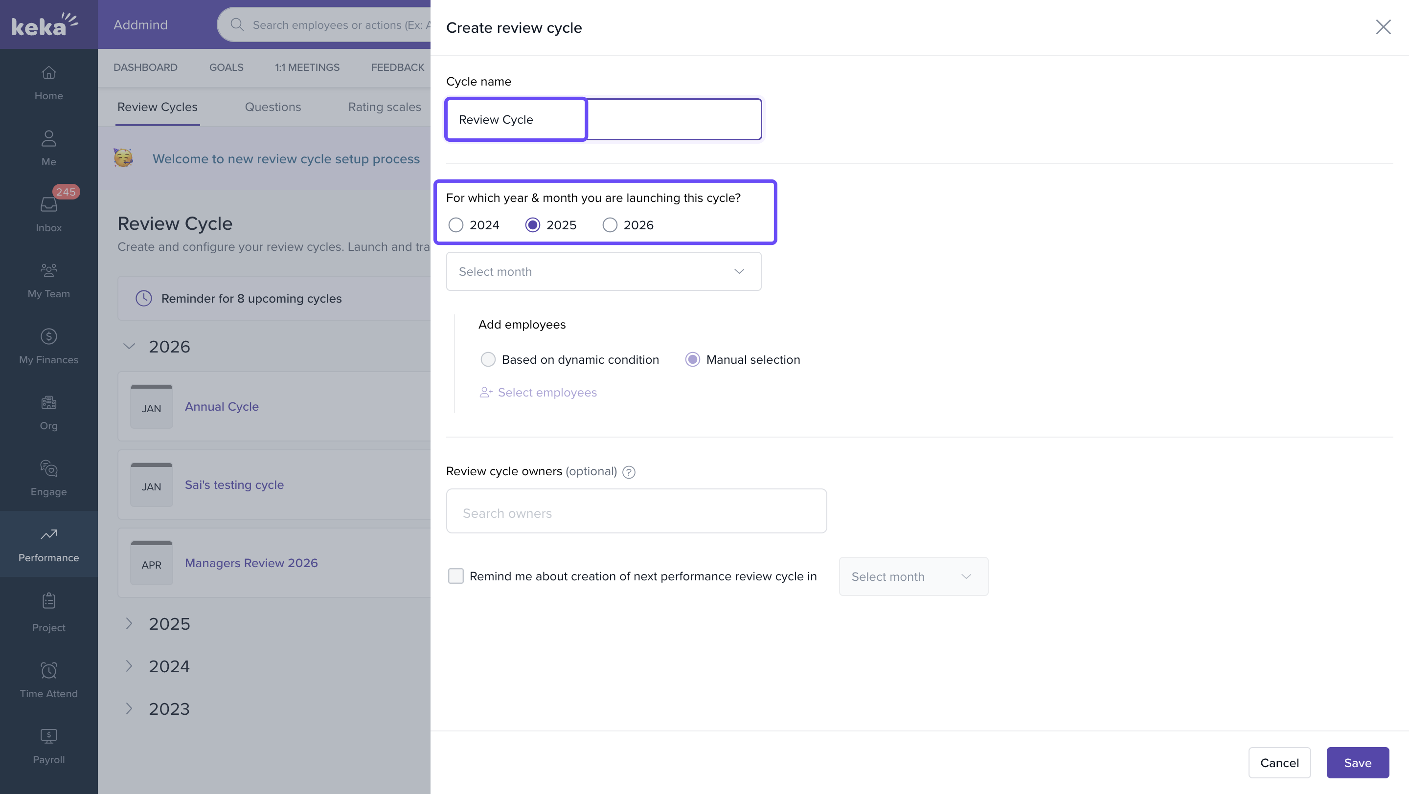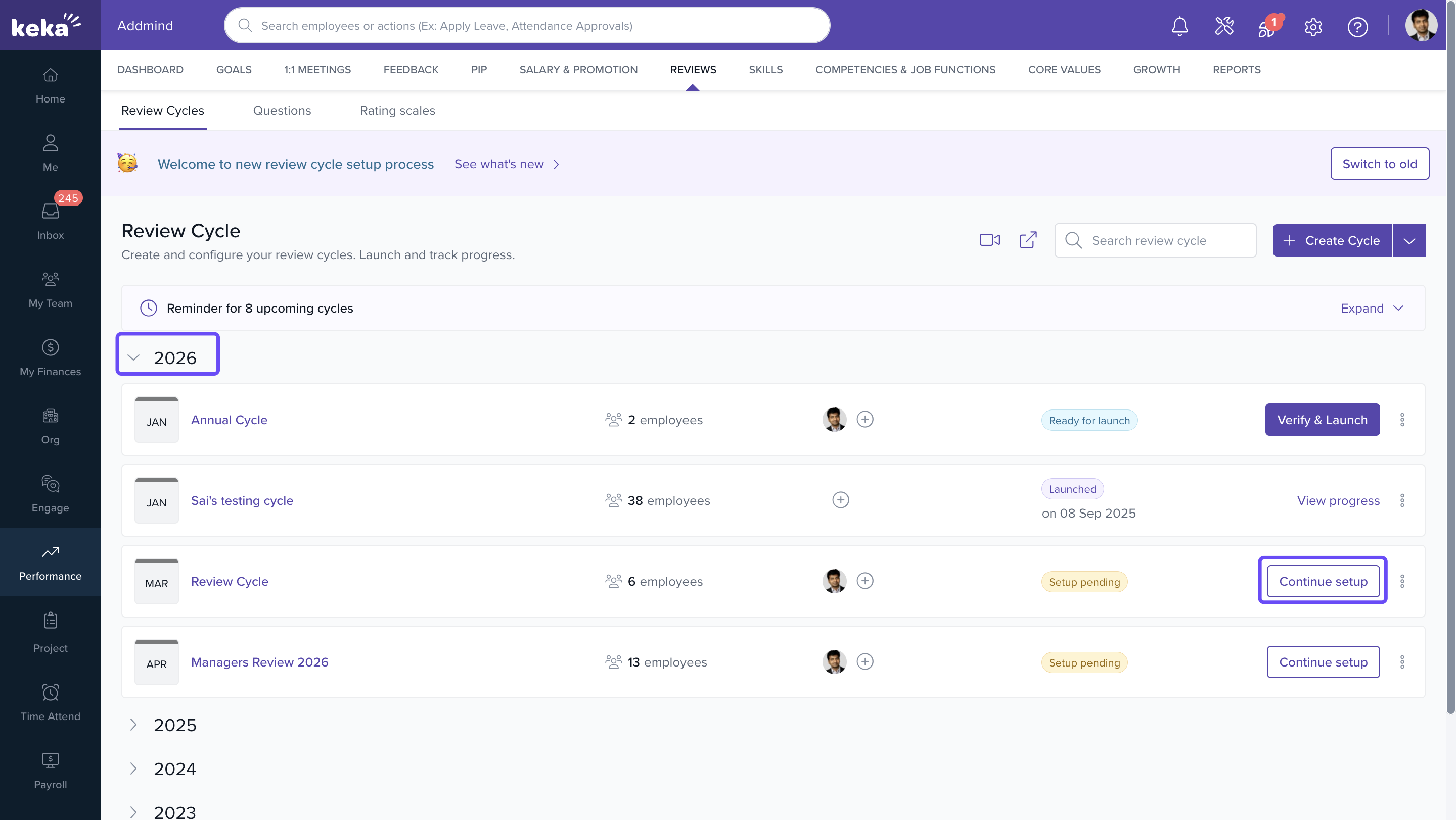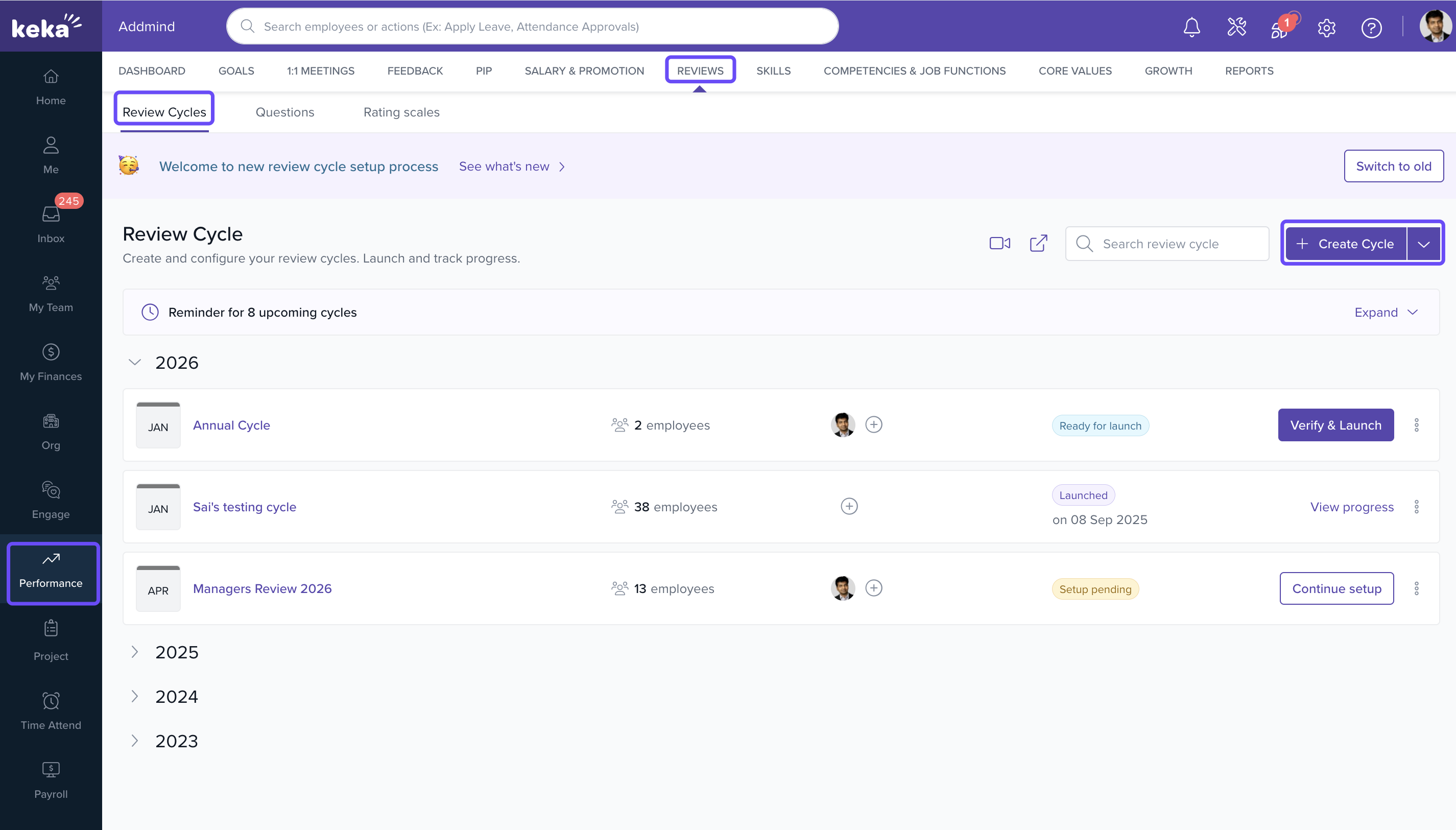 Keka’s enhanced Review Cycle Setup brings a cleaner interface, smarter automation, and flexible configuration options to help HR teams run performance reviews with ease. The new experience reduces manual work, keeps cycles organised, and ensures employees are mapped accurately.