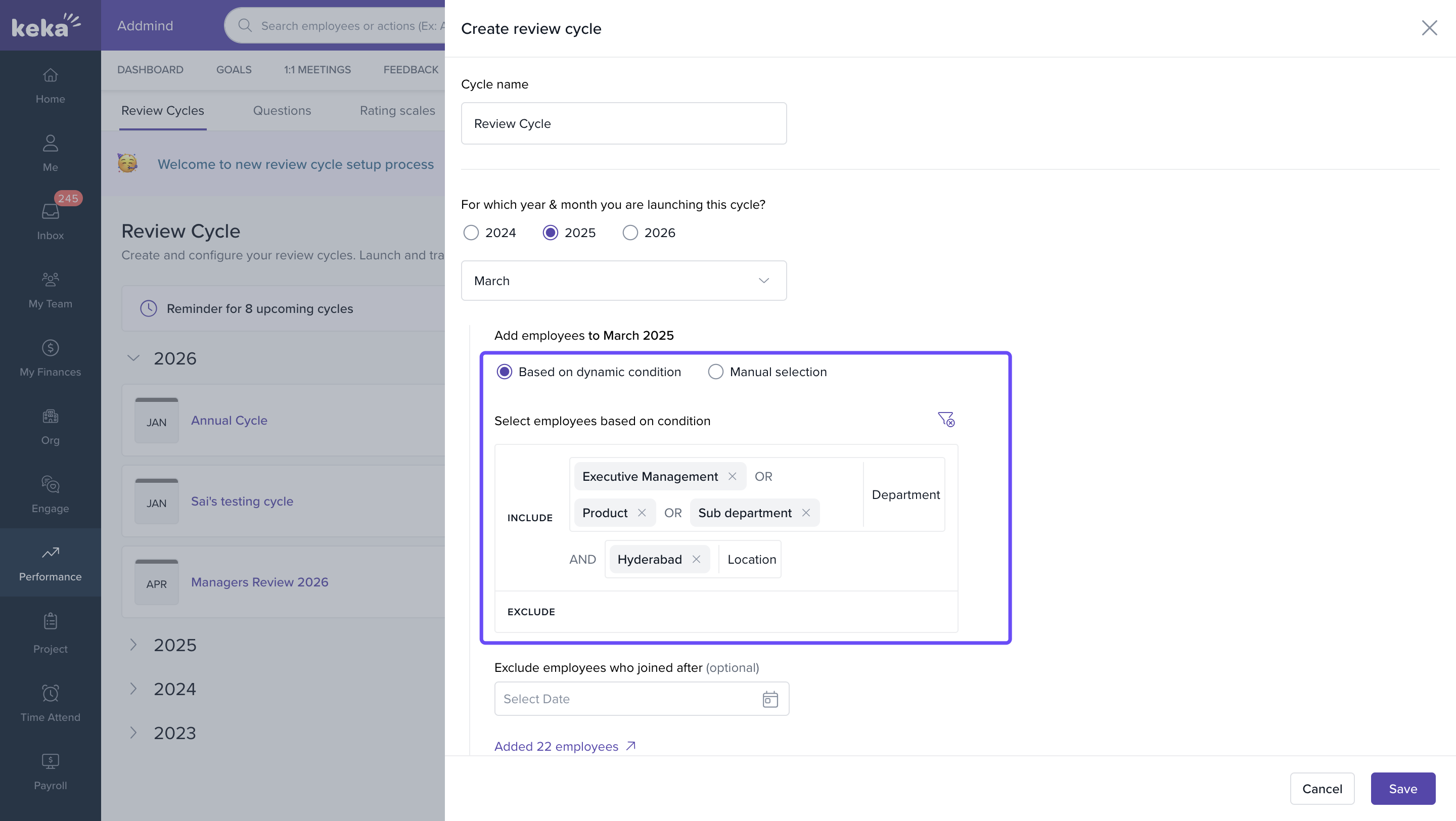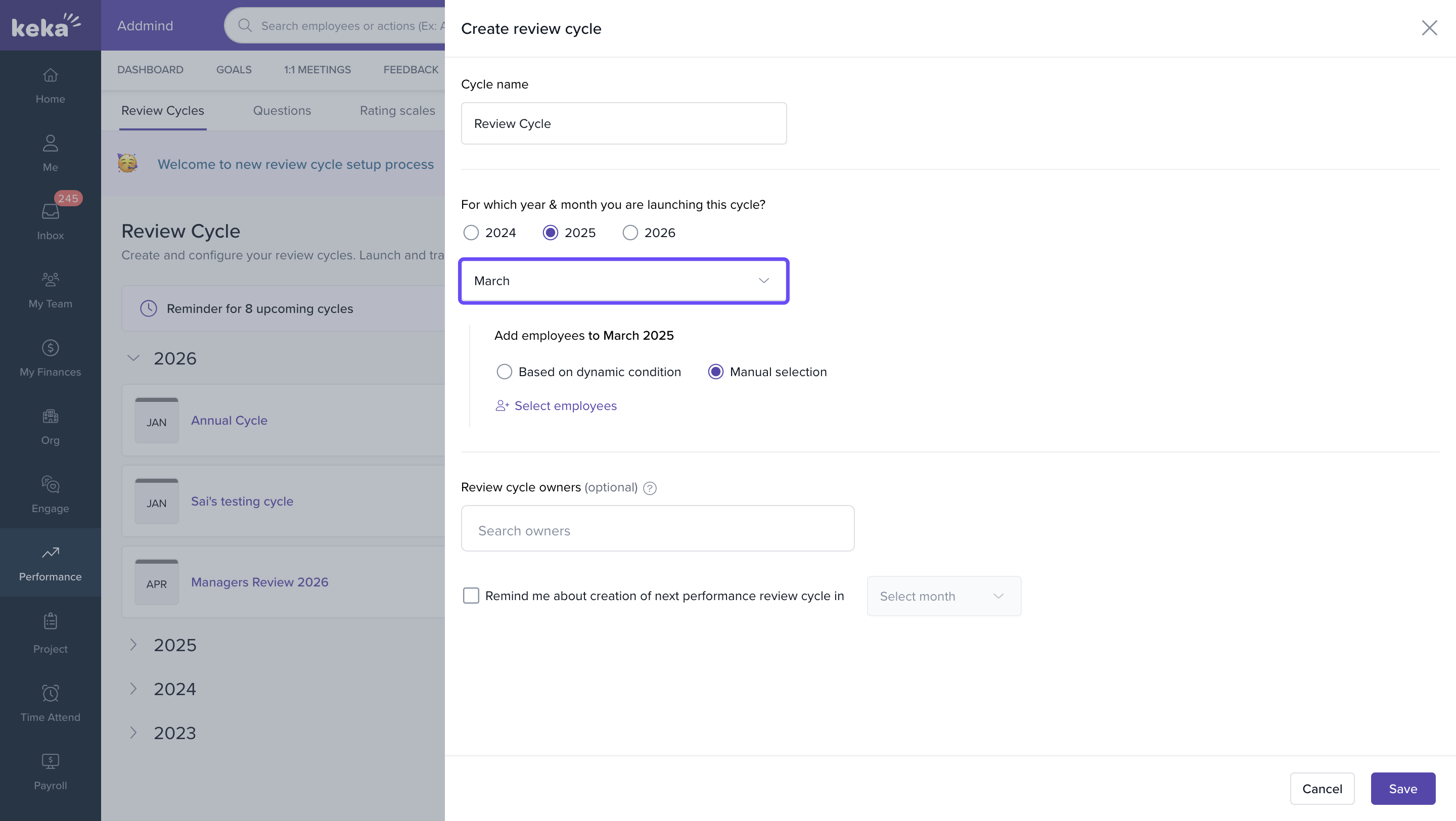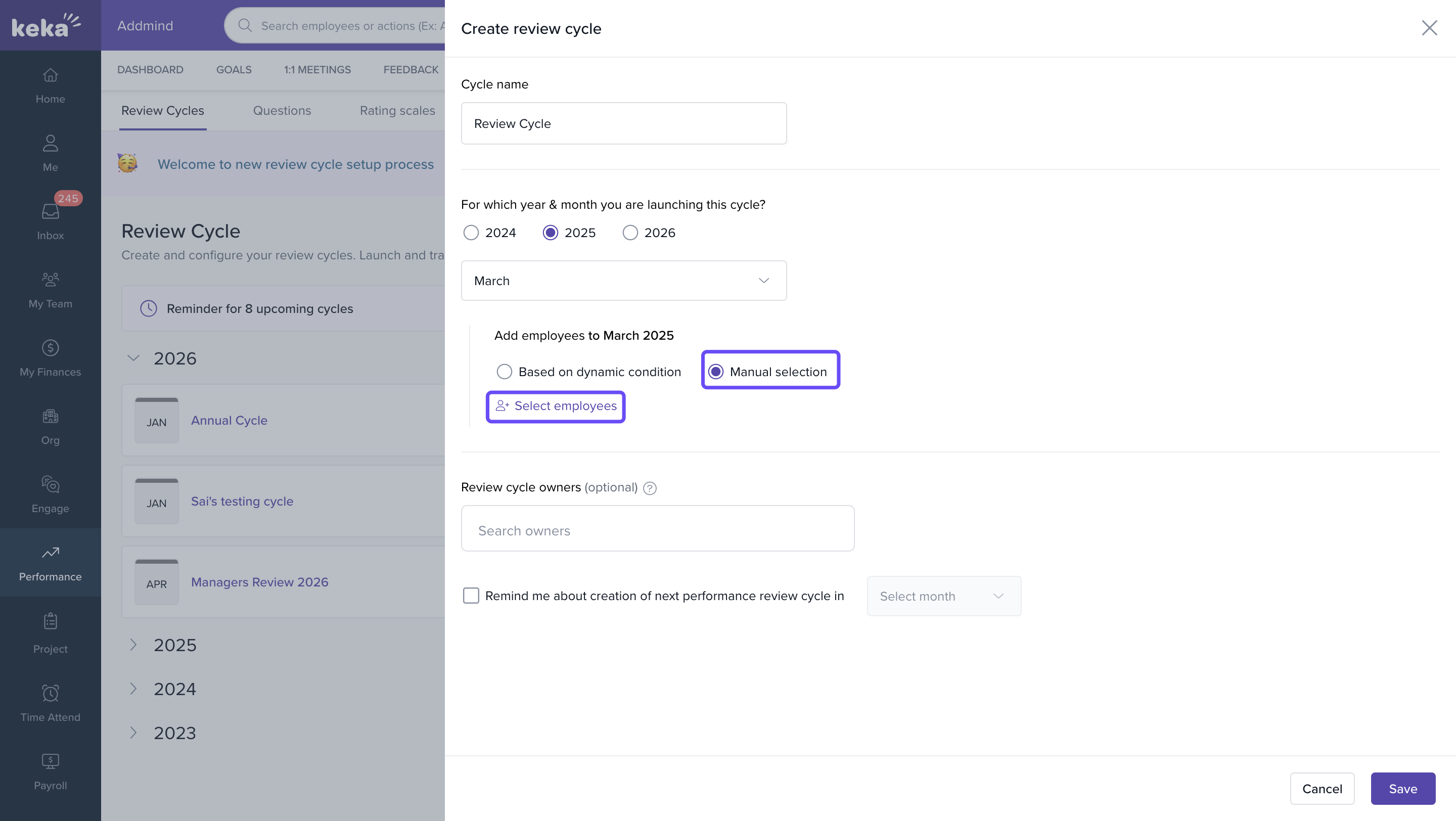 Keka’s enhanced Review Cycle Setup brings a cleaner interface, smarter automation, and flexible configuration options to help HR teams run performance reviews with ease. The new experience reduces manual work, keeps cycles organised, and ensures employees are mapped accurately.