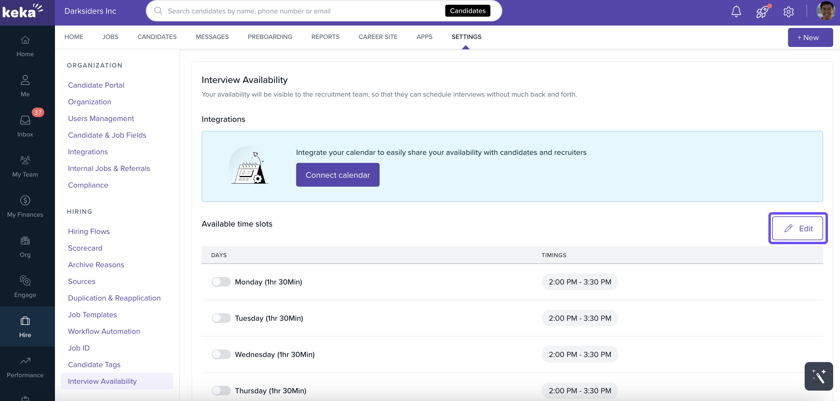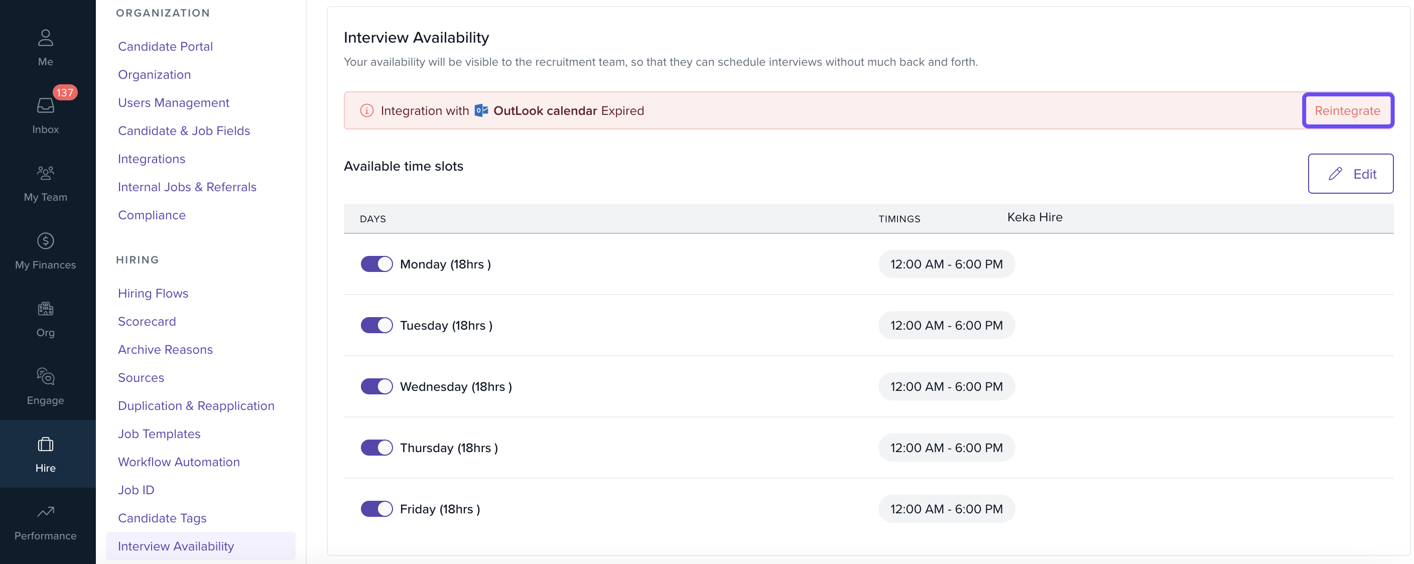 Manage availability – update their slots; recruiters can send reminders if missing.