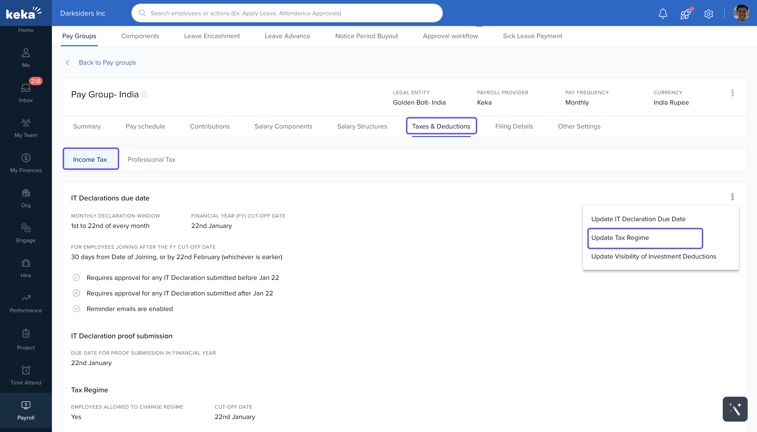 In the next window, go to Taxes & Deductions and click Update Tax Regime.