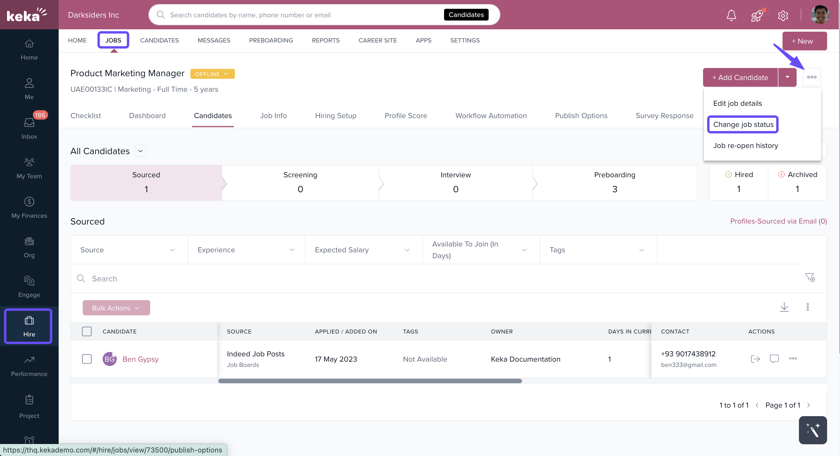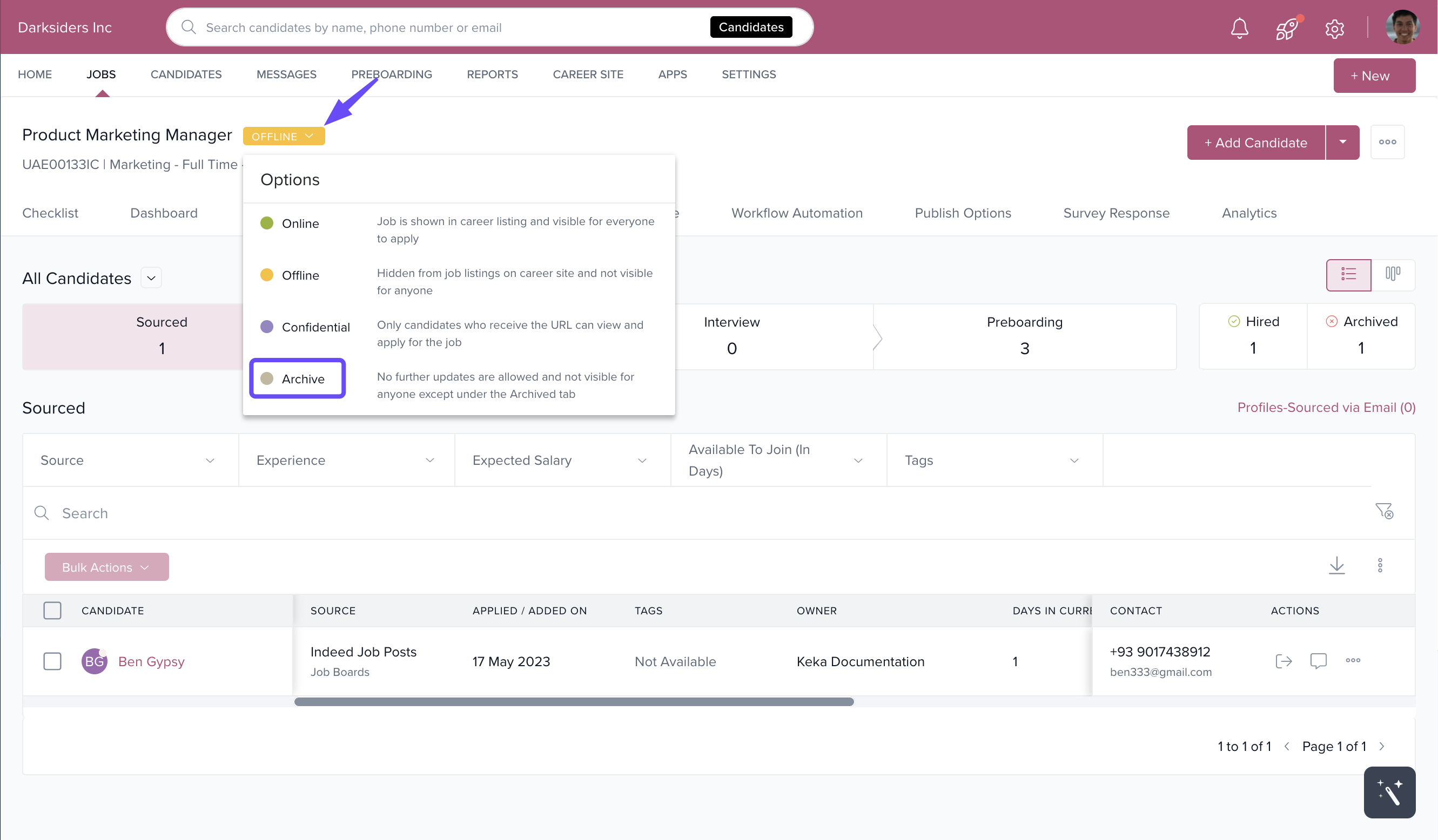 A job posting is a formal announcement of an open position shared with job seekers. In Keka Hire, when you're no longer hiring for a specific role—either because the position has been filled or the need has changed—you can archive the job.