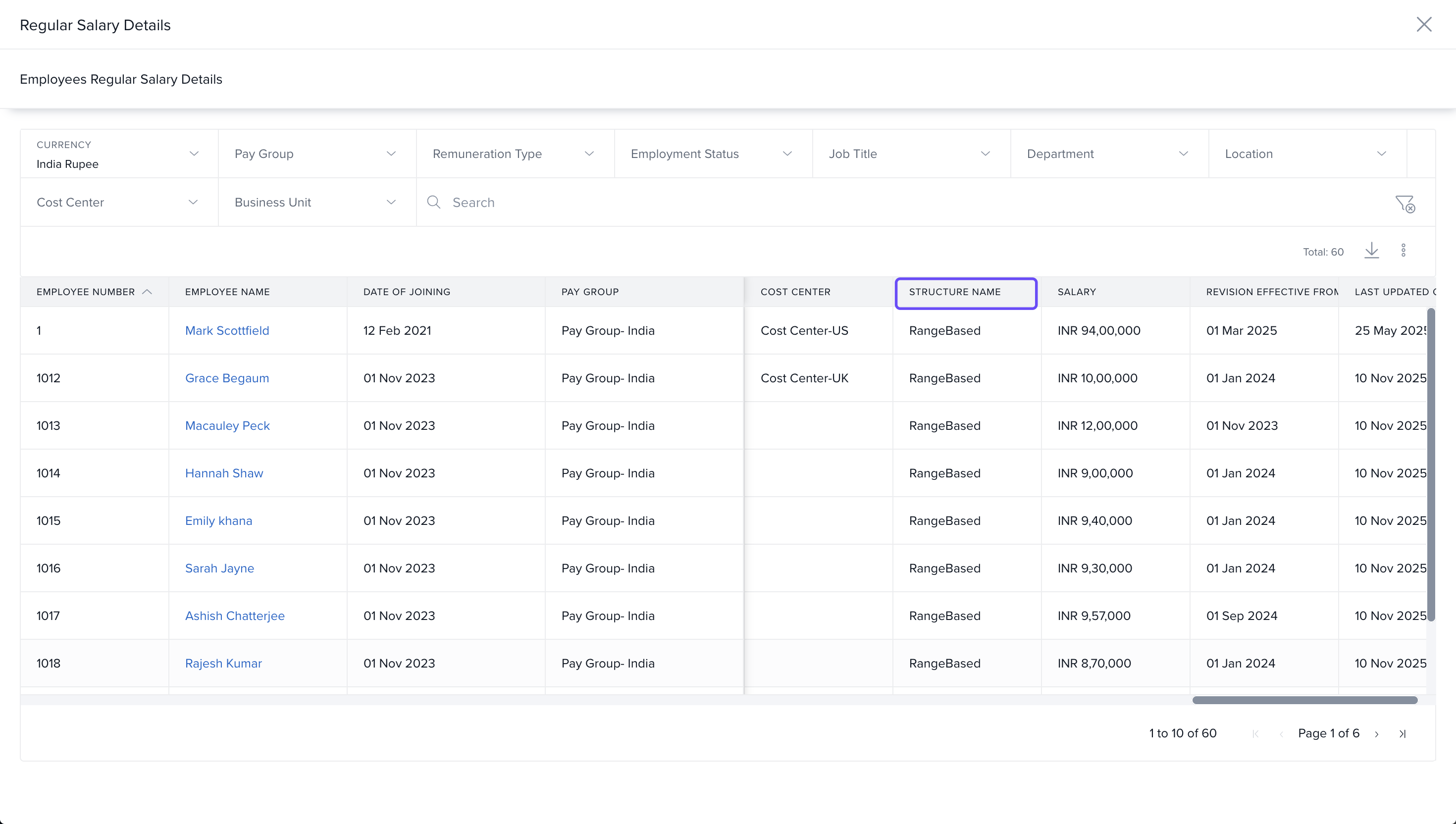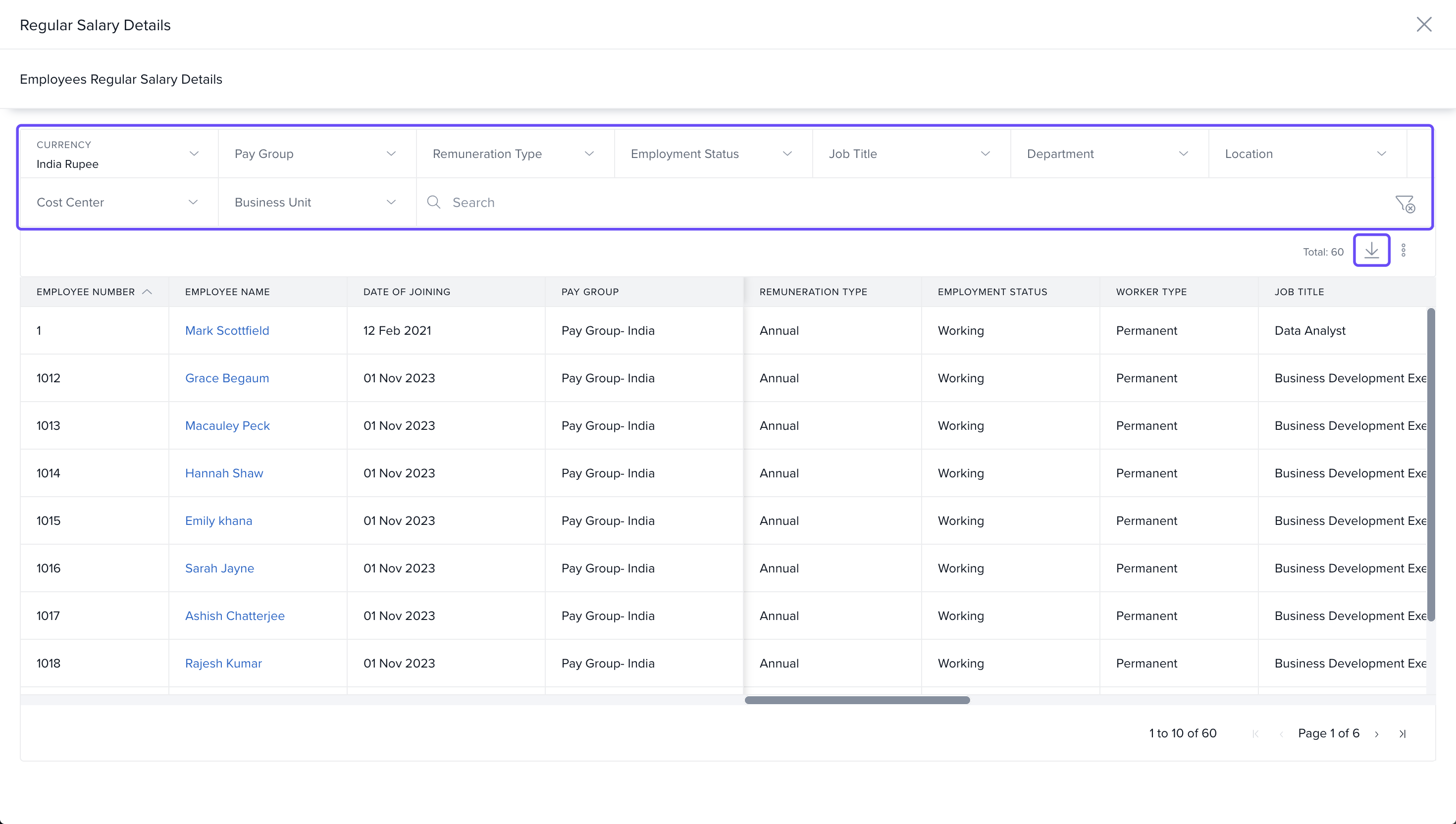 Use filters such as Pay Group, Remuneration Type, or others to narrow down results.