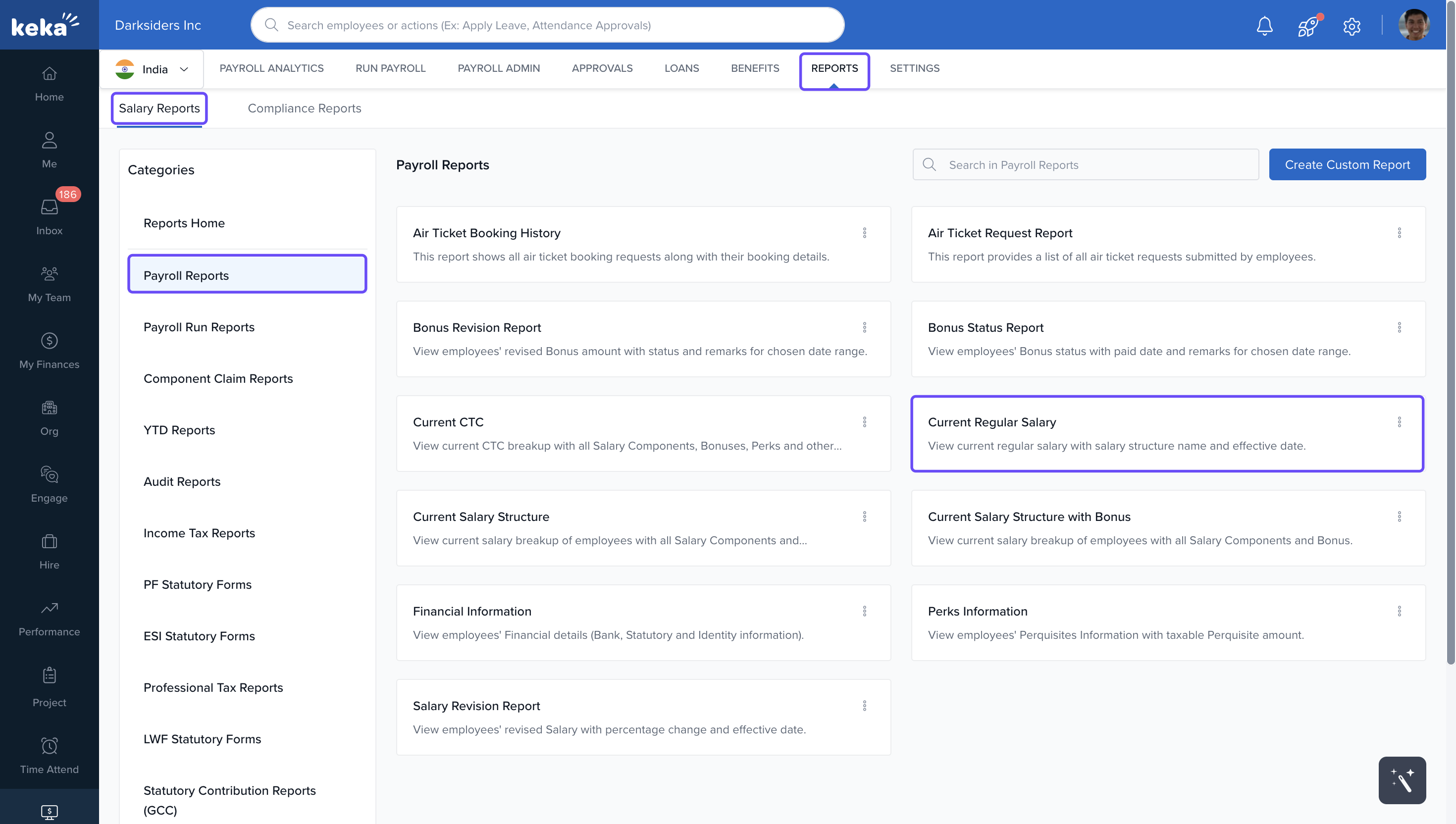 Using Keka’s Reports feature, admins can easily view and analyze the salary structures assigned to all employees.