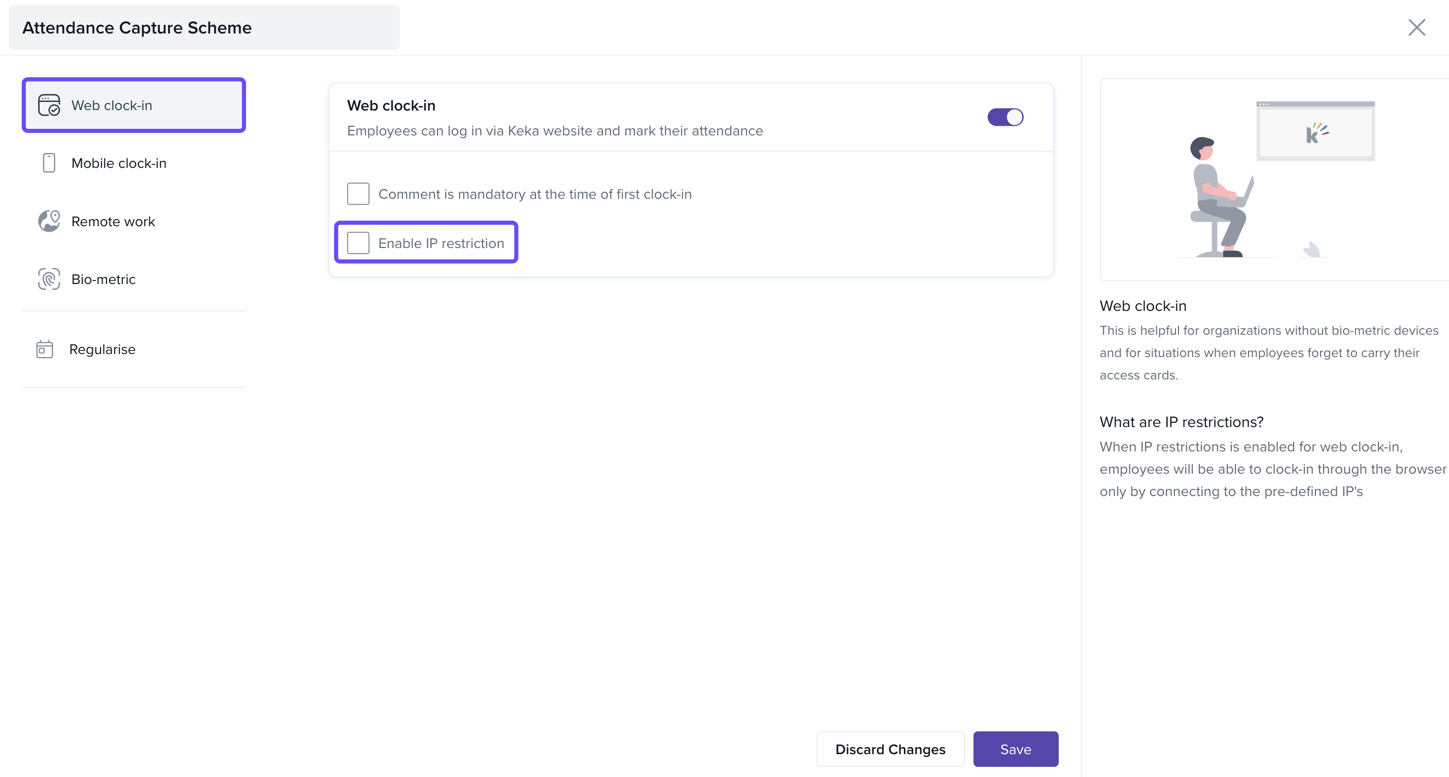 This guide shows you how to update your capture scheme in Keka to remove the IP limitation and enable flexible attendance tracking.