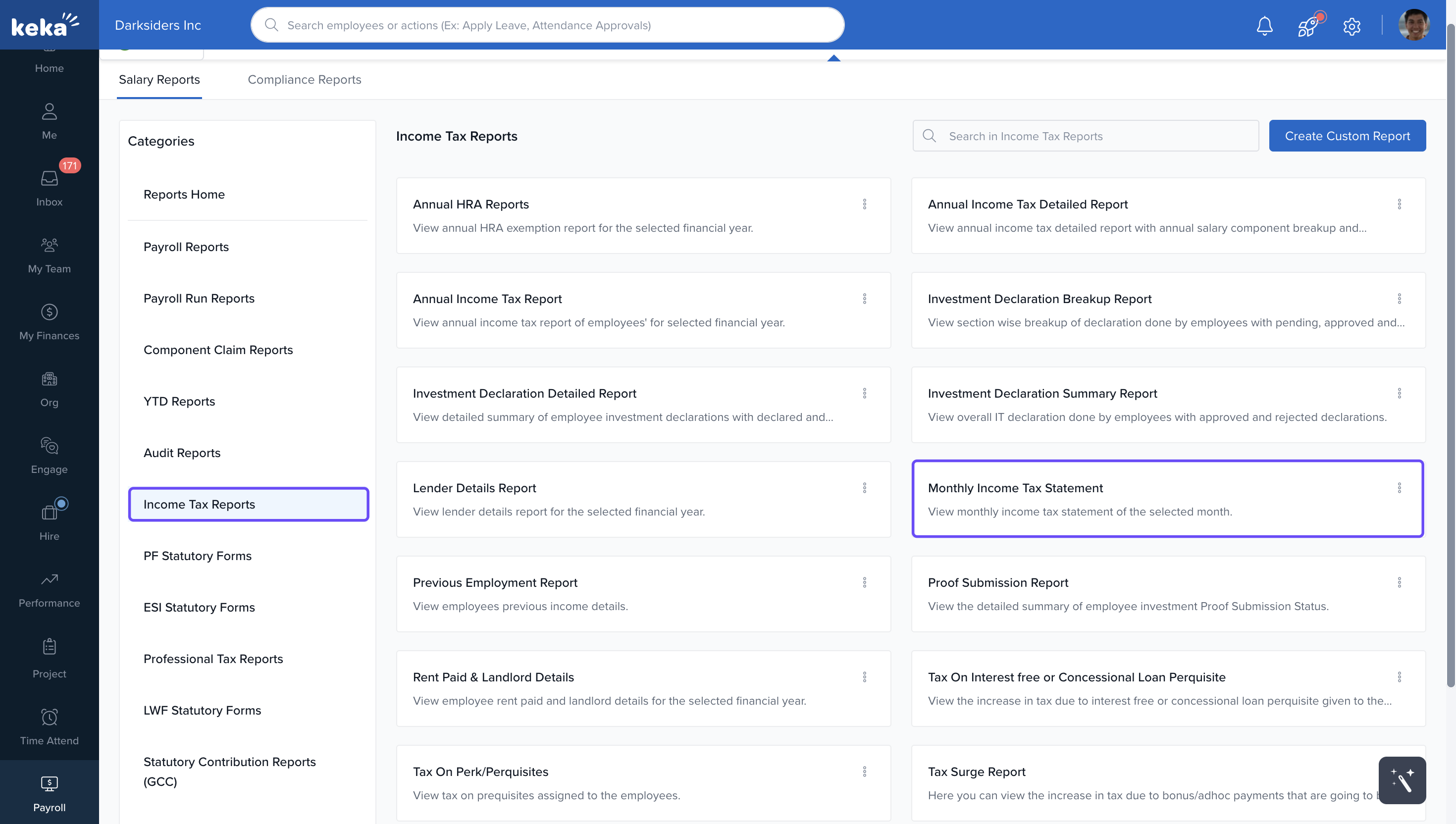 Under Income Tax Reports, click on Monthly Income Tax Statement.