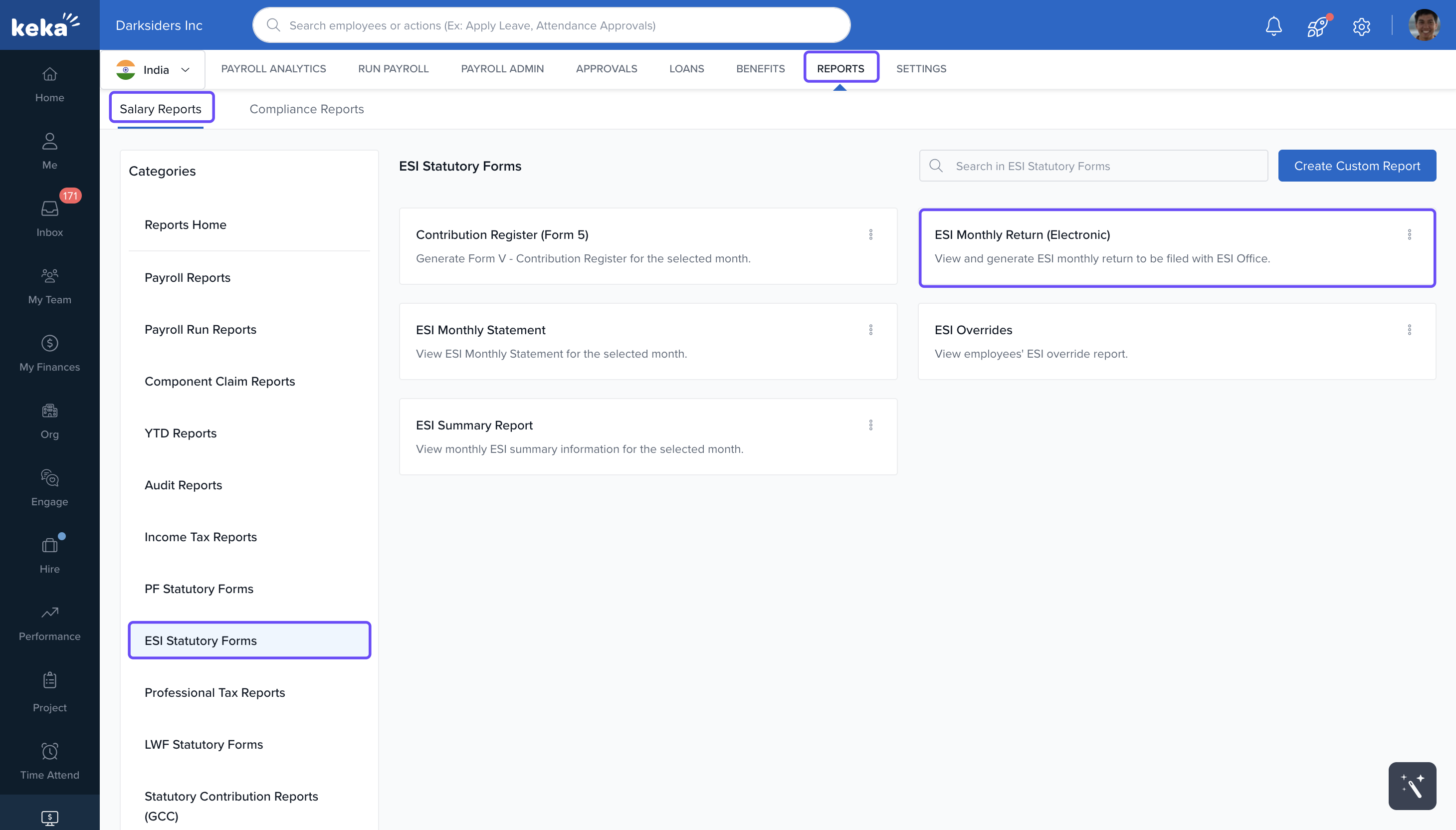 To simplify this process, Keka provides an ESIC ECR (Electronic Challan-cum-Return) report that includes all the required data for filing.