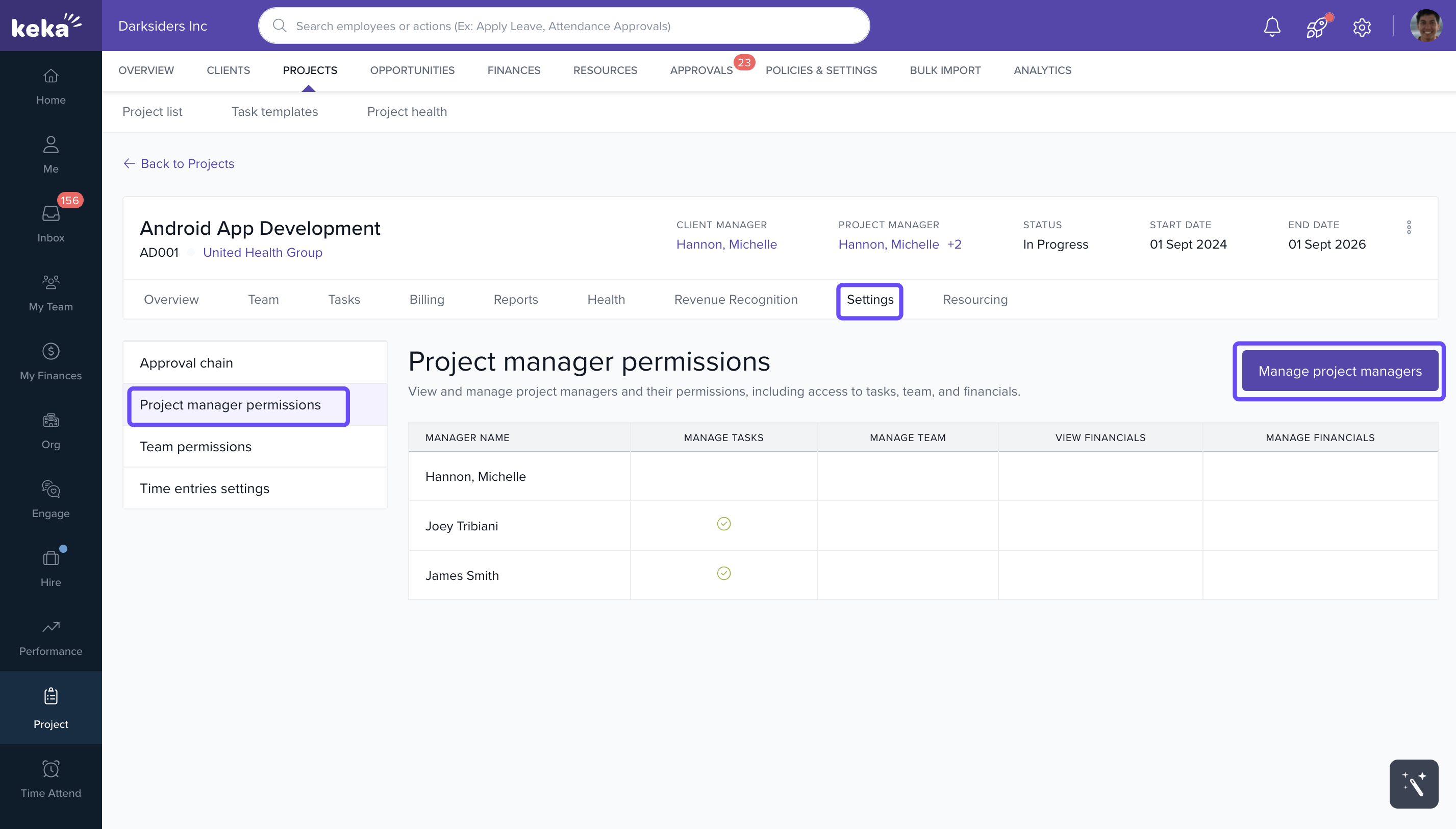 - Under Project Managers, click Manage Project Managers.