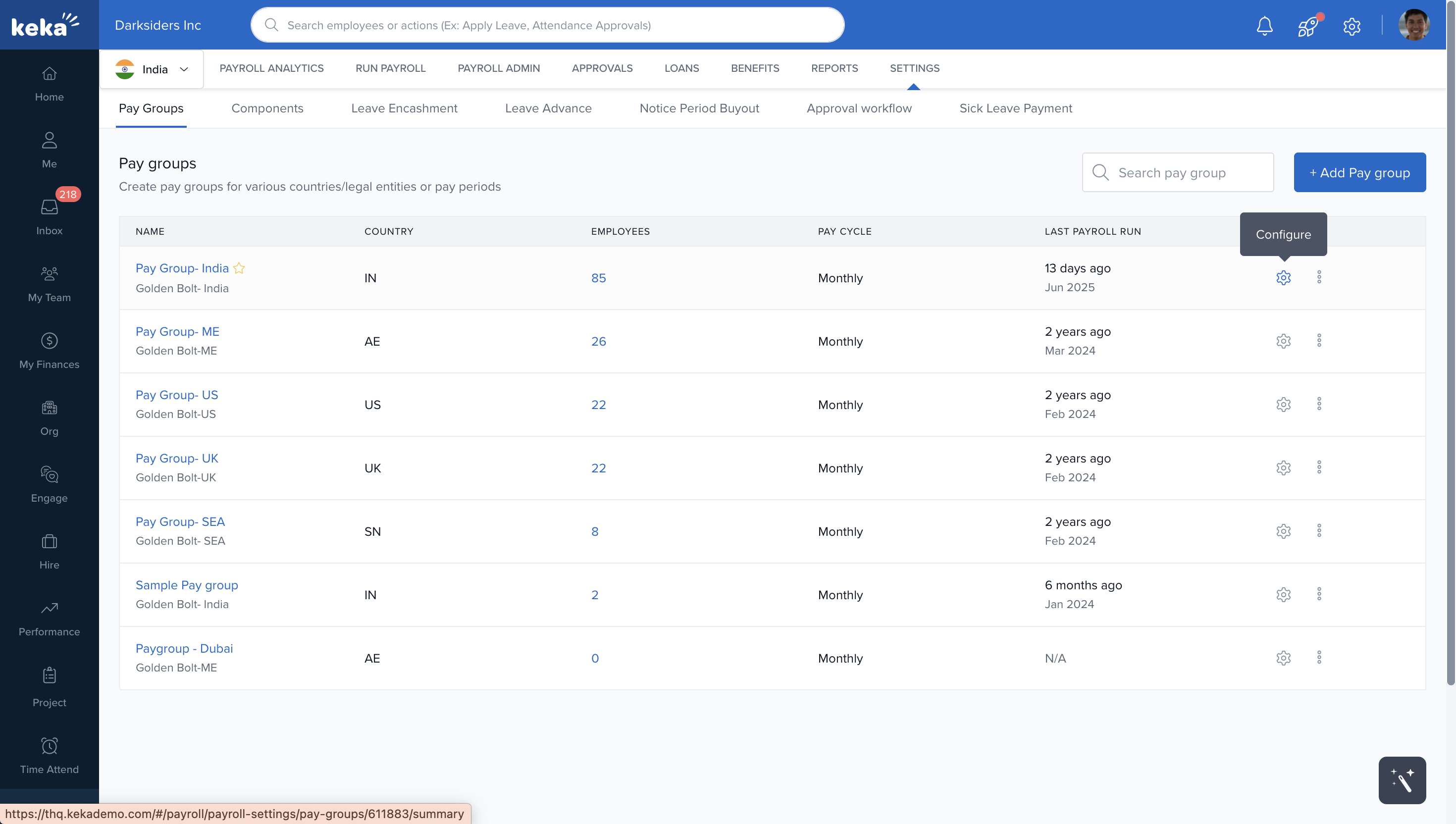 Go to: Payroll → Settings → Pay Groups