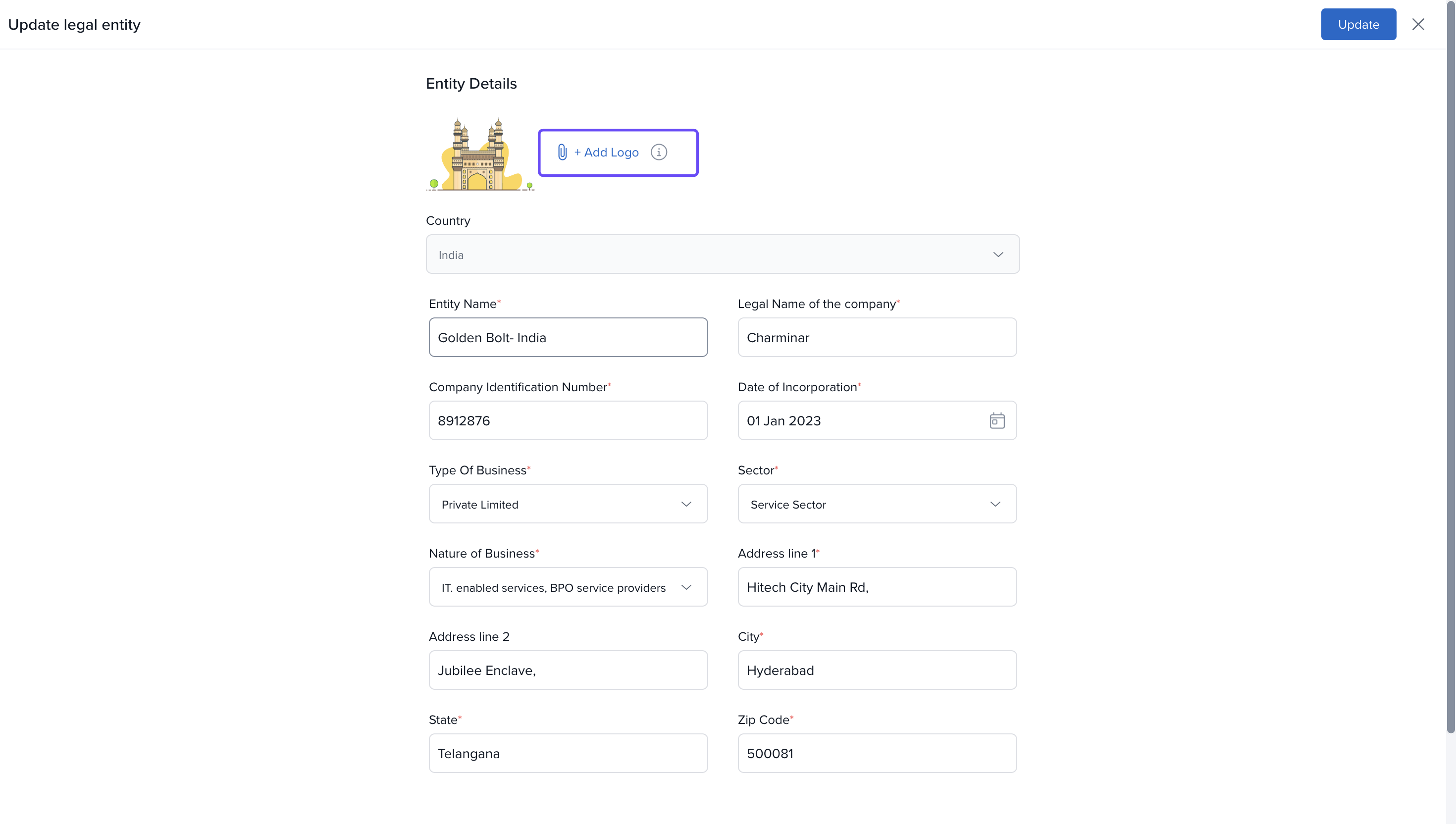 Once uploaded, the logo will appear under Logo. Click Update to save.