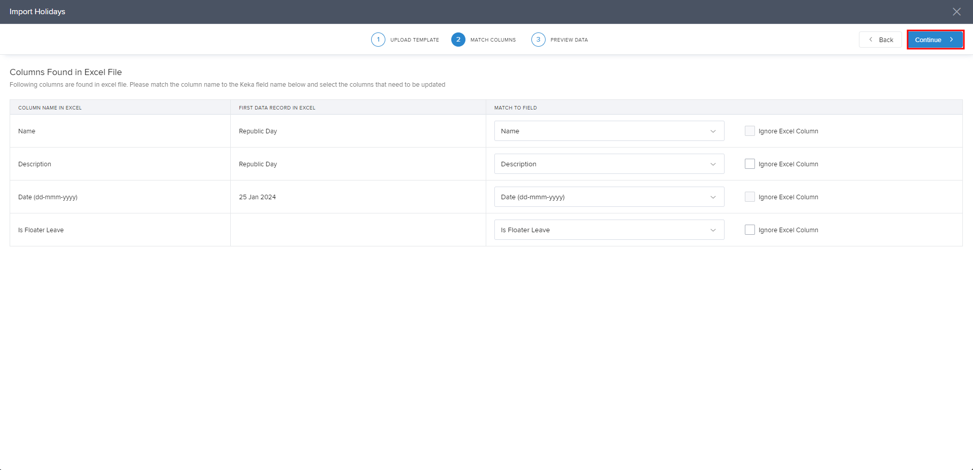 Now in the Keka page, click Upload Excel File to upload the file.