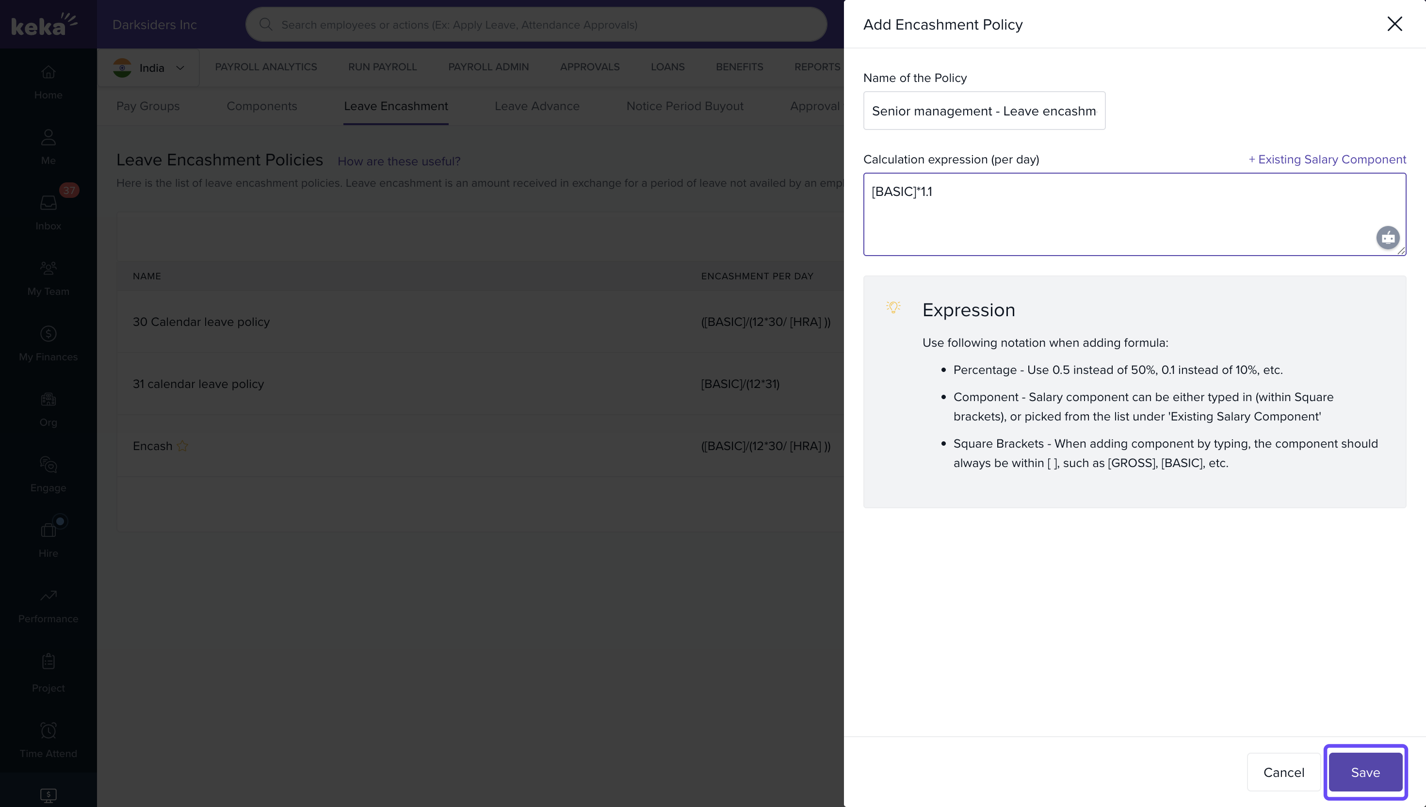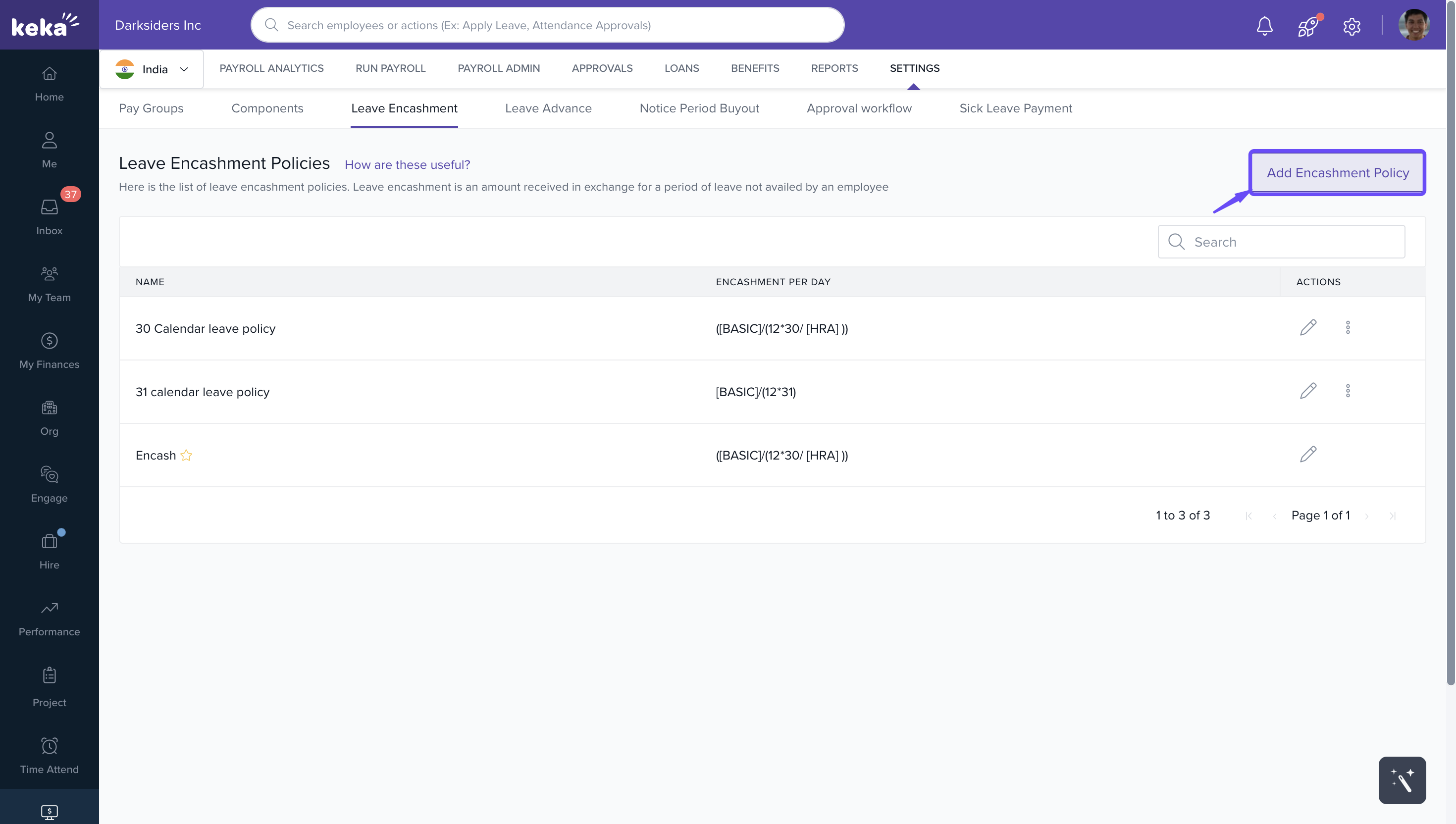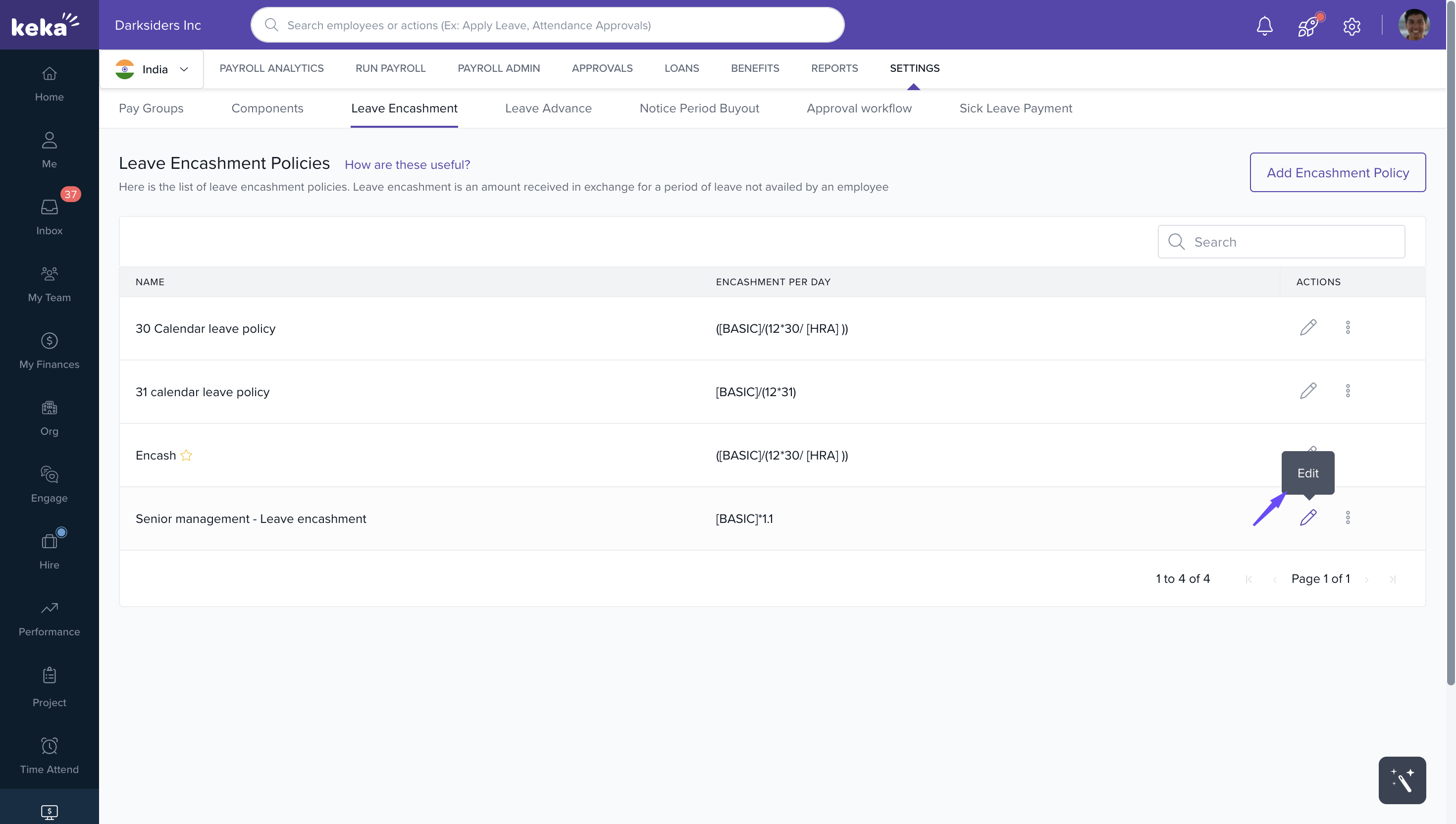Your new encashment policy will appear on the Leave Encashment Policies page.