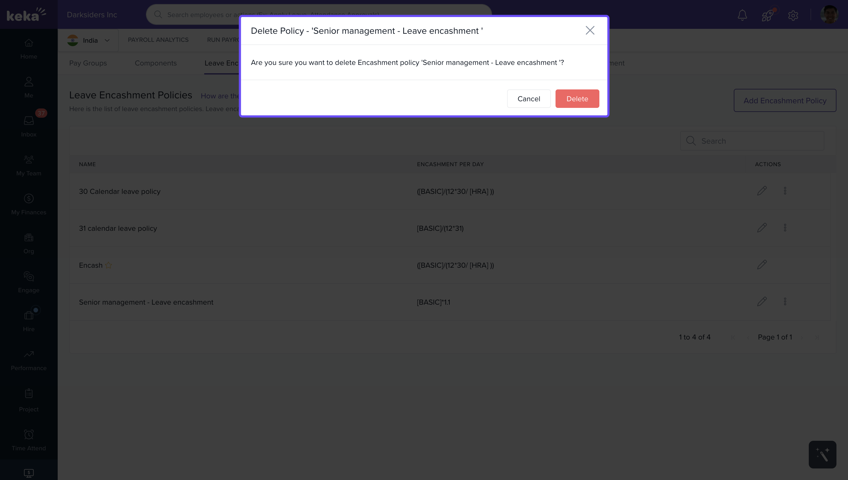 Leave encashment allows employees to convert unused paid leave into monetary compensation. In Keka, you can create custom leave encashment policies, define how the encashment amount is calculated, and assign policies to employees.