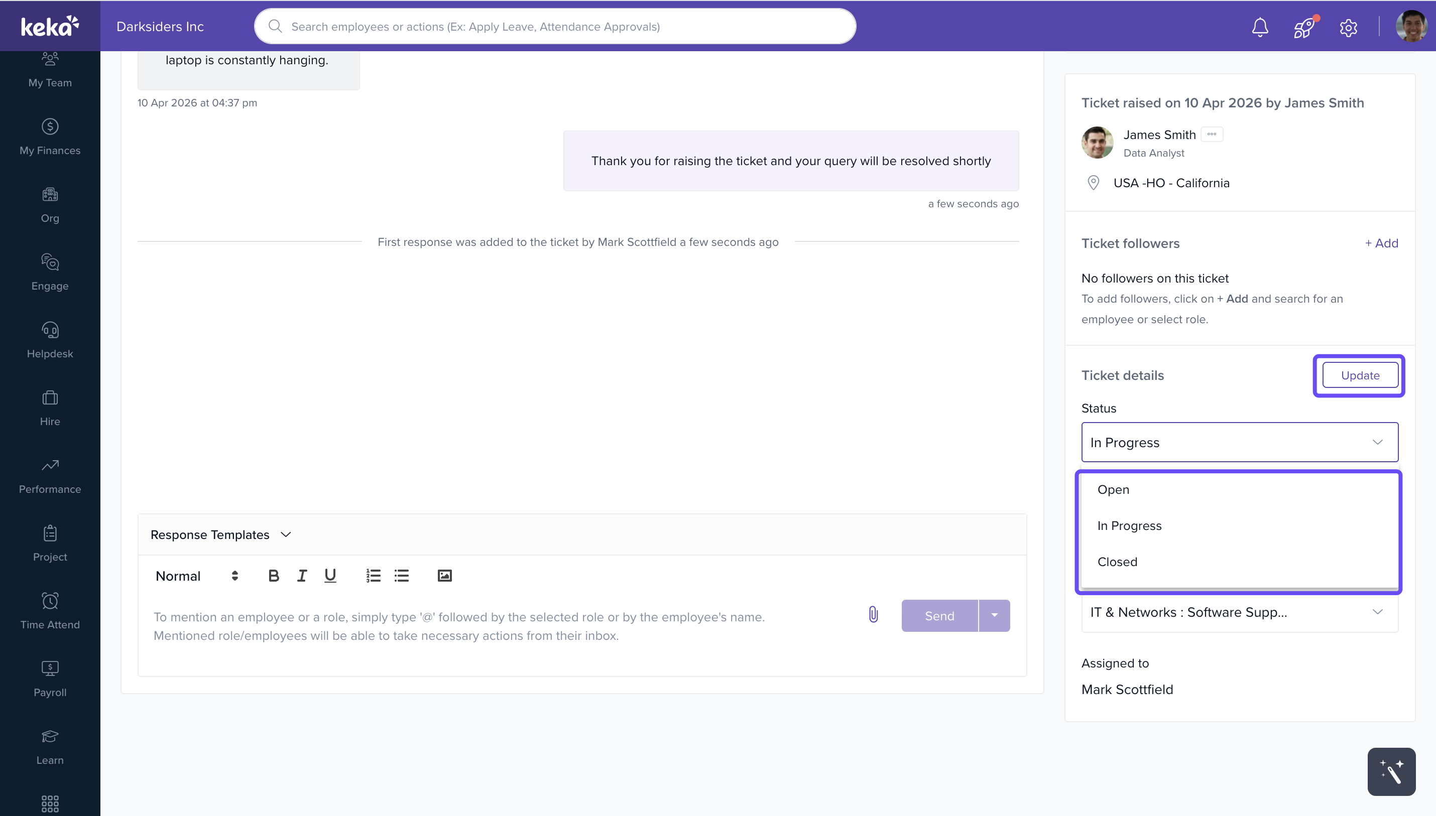 Let us take a look at the steps to change the status of an assigned helpdesk ticket.