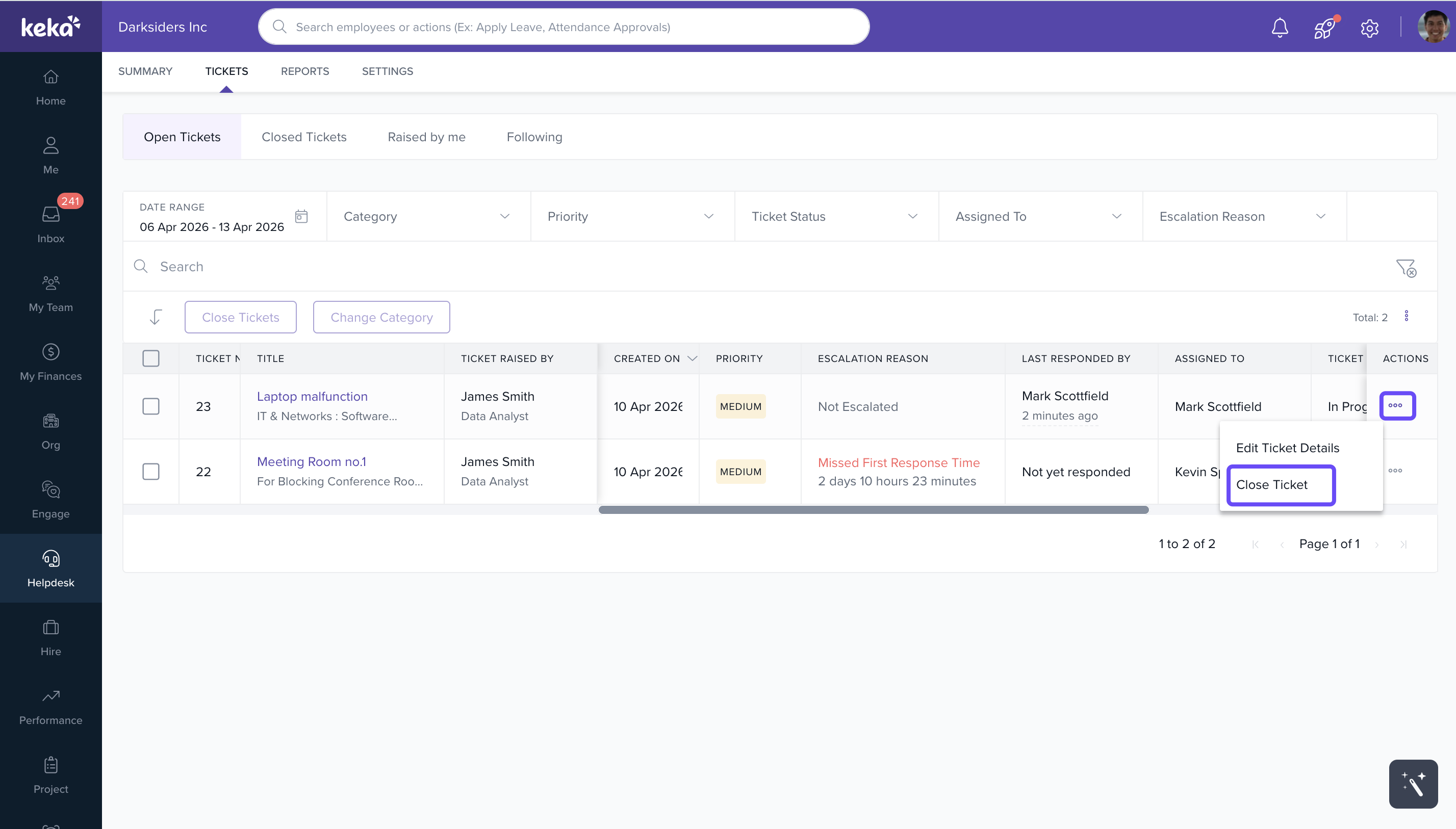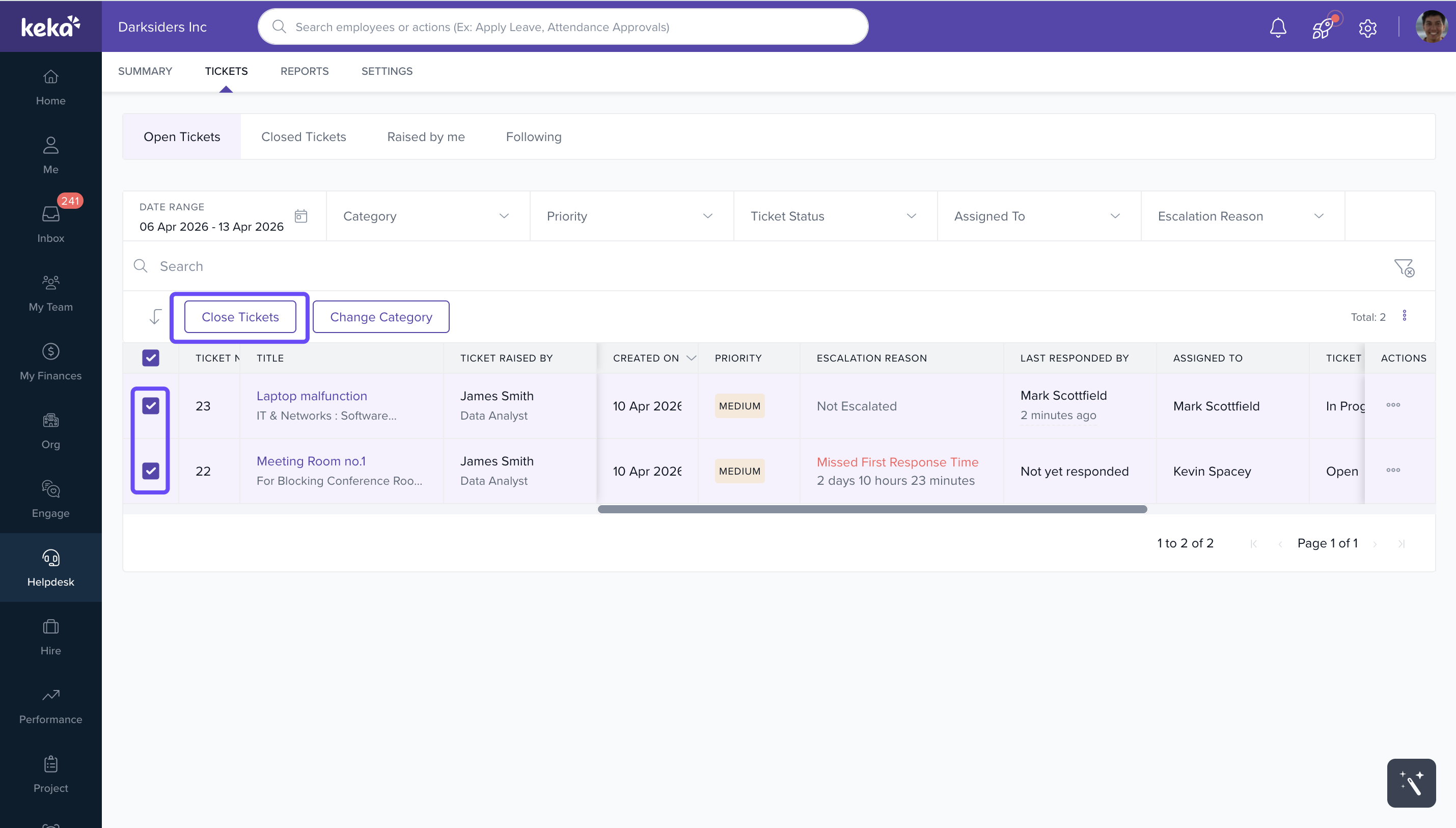 - You may also bulk select the Tickets & click on Close Ticket to close multiple tickets simultaneously.