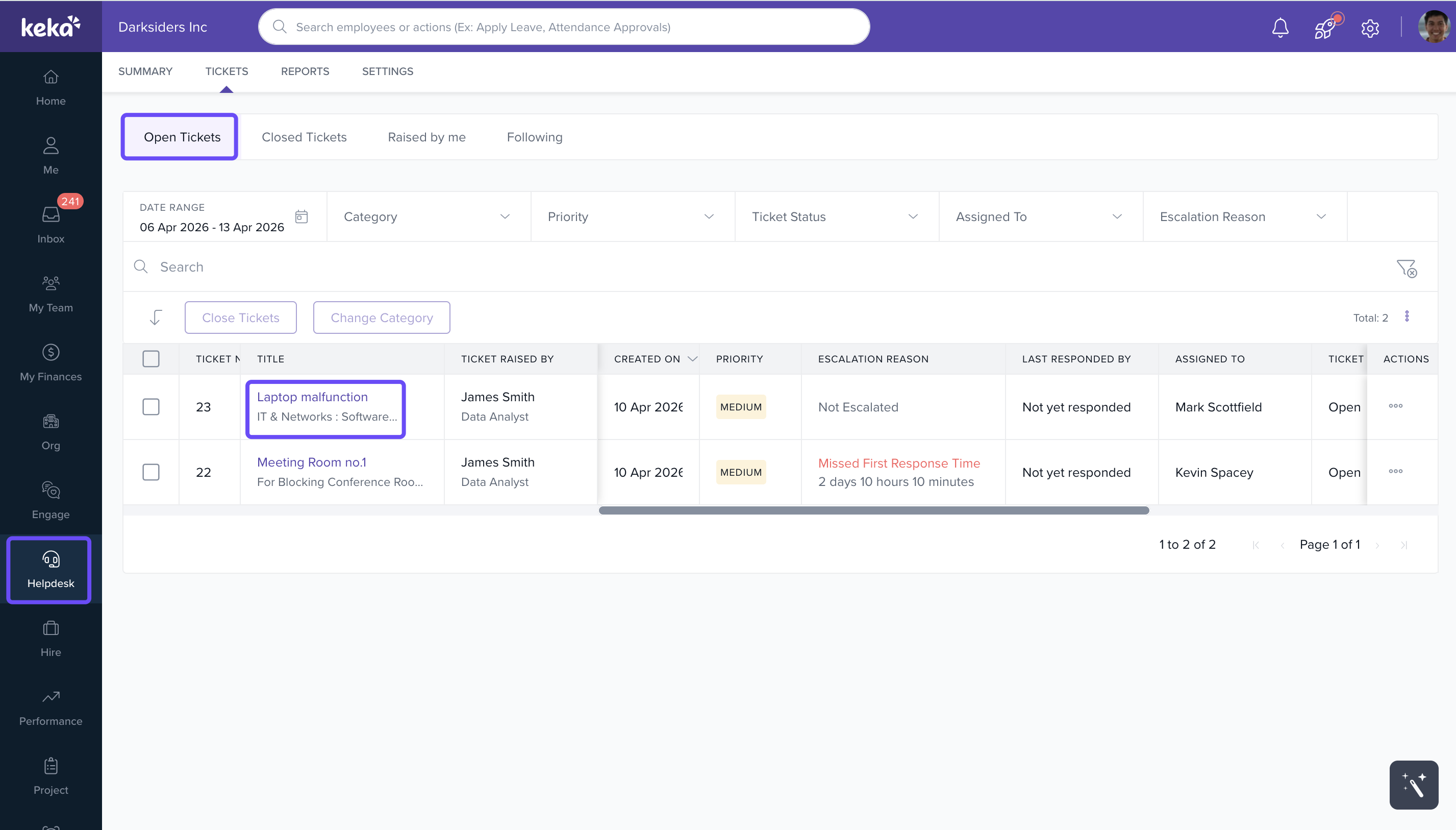 - Under Tickets section go to Open Tickets tab, you will find all the assigned tickets. Click on the Ticket Title.