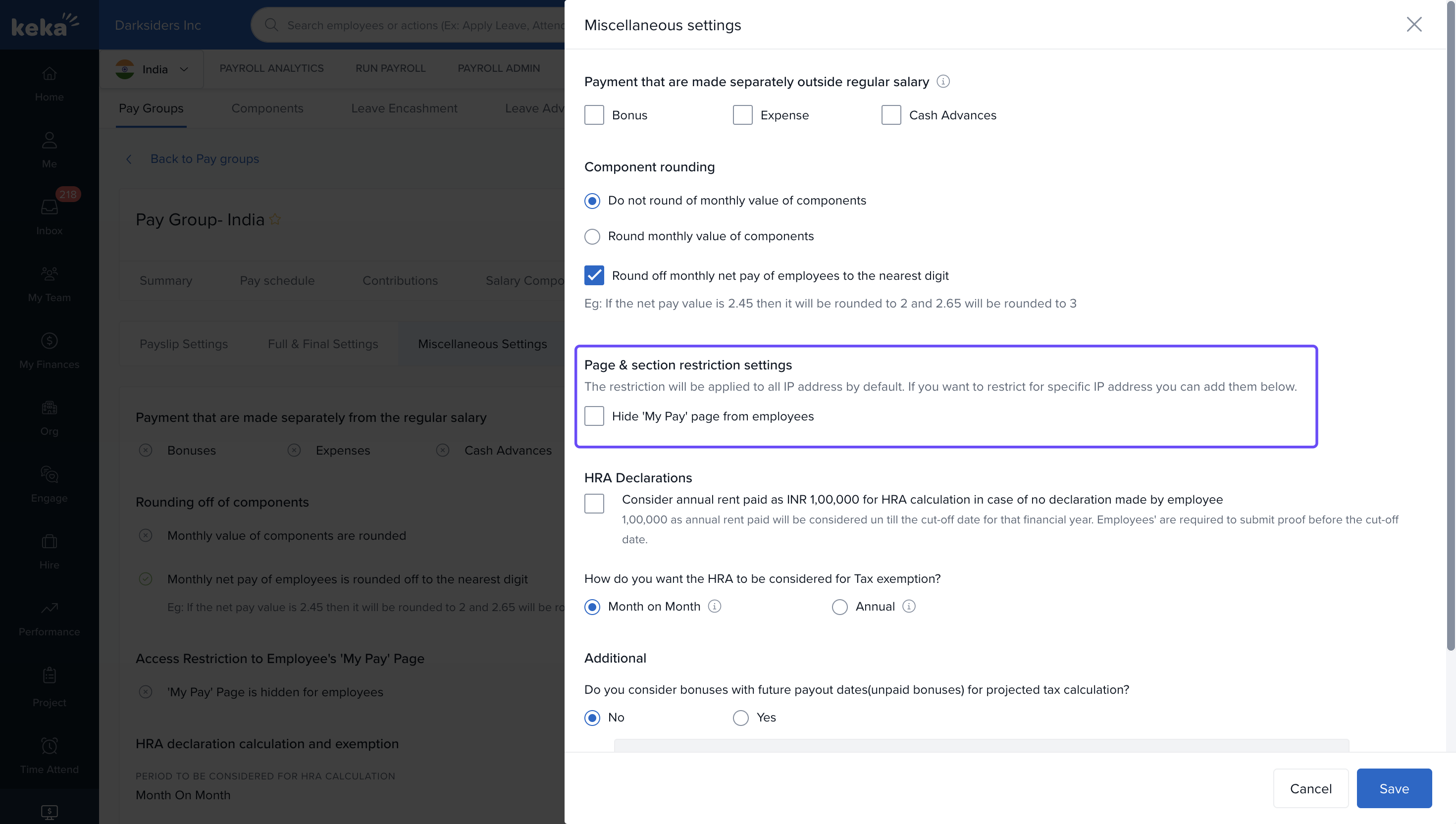 Once saved, the 'My Pay' section will be hidden or visible under My Finances for employees in this pay group.