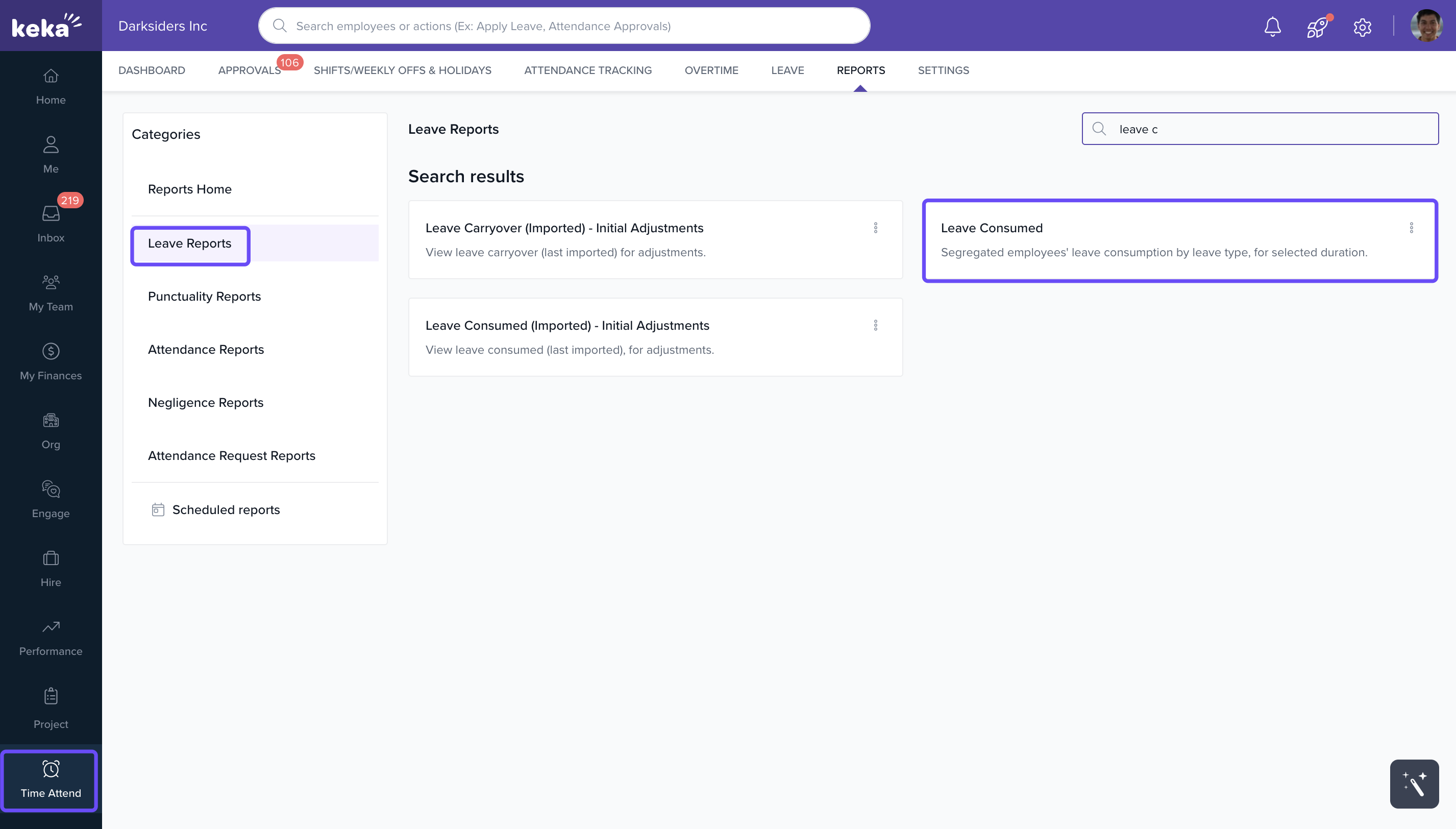 - Under Leave Reports, click on Leave Consumed.