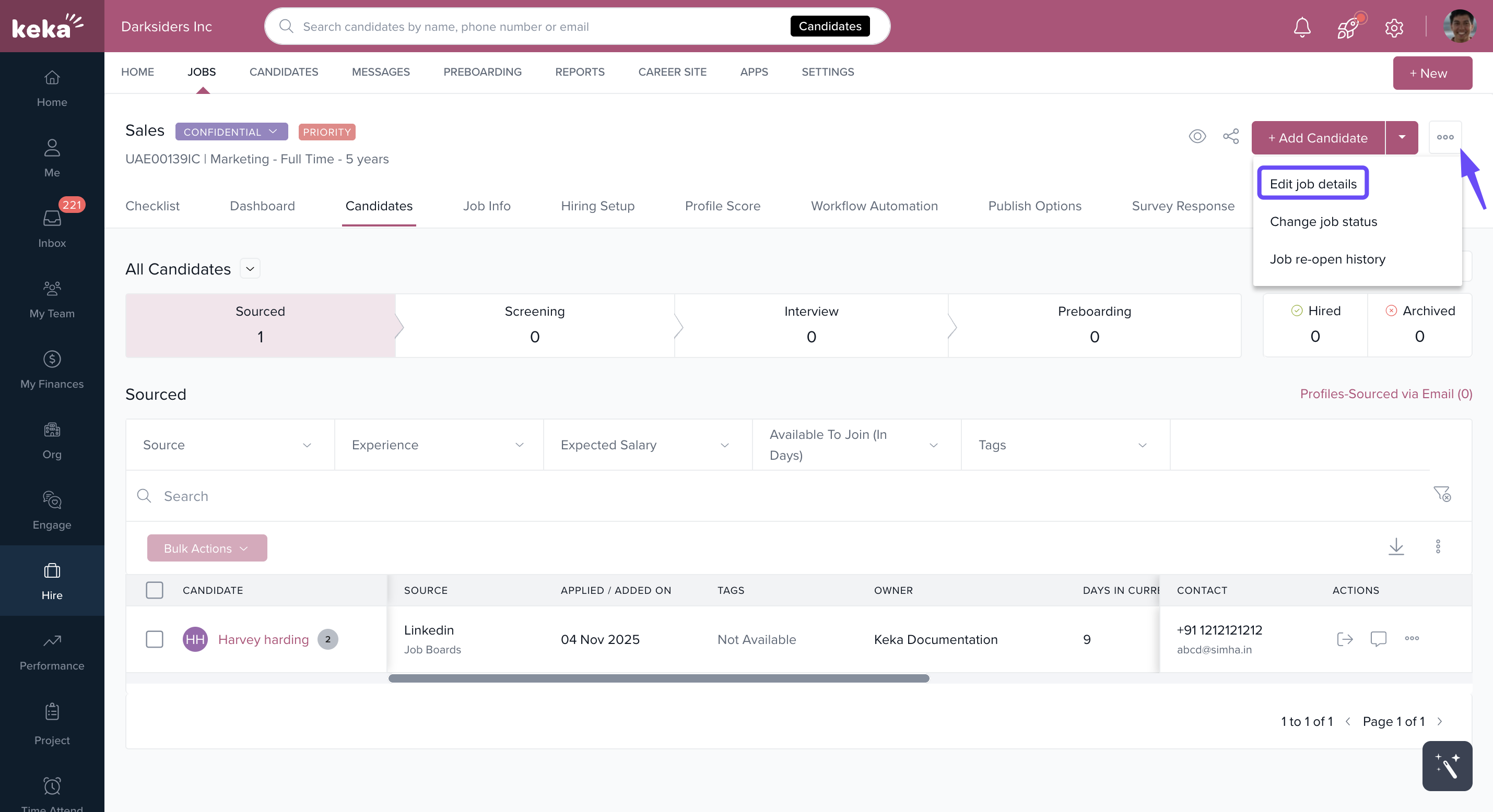 - Click on the three dots right next to the +Add Candidate button & select Edit Job Details.