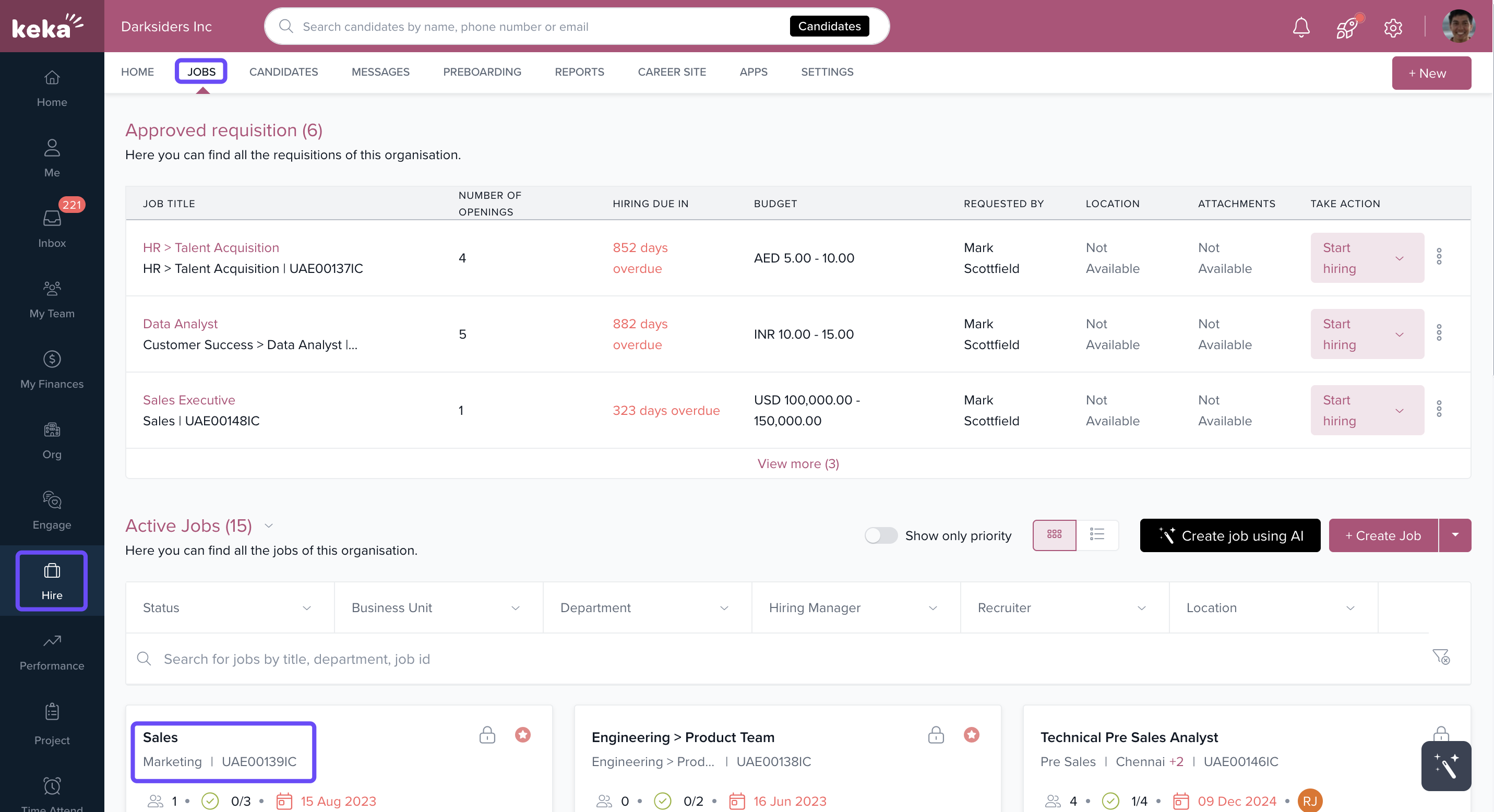 - Go to the Hire section on the left-hand side of the screen and select Jobs .
