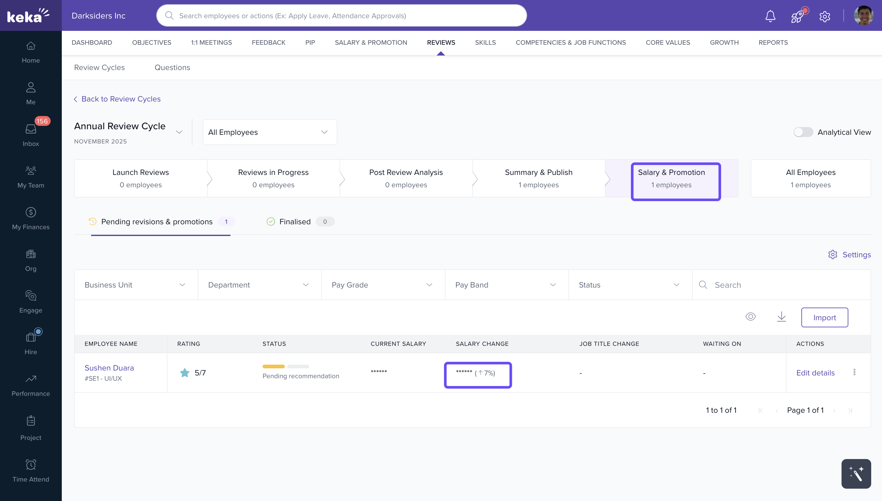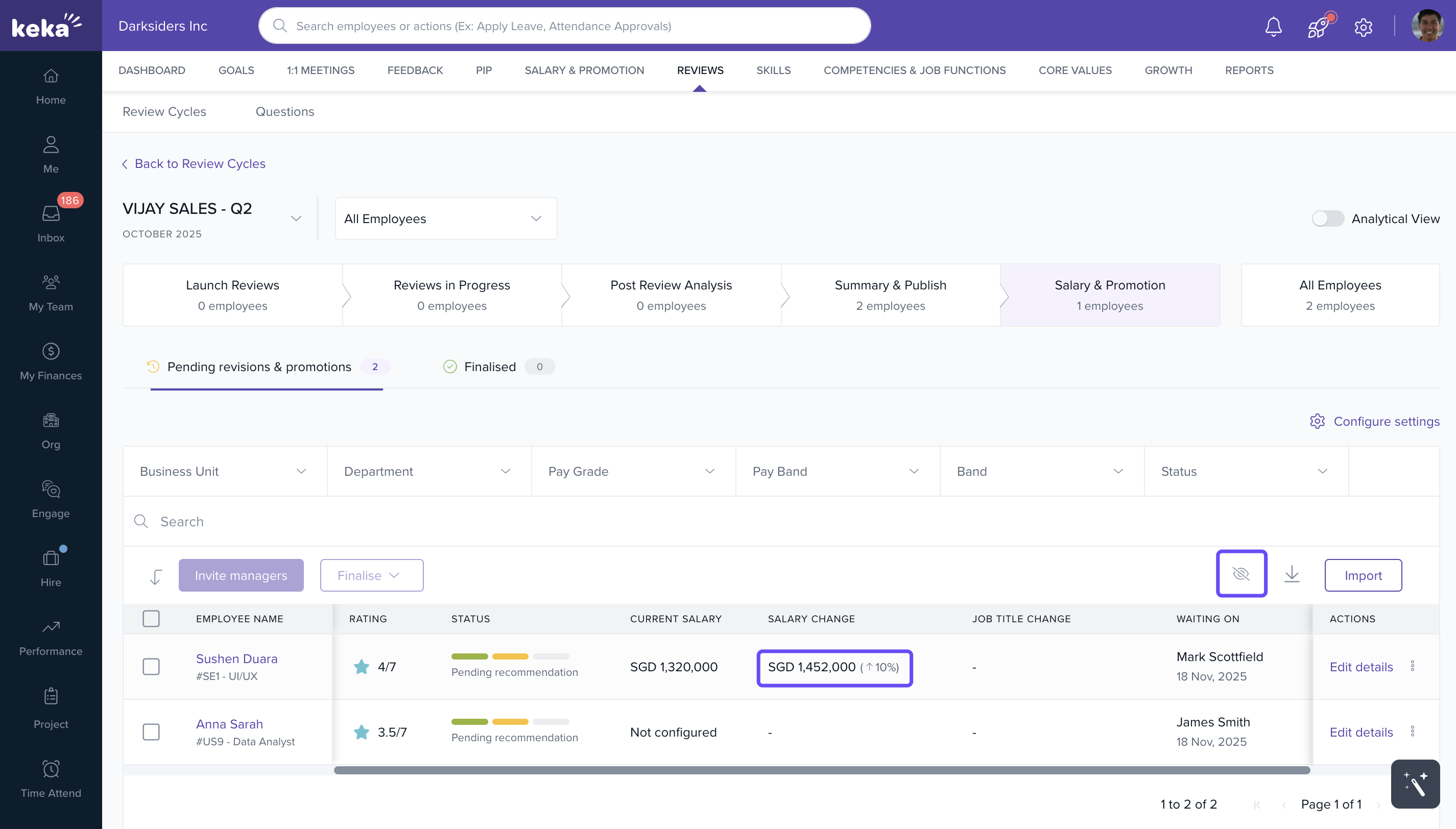 By default, the revised salary will be hidden. When you click the eye icon, the salary revision number will be displayed.