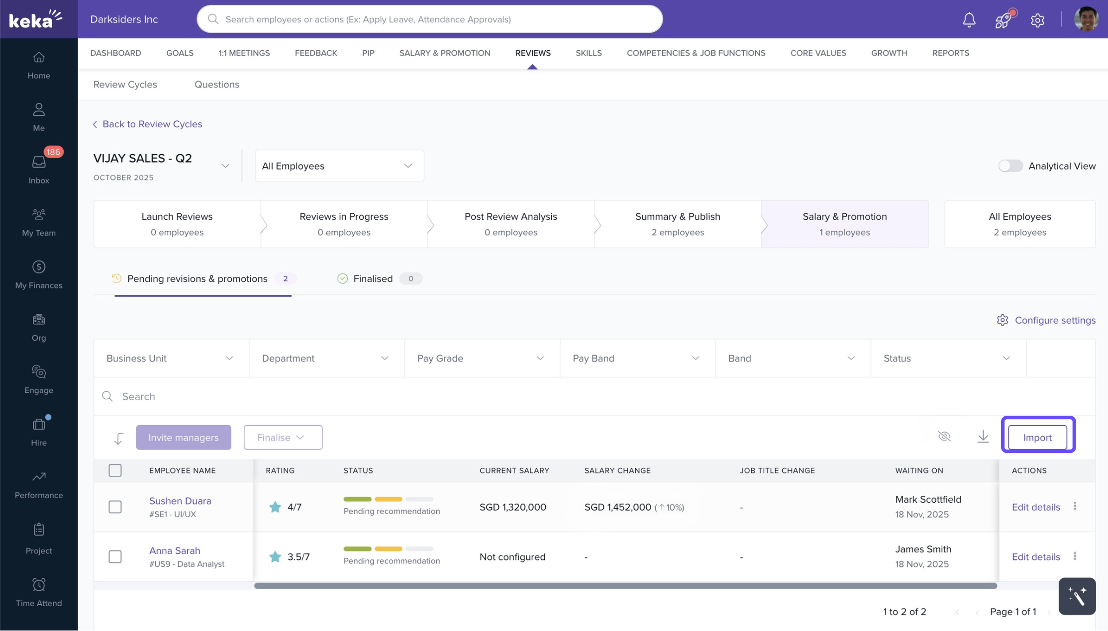 Use the Import option to manually upload salary increment percentages via a file.