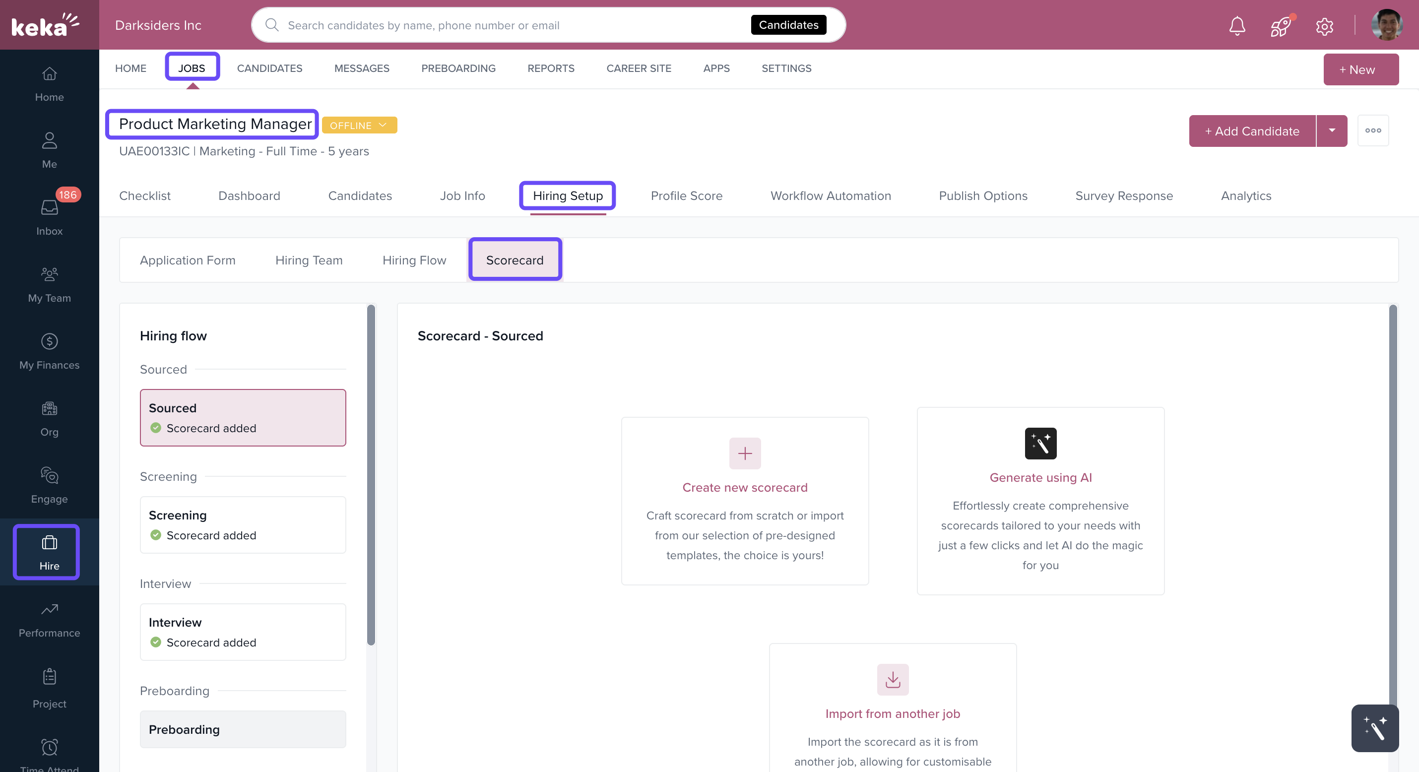 Scorecards in Keka Hire help interviewers evaluate candidates consistently. They outline the key criteria to assess and allow interviewers to rate candidates on each point. This structured feedback helps hiring teams make informed decisions.