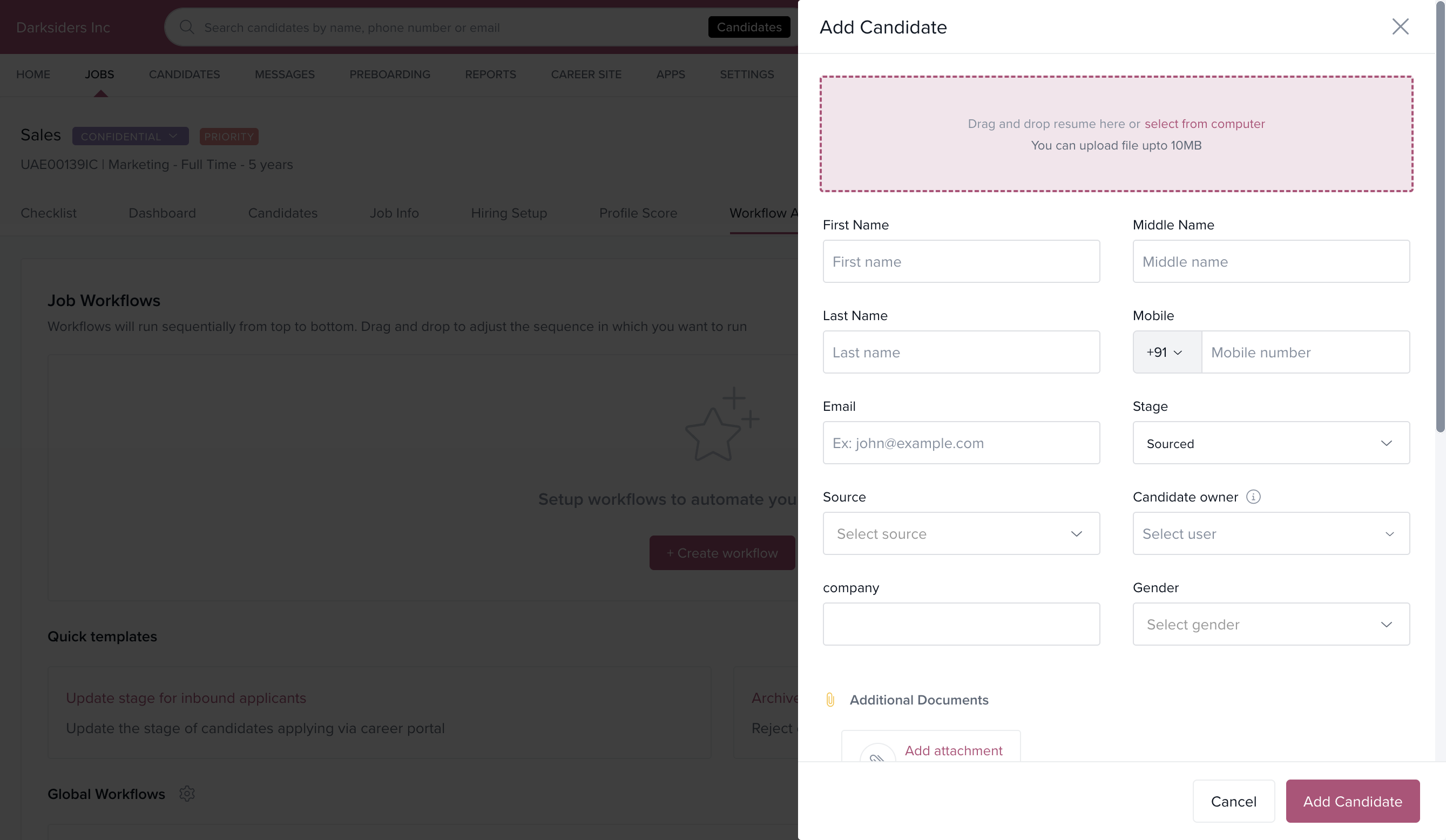Once candidates are added, their profiles will be available under the job’s pipeline for further screening and interviews.