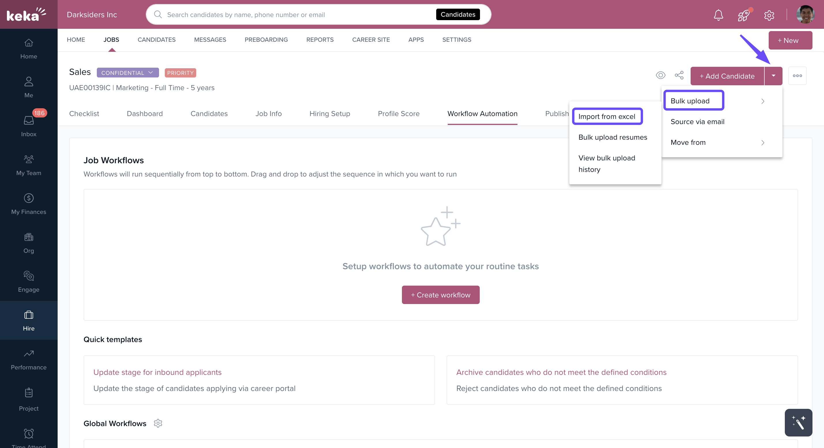 During recruitment, organizations gather resumes from multiple channels to find the right fit for each role. In Keka Hire, you can manually add candidates or import them in bulk to streamline your hiring process. Here's how to get started.