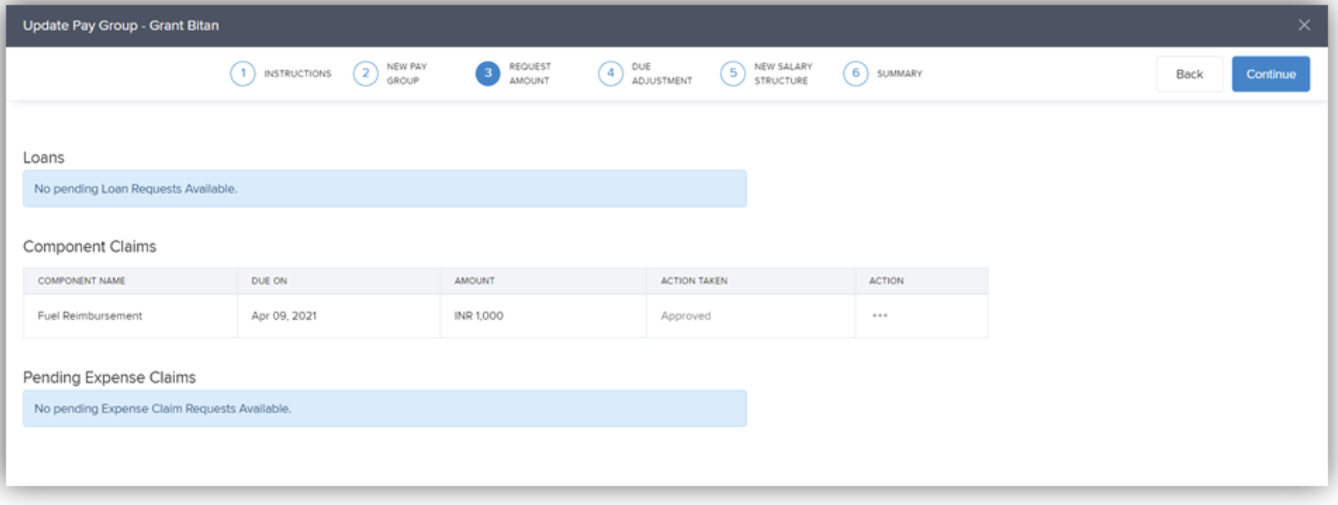 In the Request Amount tab, approve or reject any outstanding claims/loan requests. Click Continue.