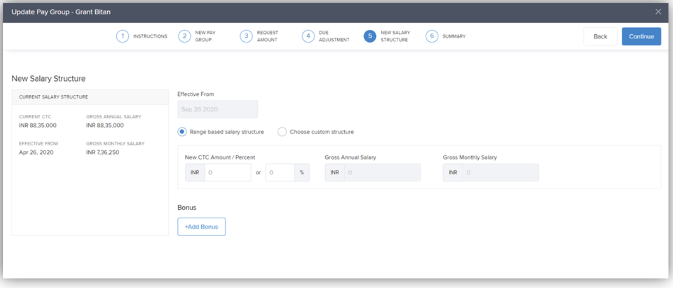 In the New Salary Structure tab, assign the new salary structure. You can: