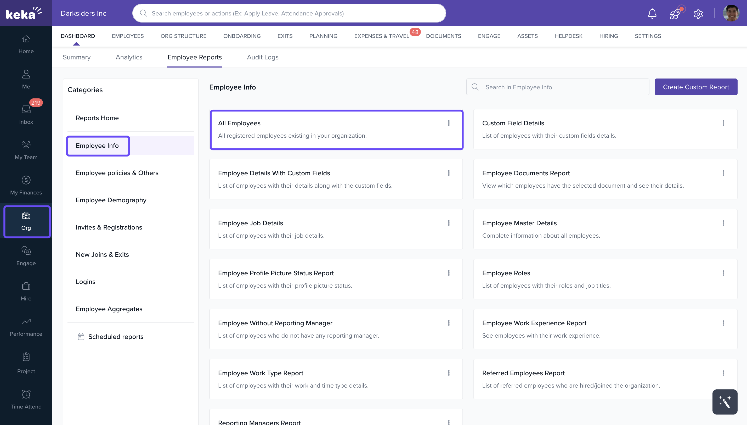 - Go to Org > Dashboard on the Keka portal.