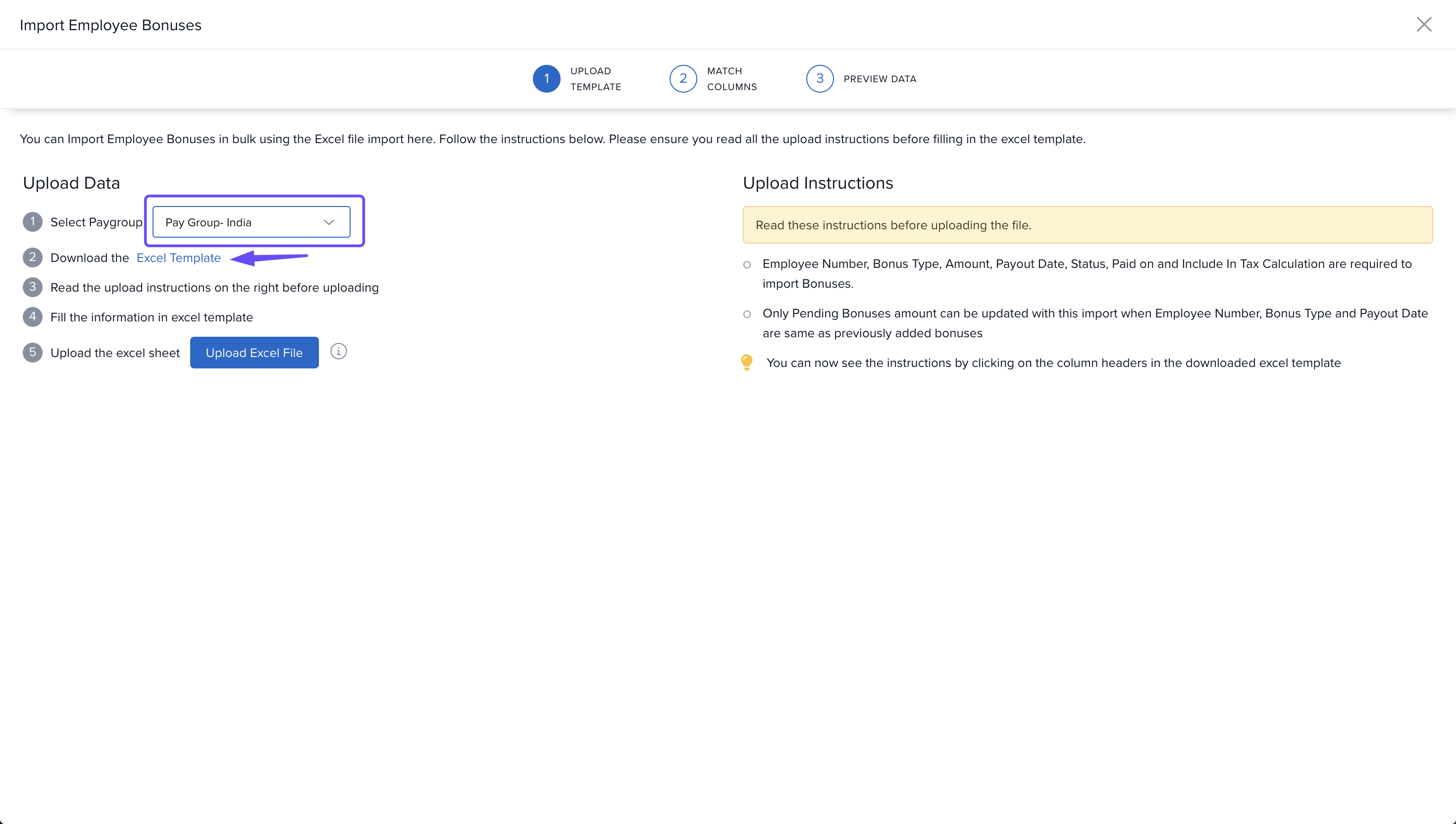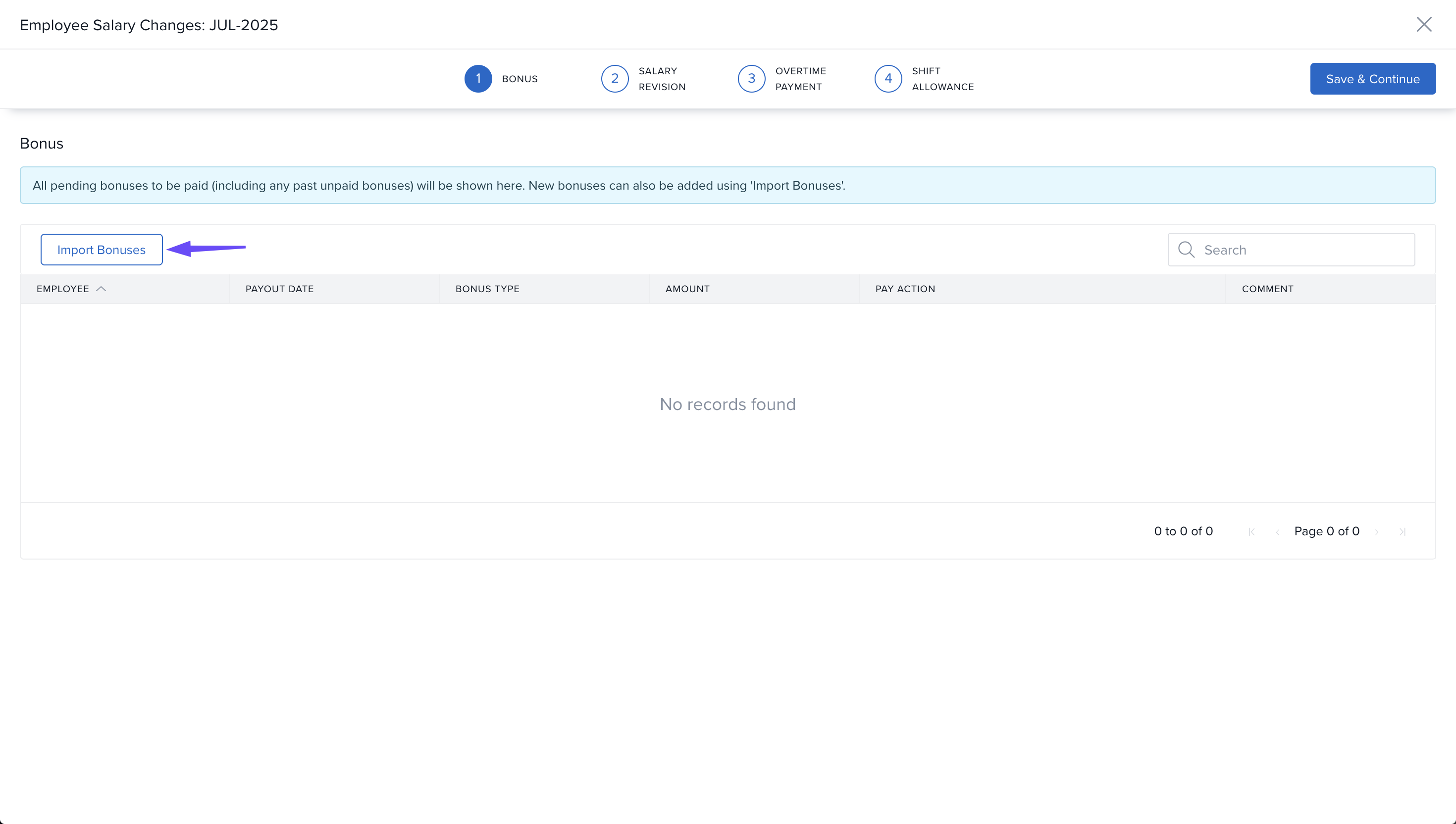 Scroll to Payroll Imports and click Import Bonuses with Payout Date.