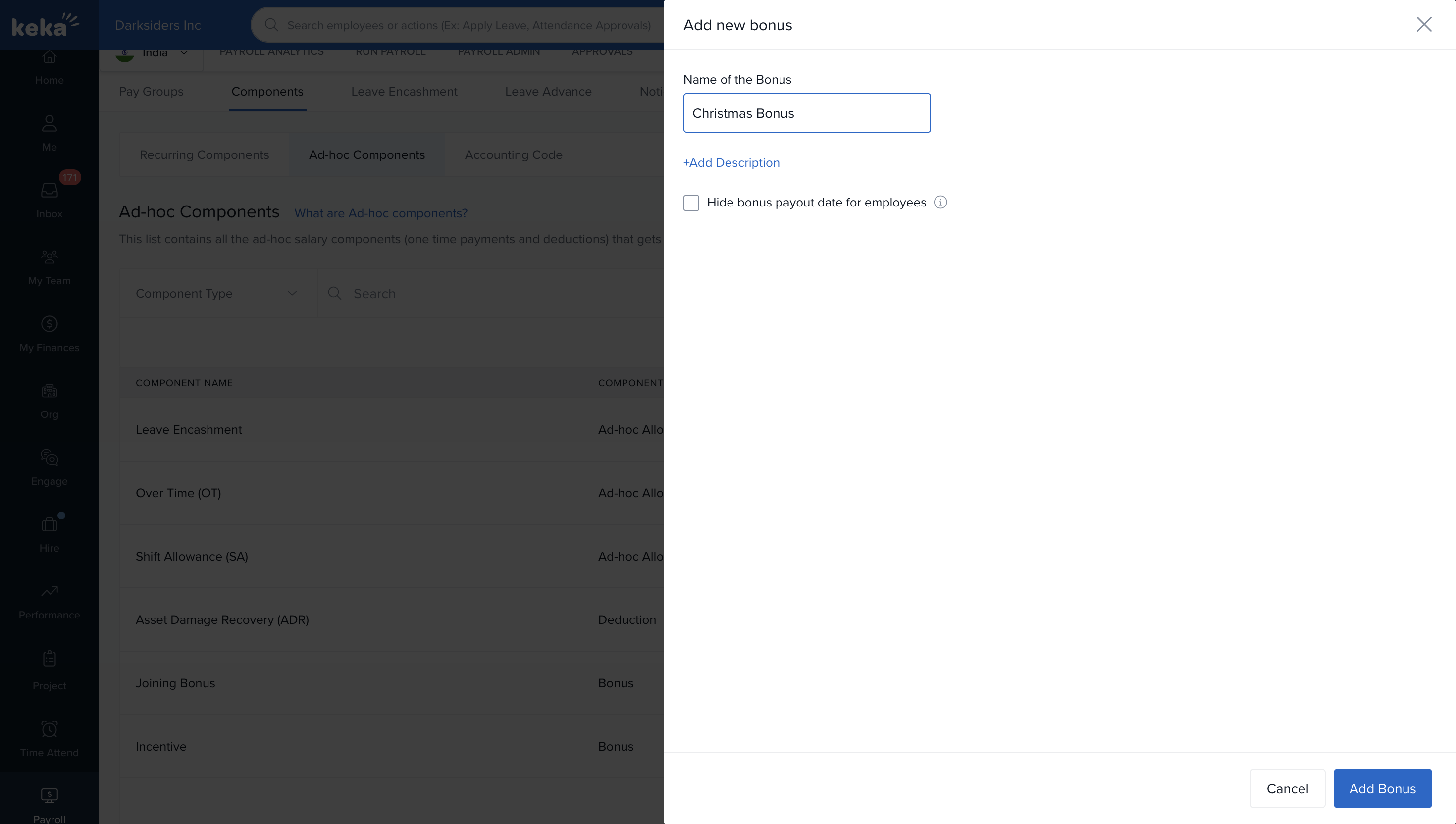 Note: Adding a bonus will increase the employee’s annual CTC.