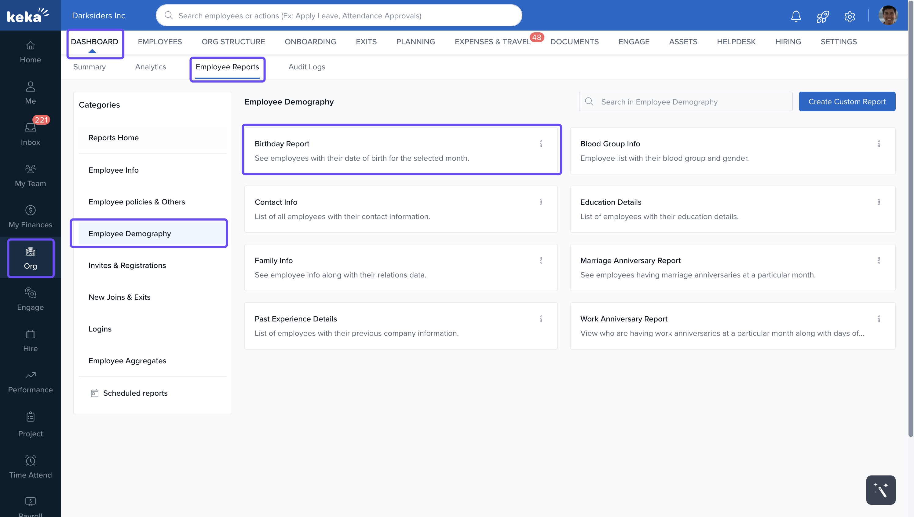 Employee birthdays play a crucial role in enhancing employee engagement and making them feel valued. Here's how you can generate the Birthday Report in Keka: