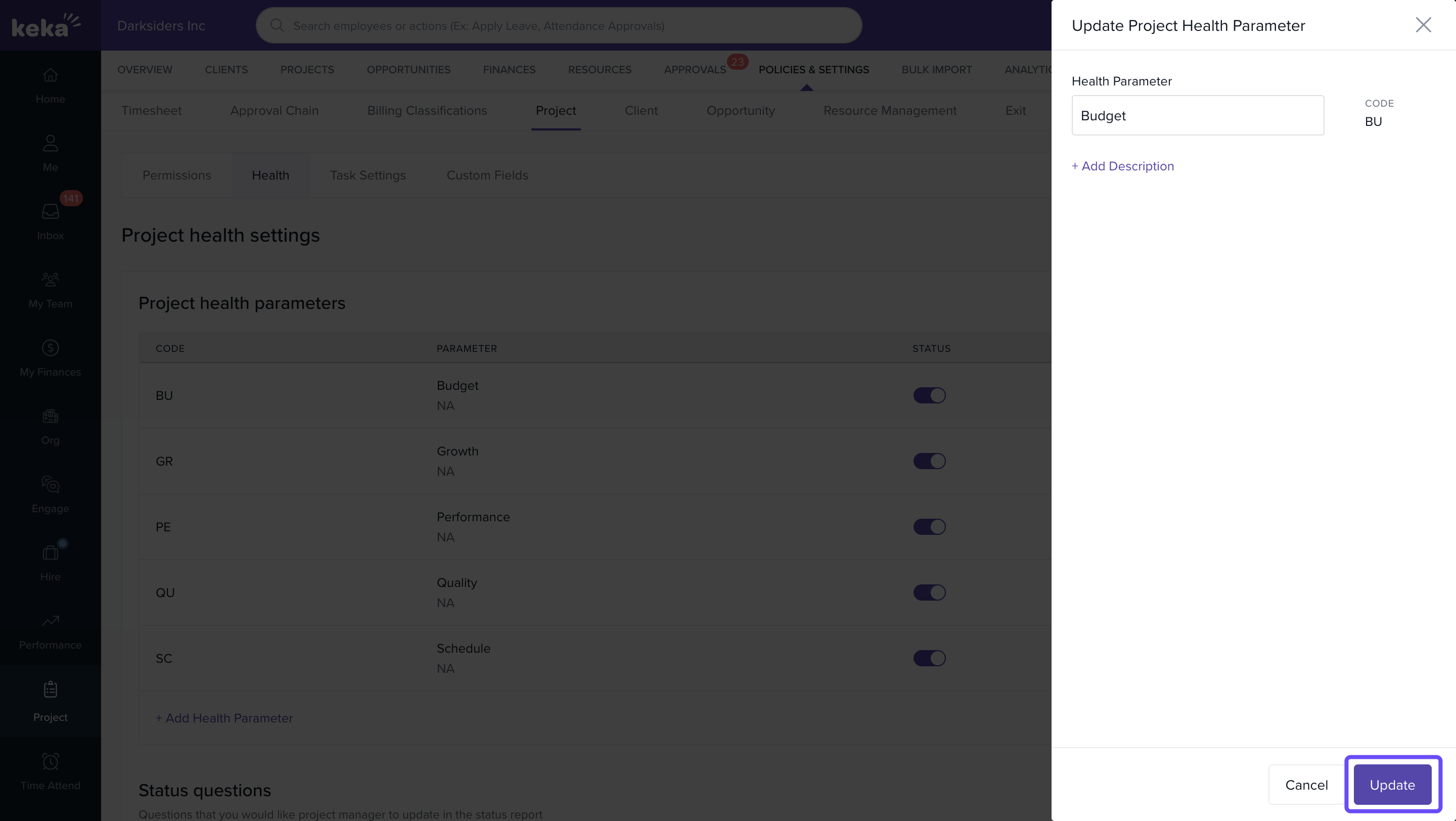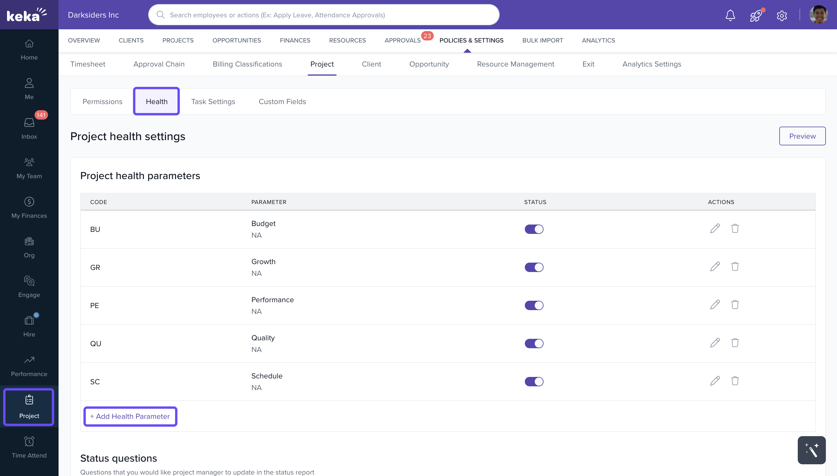 For more details on managing and monitoring project health, visit: Managing Project Health Parameters and Tracking.