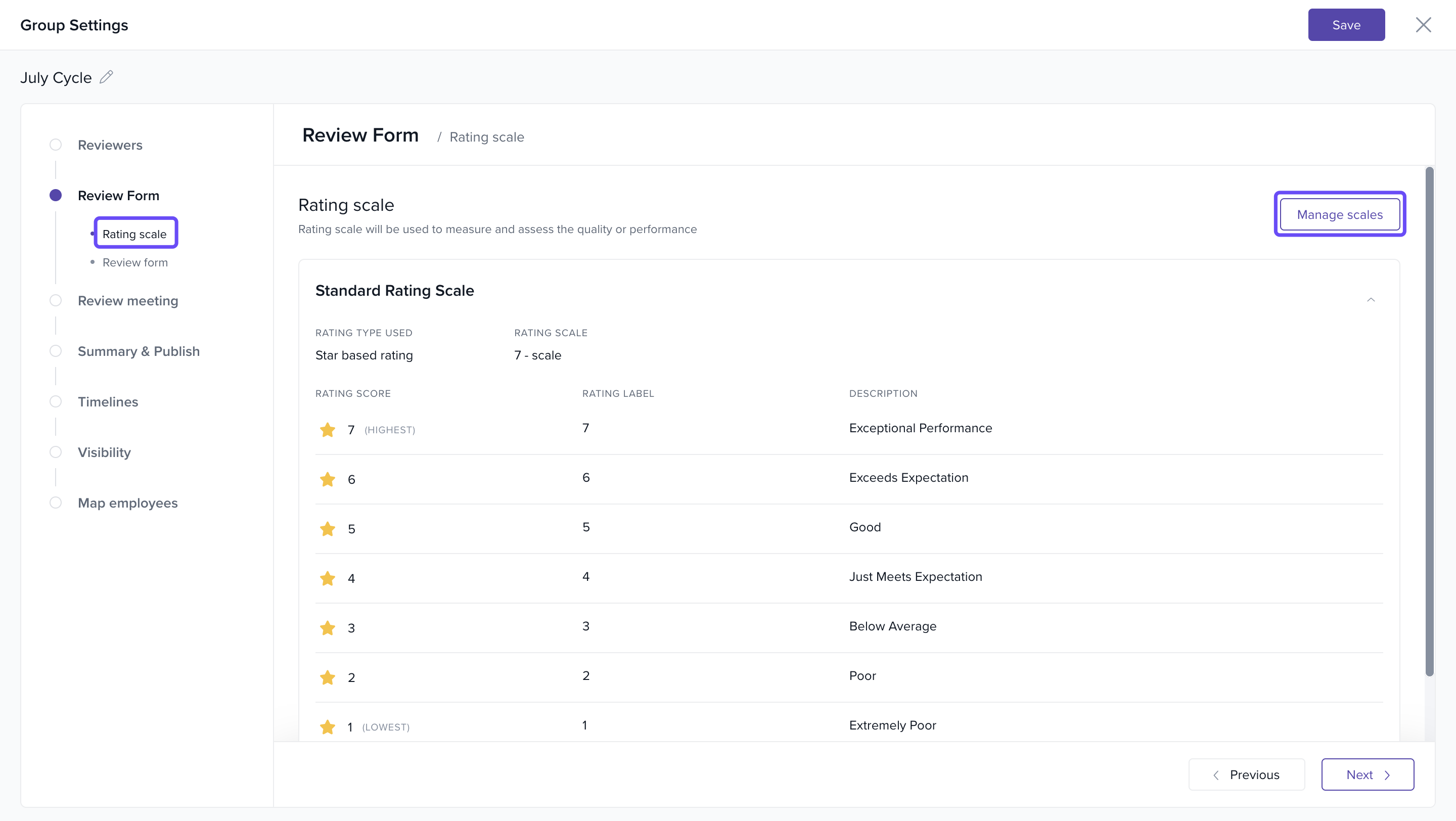 Tip: Customising rating labels can make your scale more relevant to your organisation’s performance evaluation criteria.