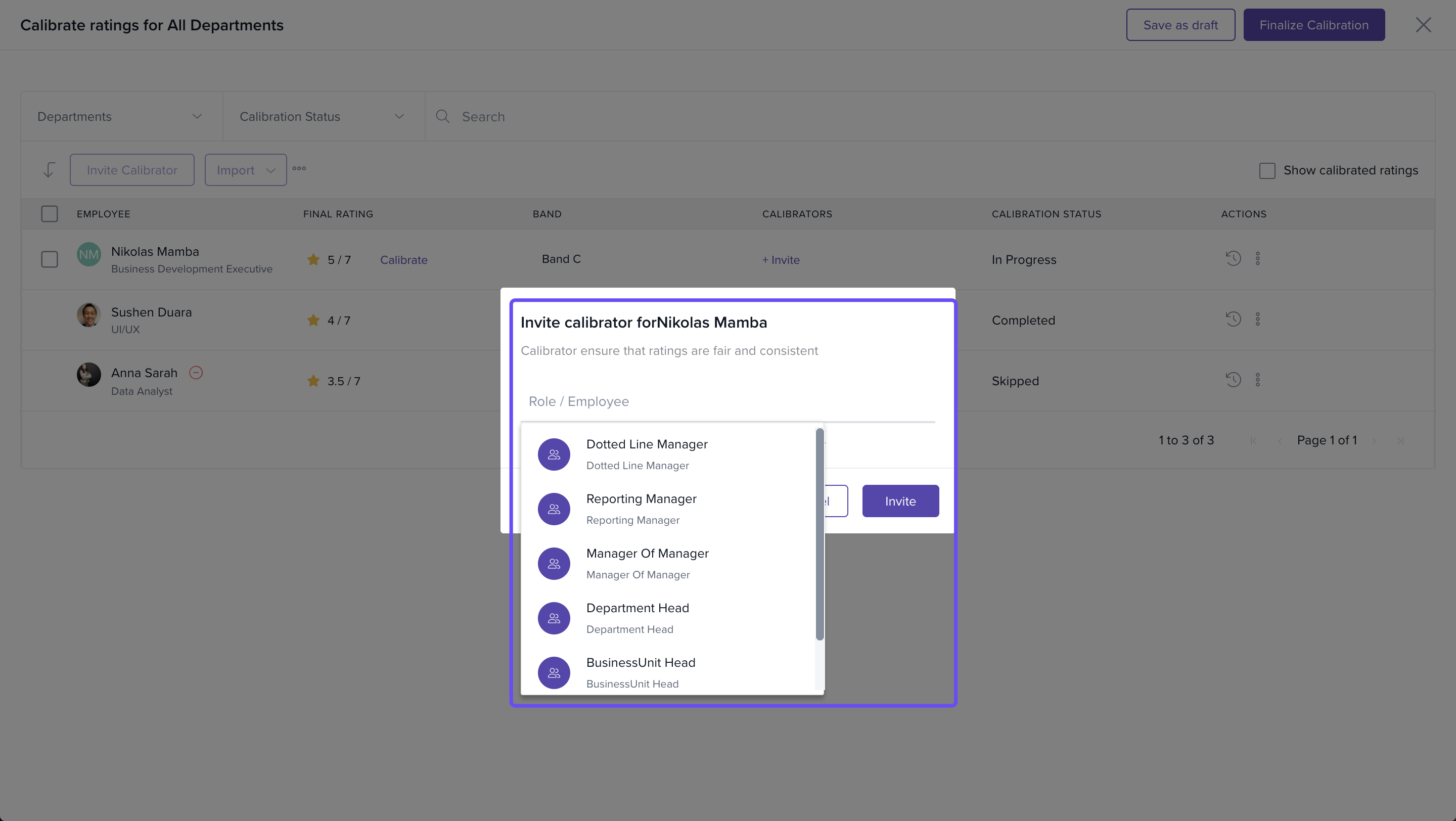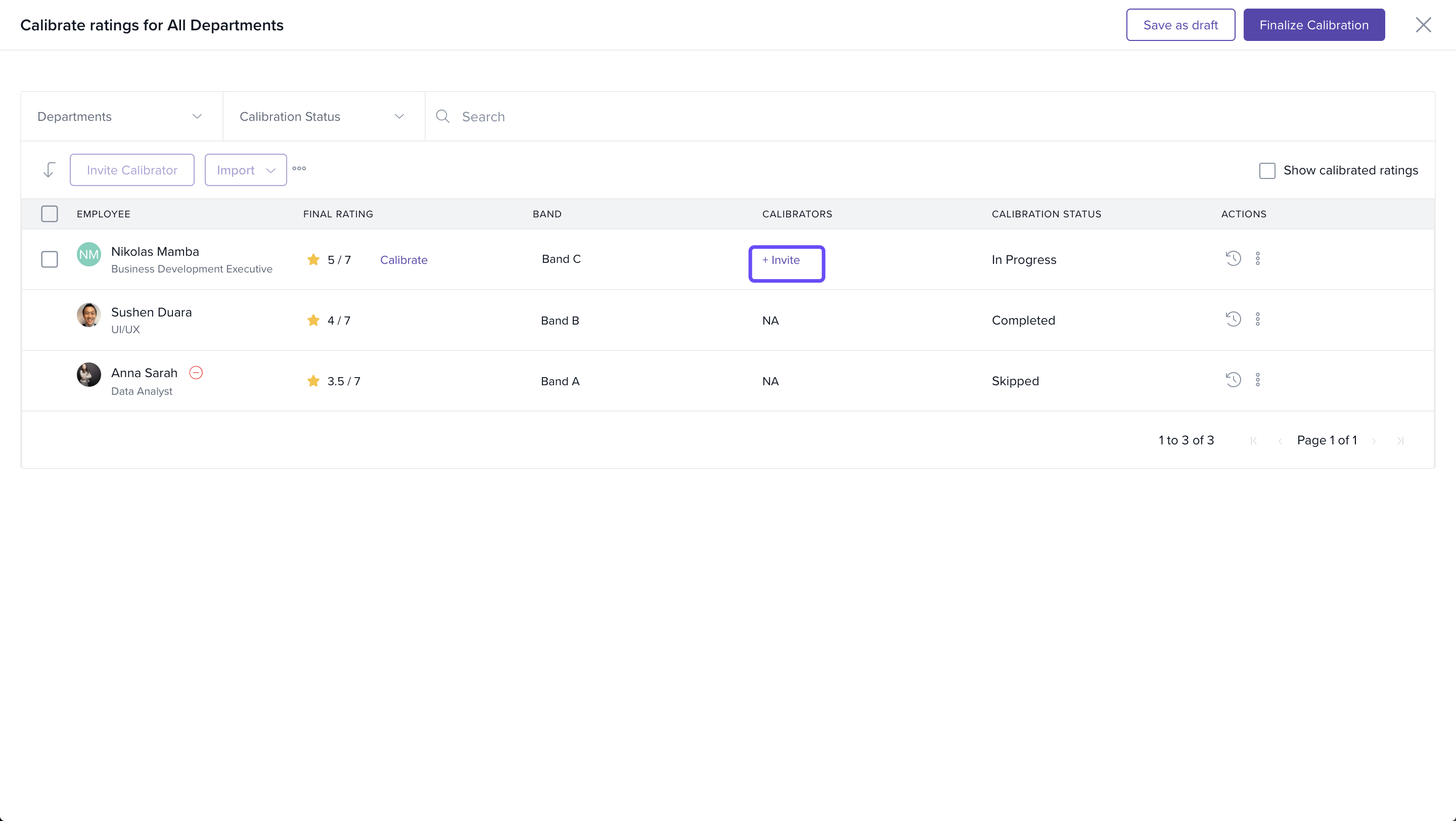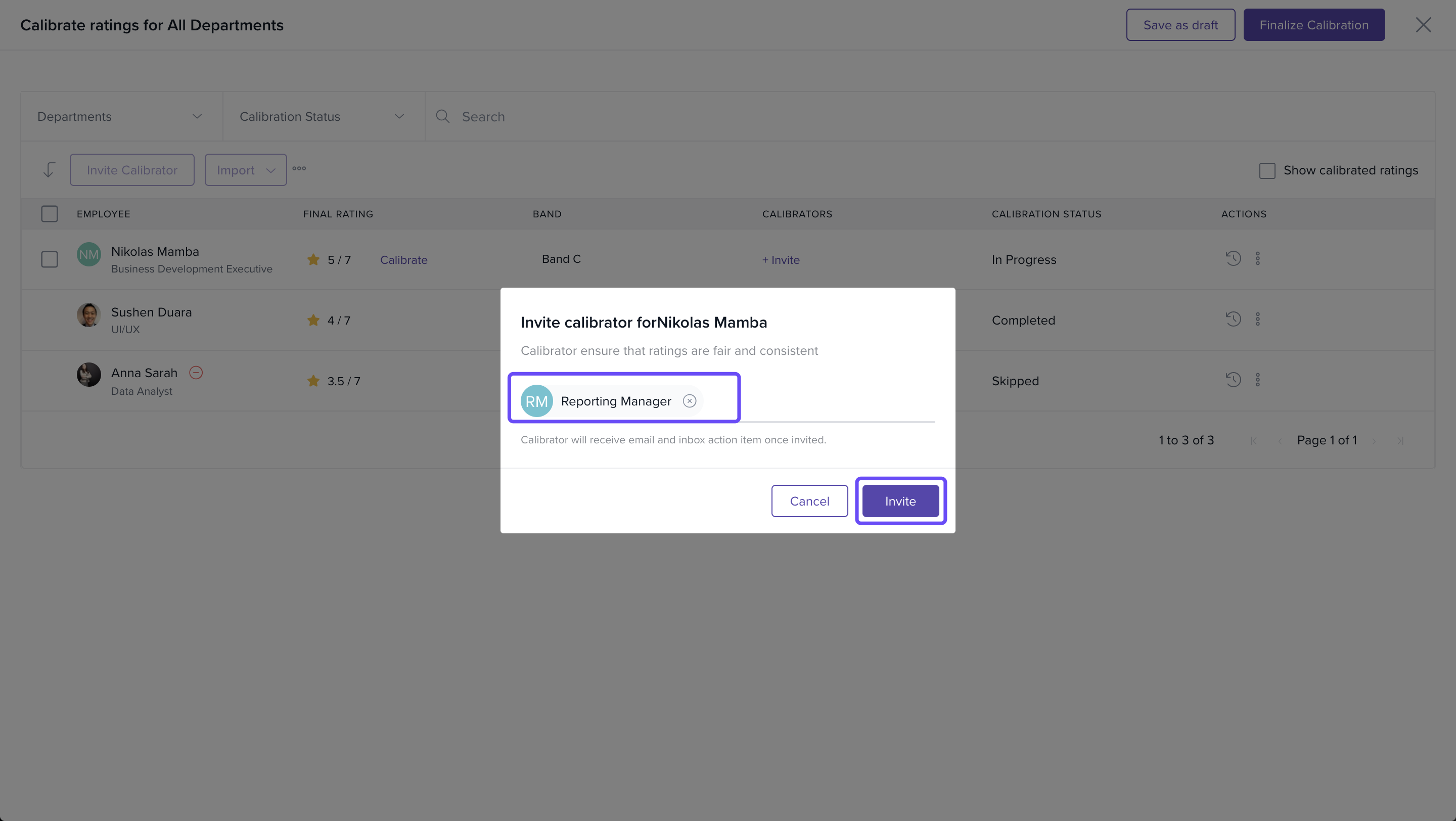 By following these steps, you can easily invite a calibrator and initiate the calibration process for the employee reviews. This ensures that final ratings are fair and consistent across all reviewers.