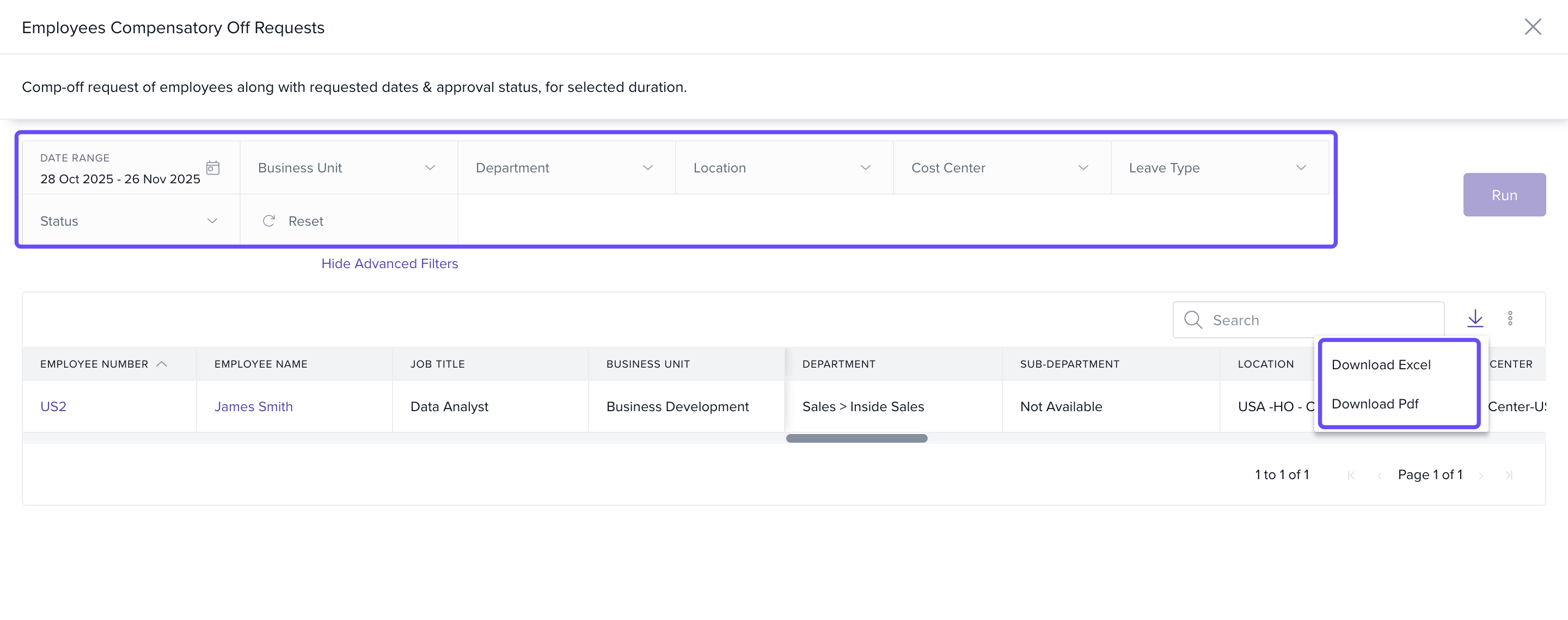 - Under the Leave Reports card, click on Employee Compensatory Off Requests.