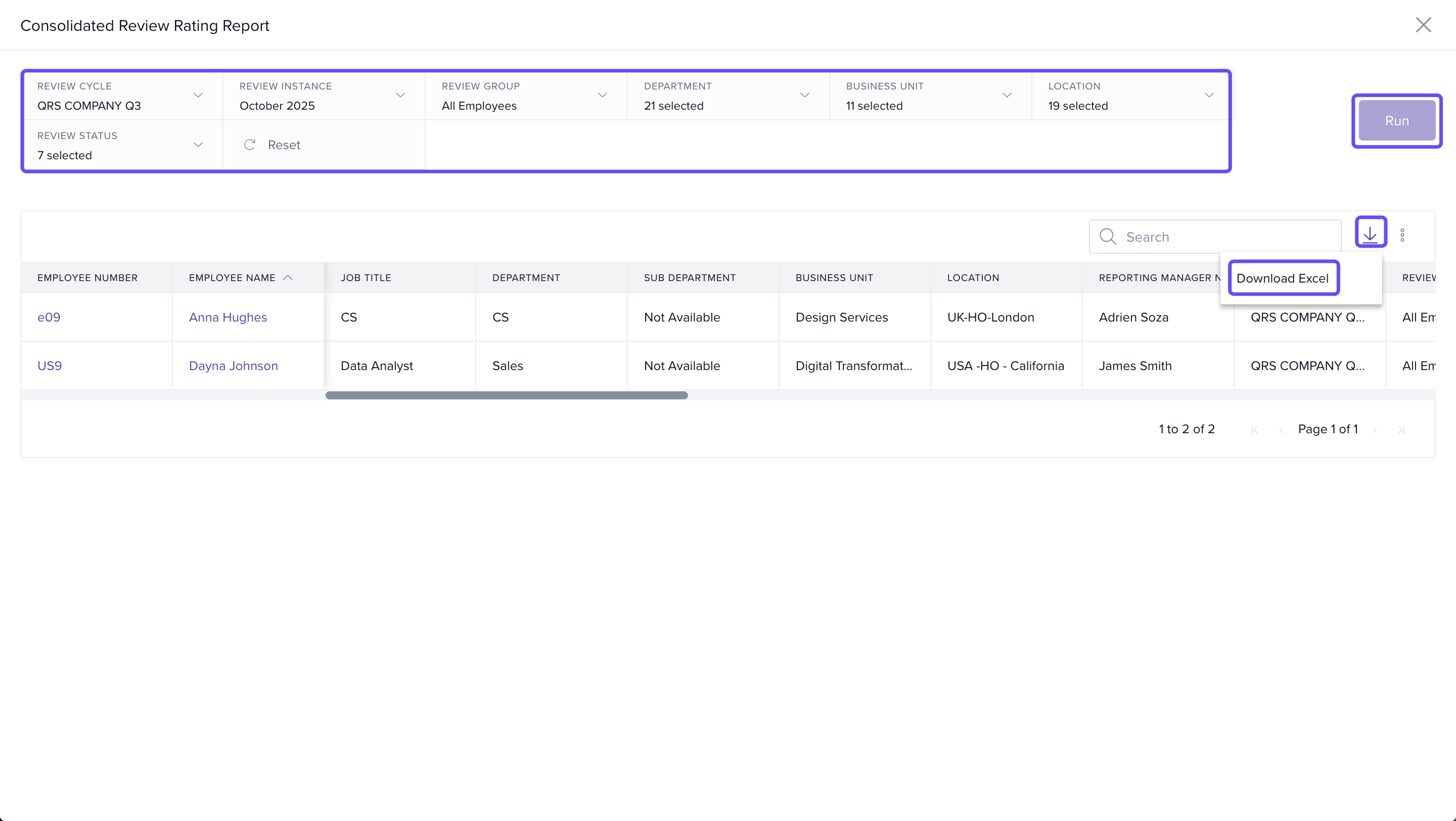 You’ll receive a full report showing employee ratings and review progress across the selected review cycle—ideal for audits, insights, or end-of-cycle reviews.