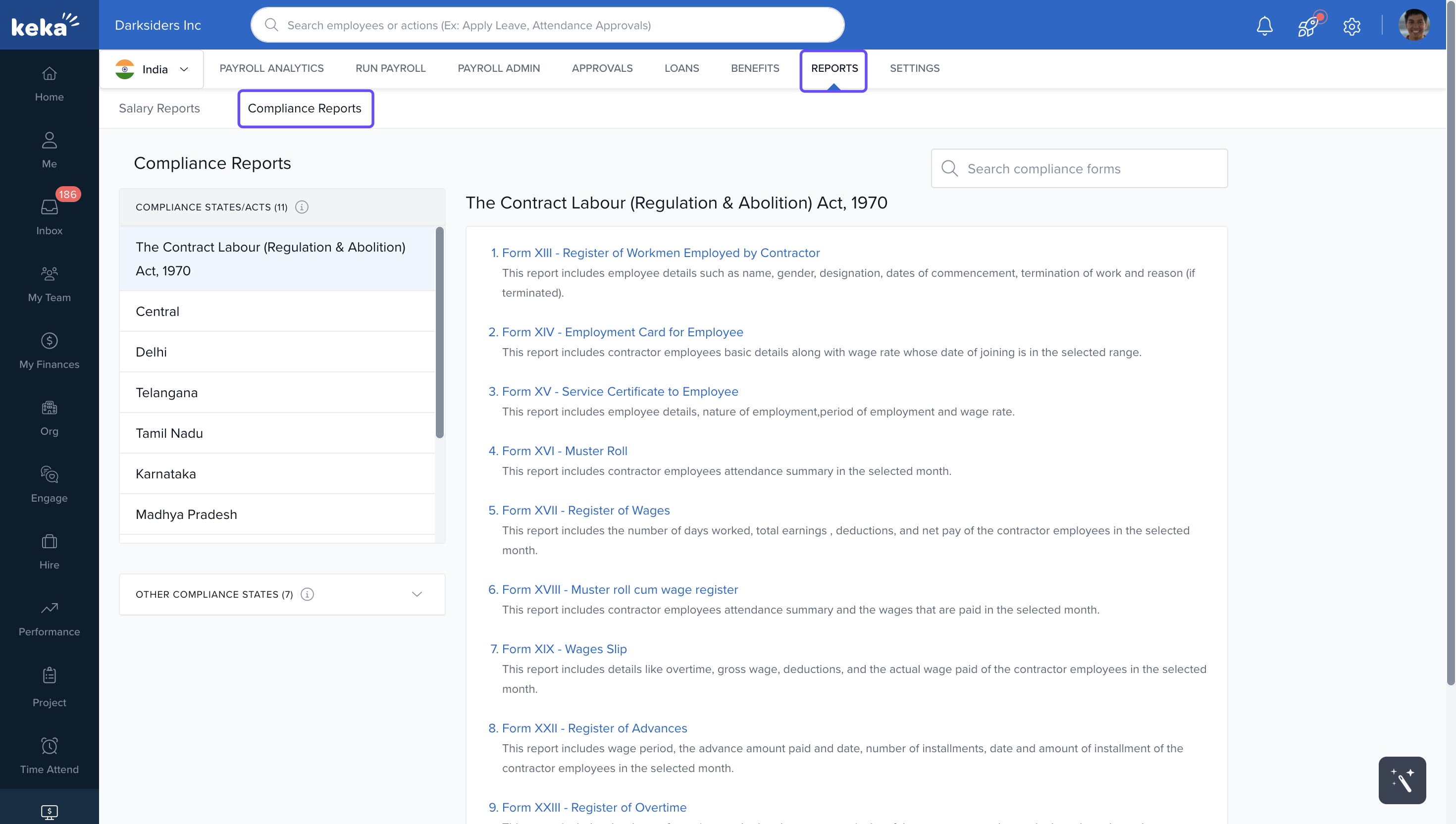 From here, you can view or download state-wise and act-wise compliance reports. You can also explore other compliance categories as needed.