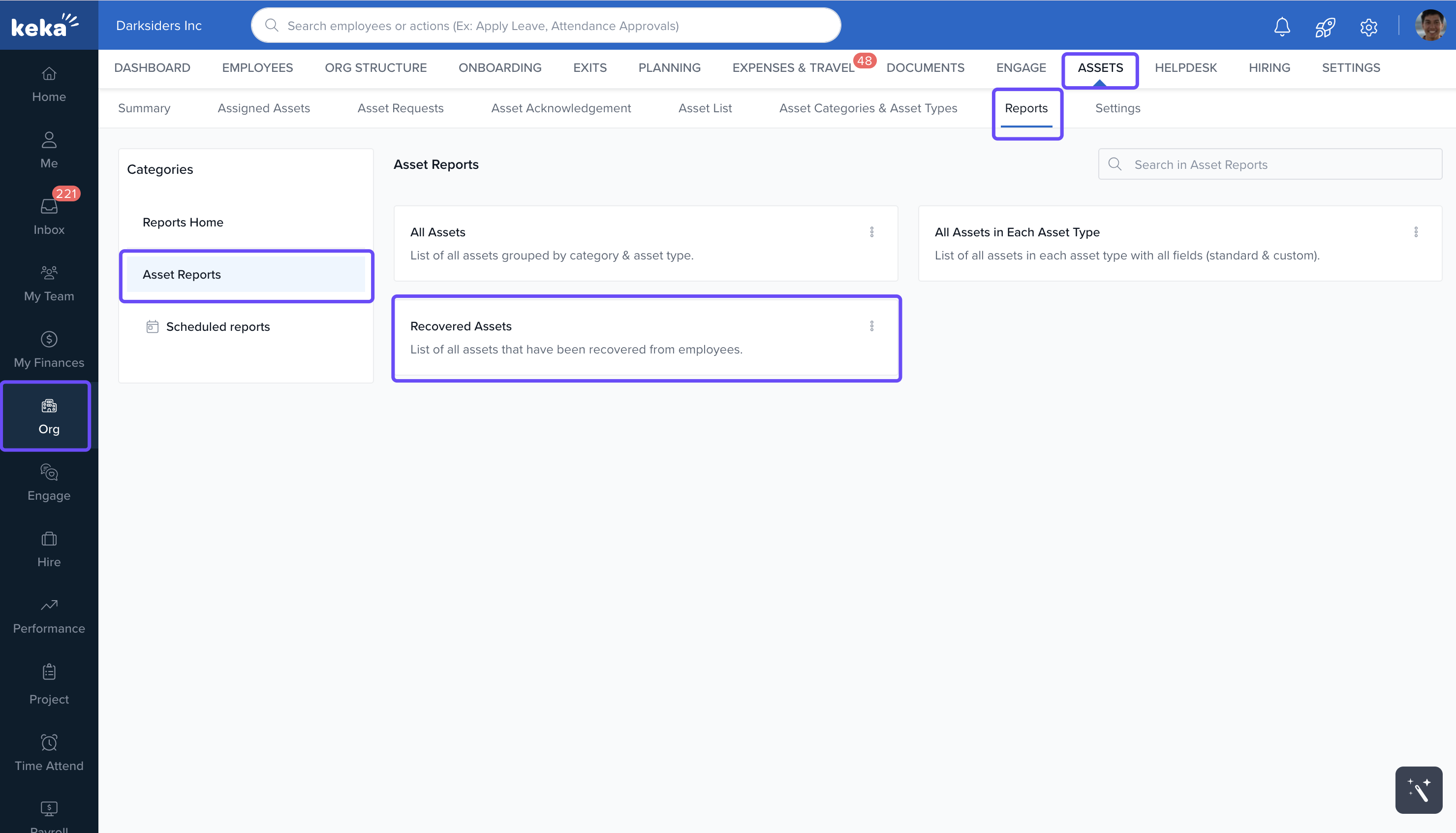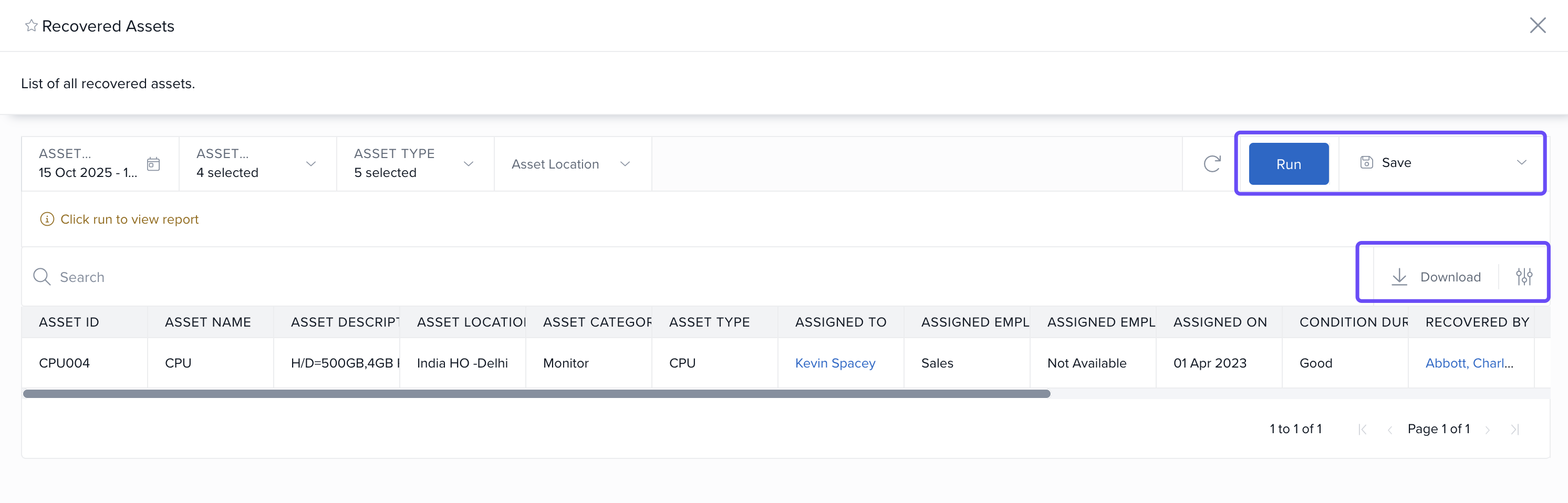 This will give you an overview of all the recovered assets across your organization, including their condition and recovery date.