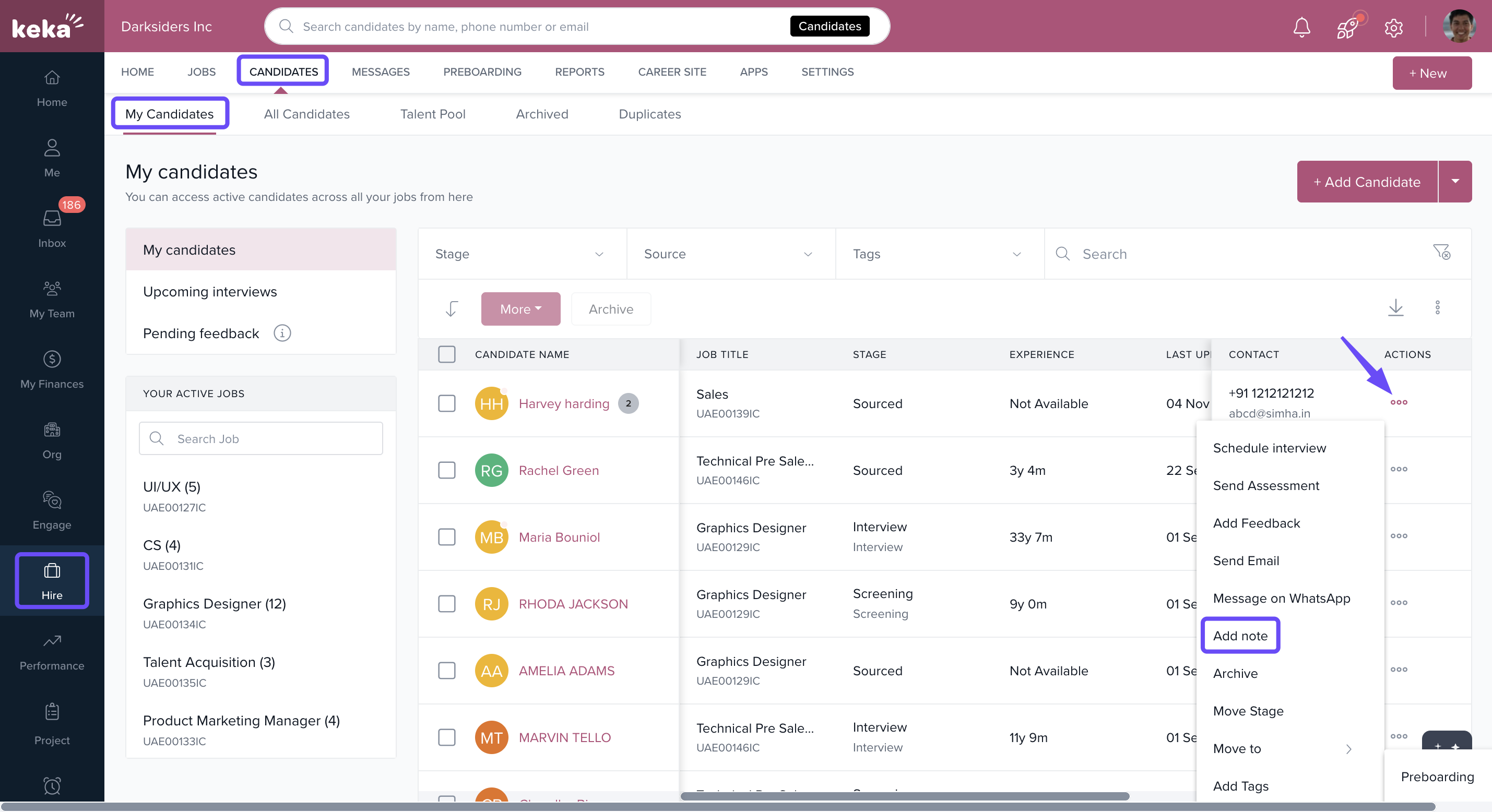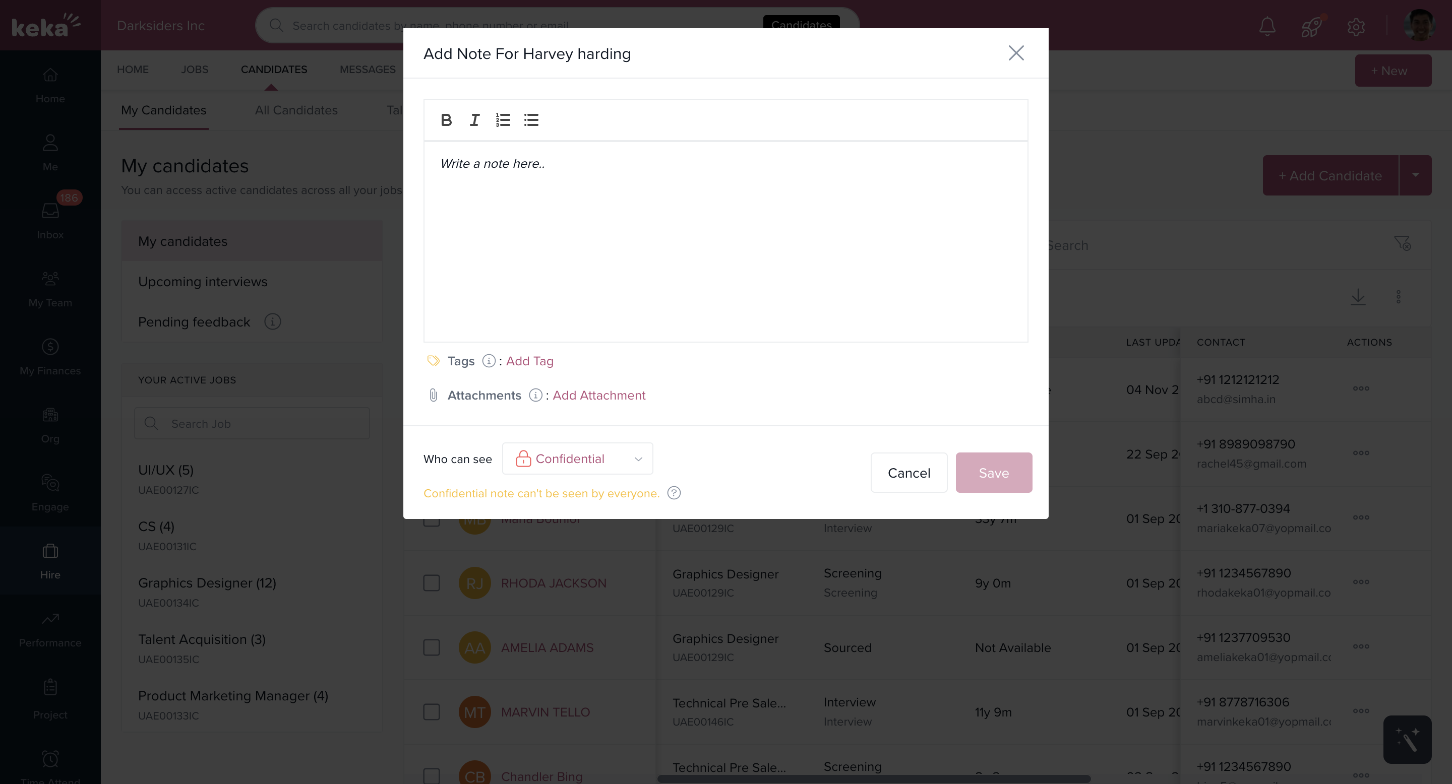 It can be hard to remember every detail about a candidate or how they performed at each interview stage. That’s why Keka Hire allows you to add notes to candidate profiles—helping you capture key information, observations, and updates throughout the hiring process.