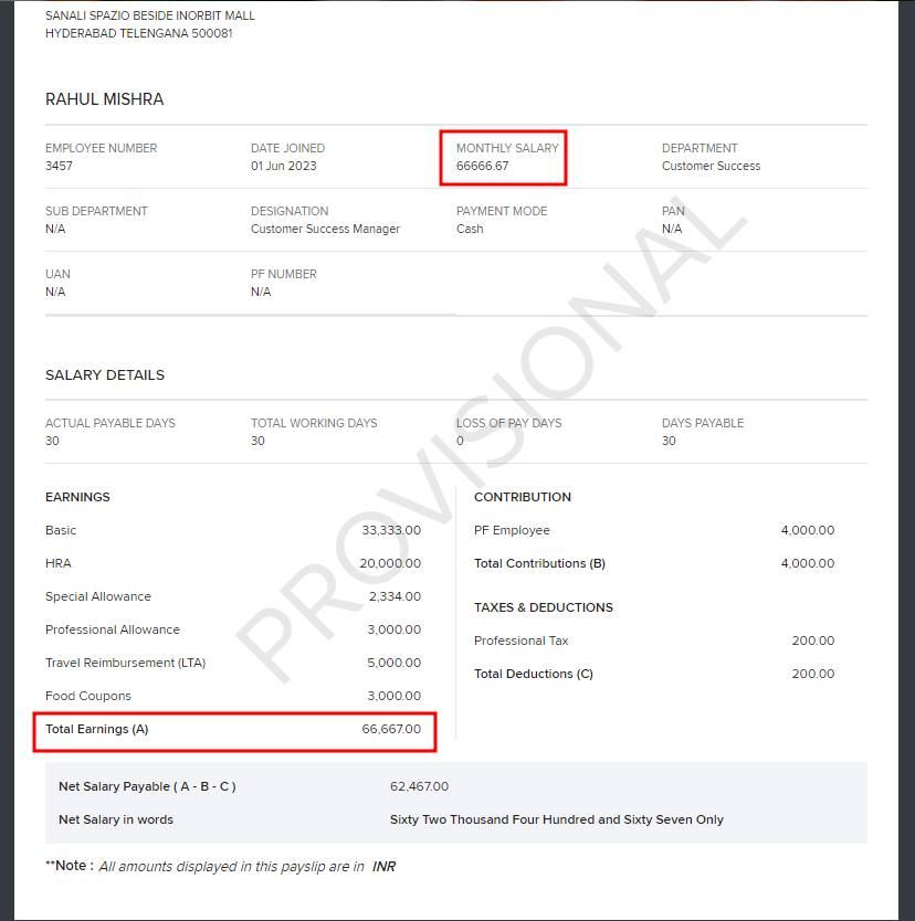 In terms of maintaining accuracy and consistency, the monthly salary within the salary breakup on the pay timeline and payslip won't undergo rounding. Rounding here could potentially cause disparities where the total monthly salary might exceed the promised CTC due to cumulative rounding effects. Therefore, the displayed monthly salary consistently remains as CTC/12, upholding precise correspondence with the promised values.