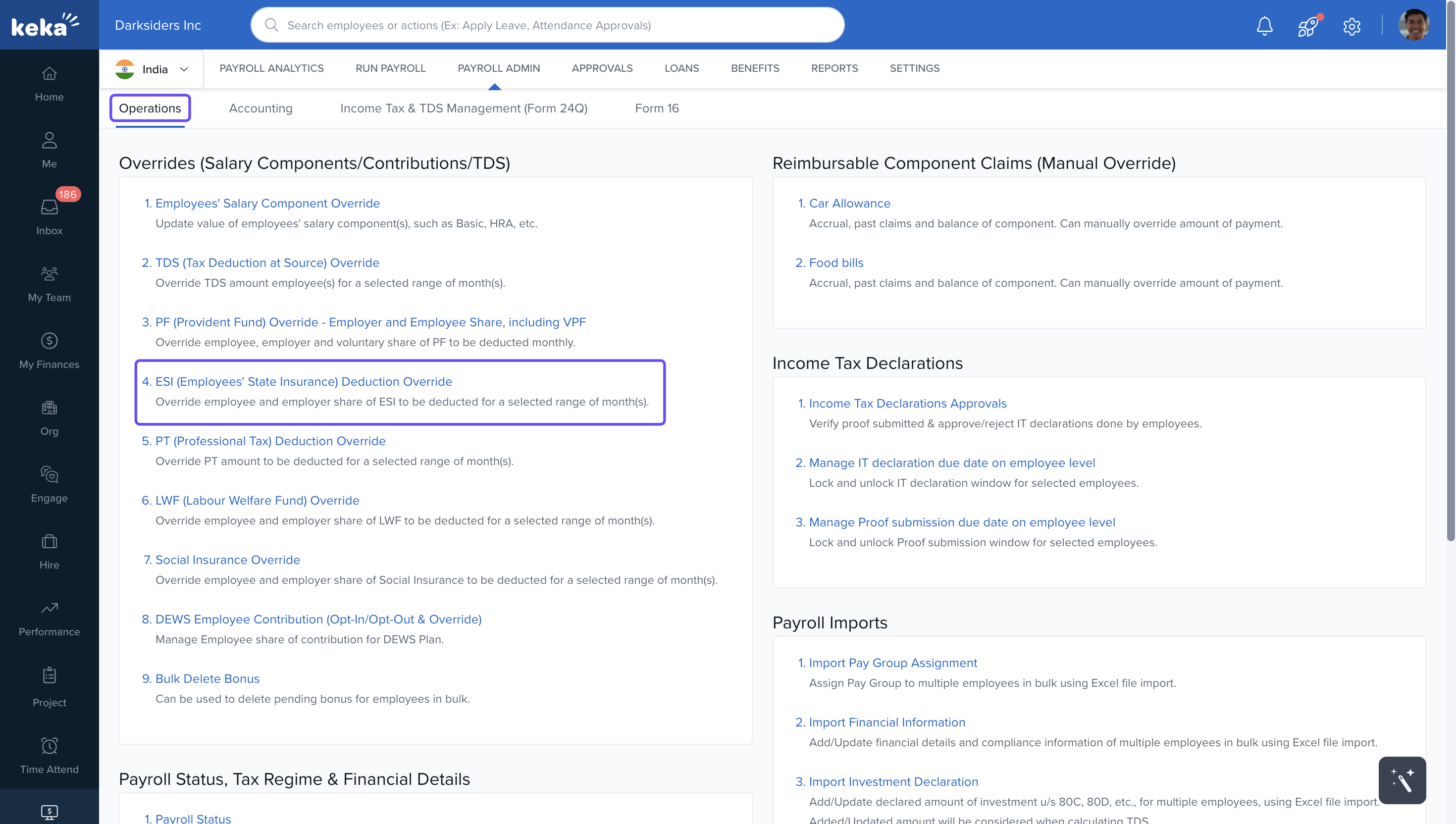 This document demonstrates how you can override the ESI contribution of a single employee or that of a group of employees in bulk on the Keka portal.
