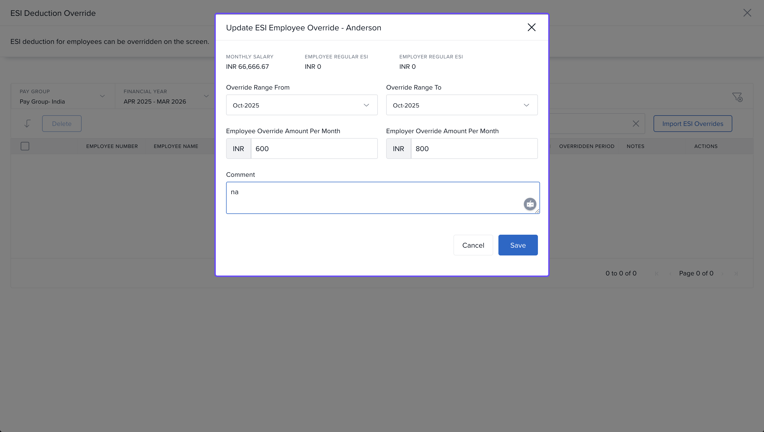 Under Overrides (Salary Components/Contributions/TDS), click on ESI (Employees' State Insurance) Deduction Override.